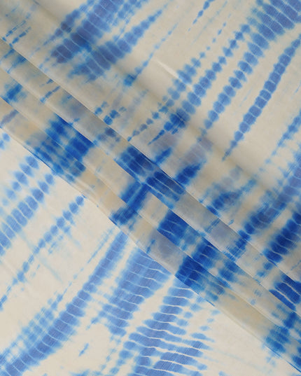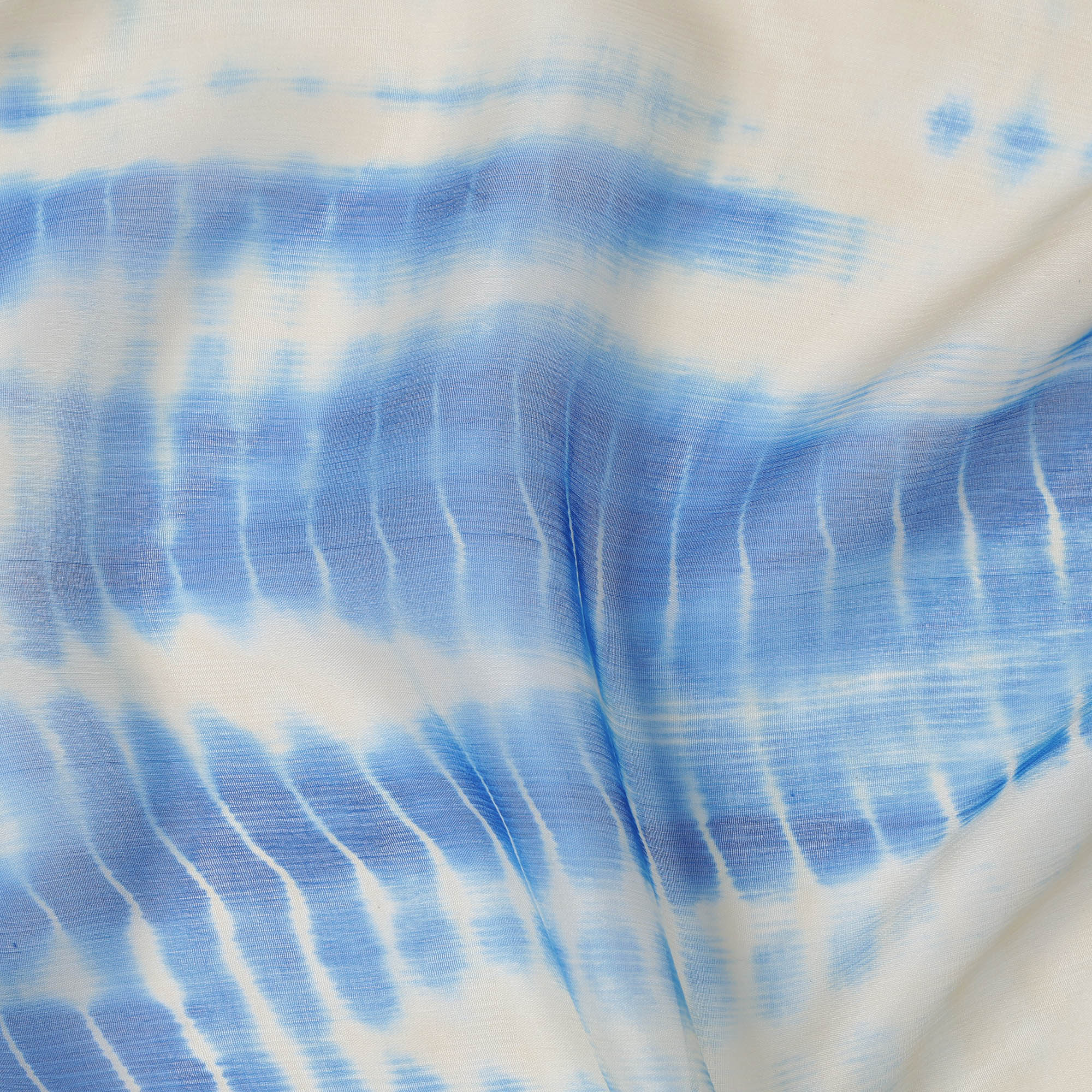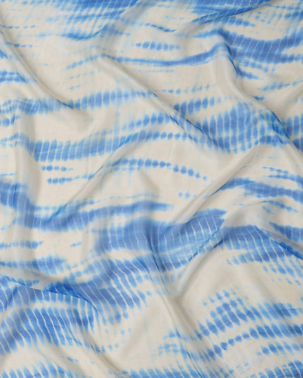 Ivory and Sky Blue Shibori Stripe Pure Silk Chiffon Fabric with Satin Finish, 110 cm Width, Made in India-D23036