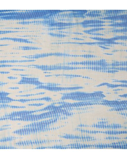 Ethereal and breezy, this Ivory and Sky Blue Pure Silk Chiffon fabric with a satin finish features traditional Shibori stripes that ripple across the surface like waves in a calm sea. The delicate ivory base is elevated by soft sky blue patterns, creating a soothing visual rhythm ideal for elegant sarees, breezy overlays, fusion wear, and scarves. Made in India and measuring 110 cm in width, this premium fabric pairs the airiness of chiffon with the subtle glow of satin, resulting in a luxuriously soft drape and radiant texture. Lightweight yet impactful, it’s a timeless pick for those who appreciate the harmony of traditional craftsmanship and modern finesse. Shop online to elevate your wardrobe with this handcrafted silk masterpiece.