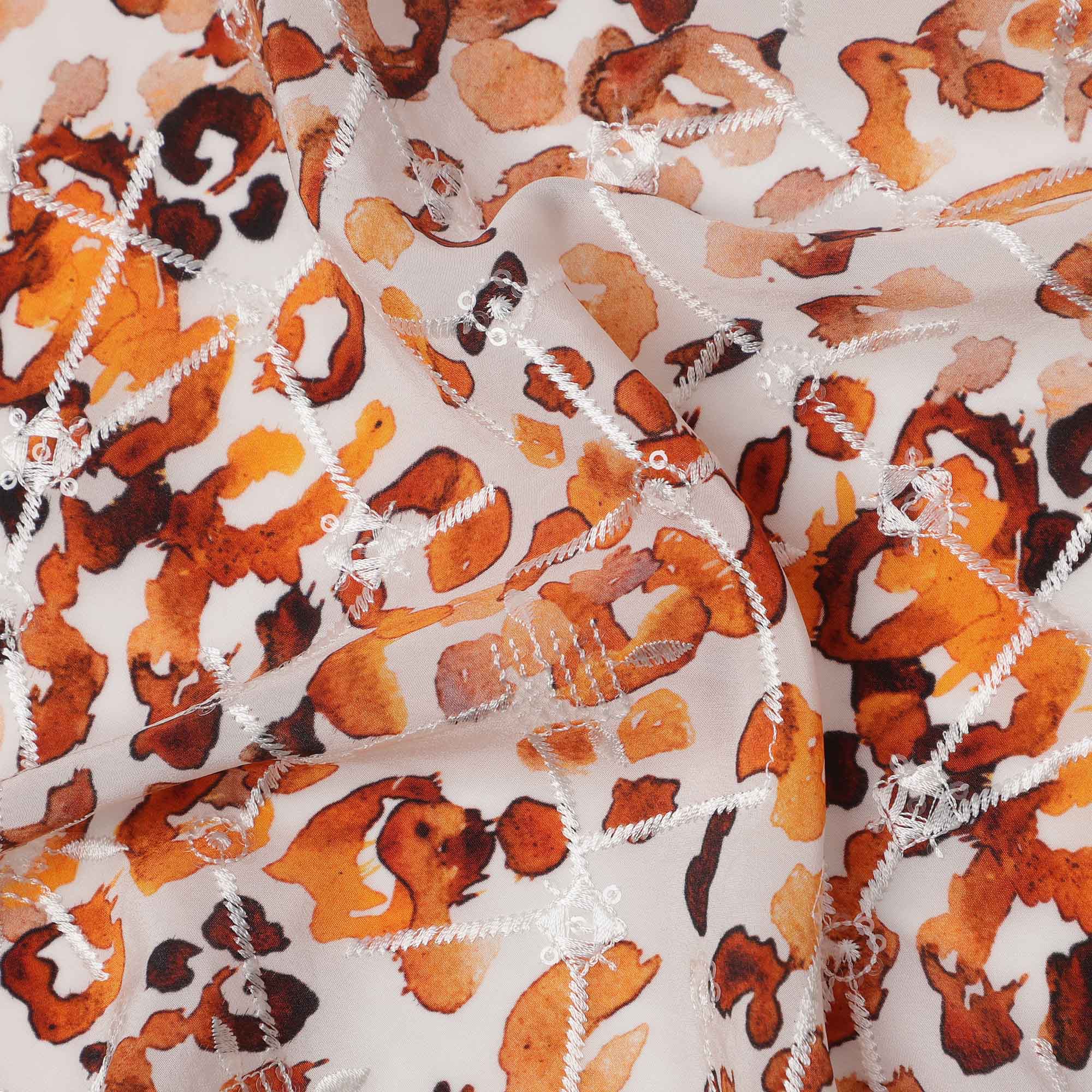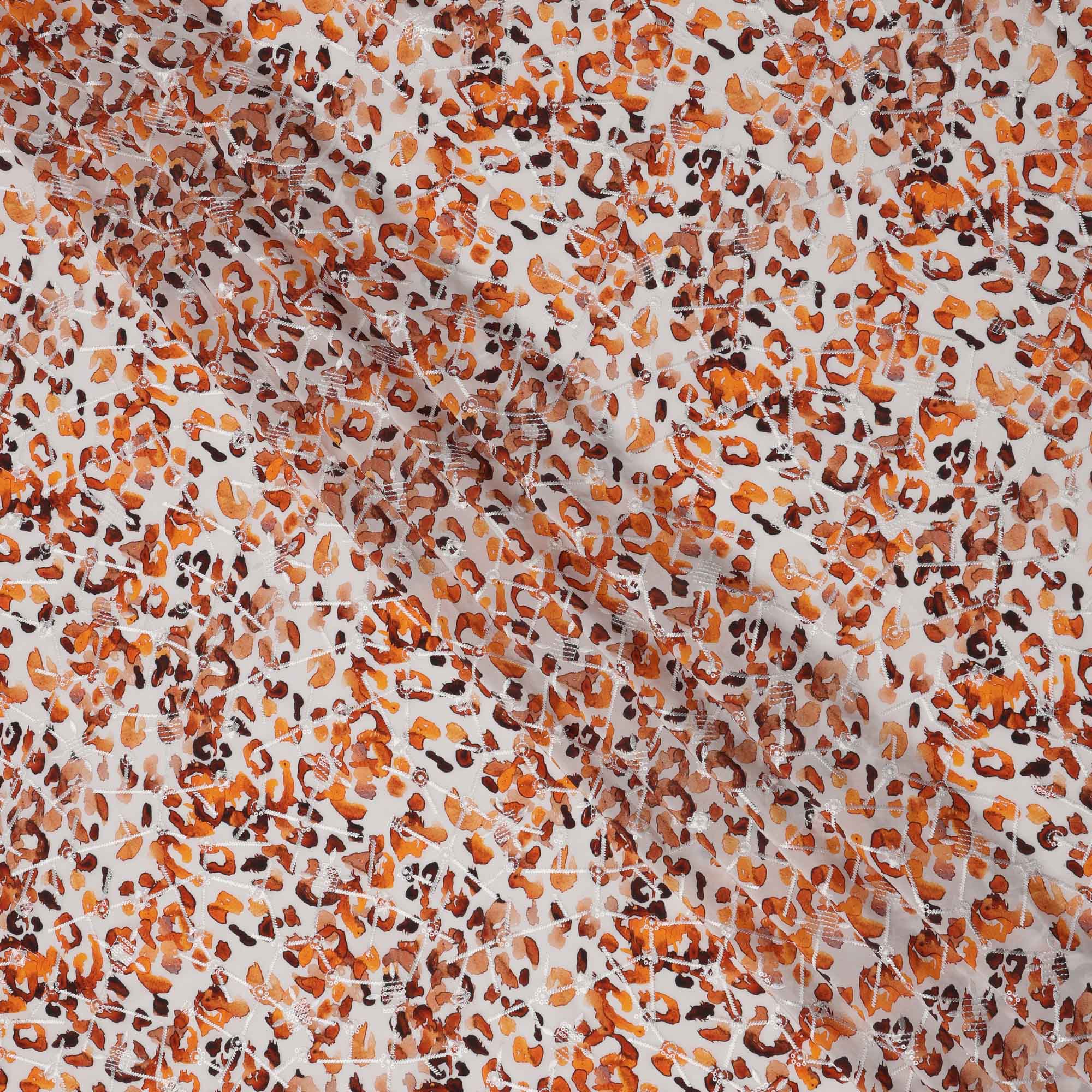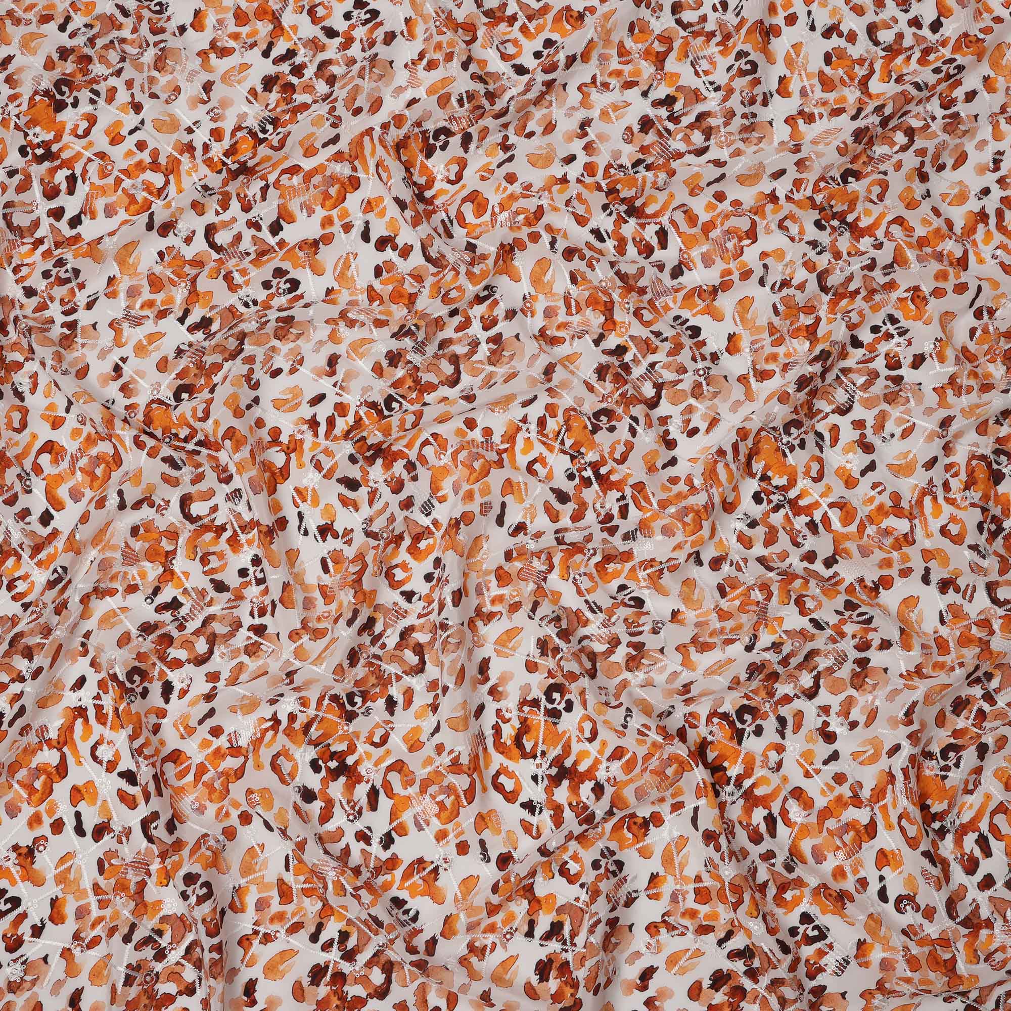 Ivory Base Orange Brown Leopard Print Viscose Crepe Fabric, 110 Cms Width, Made in India-D23608