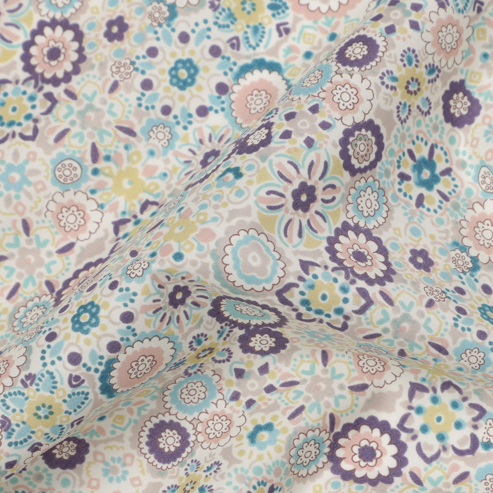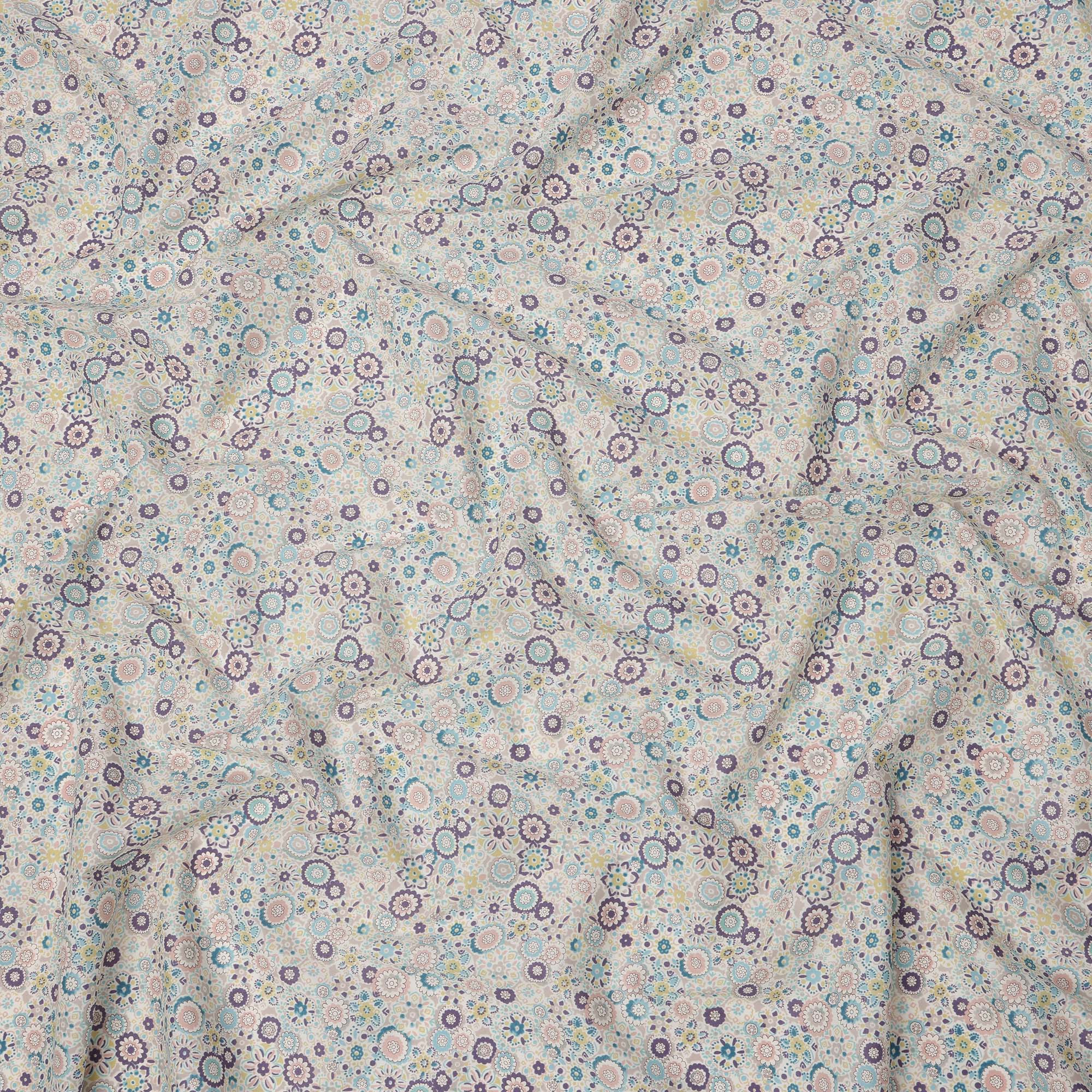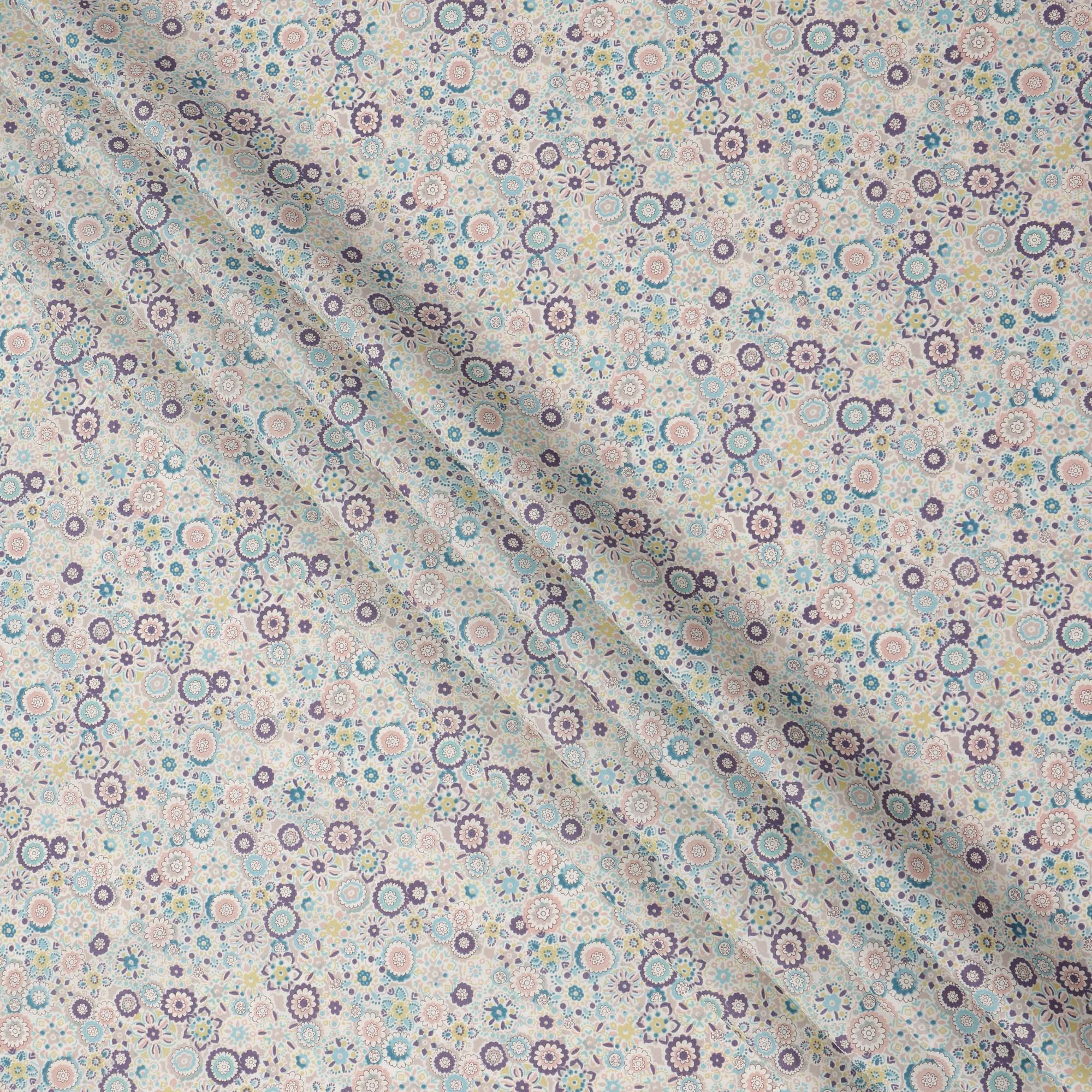 Ivory Beige Cotton Lawn Fabric with Pastel Floral Tile Print, 110 Cms Width, Made in Japan-D24173