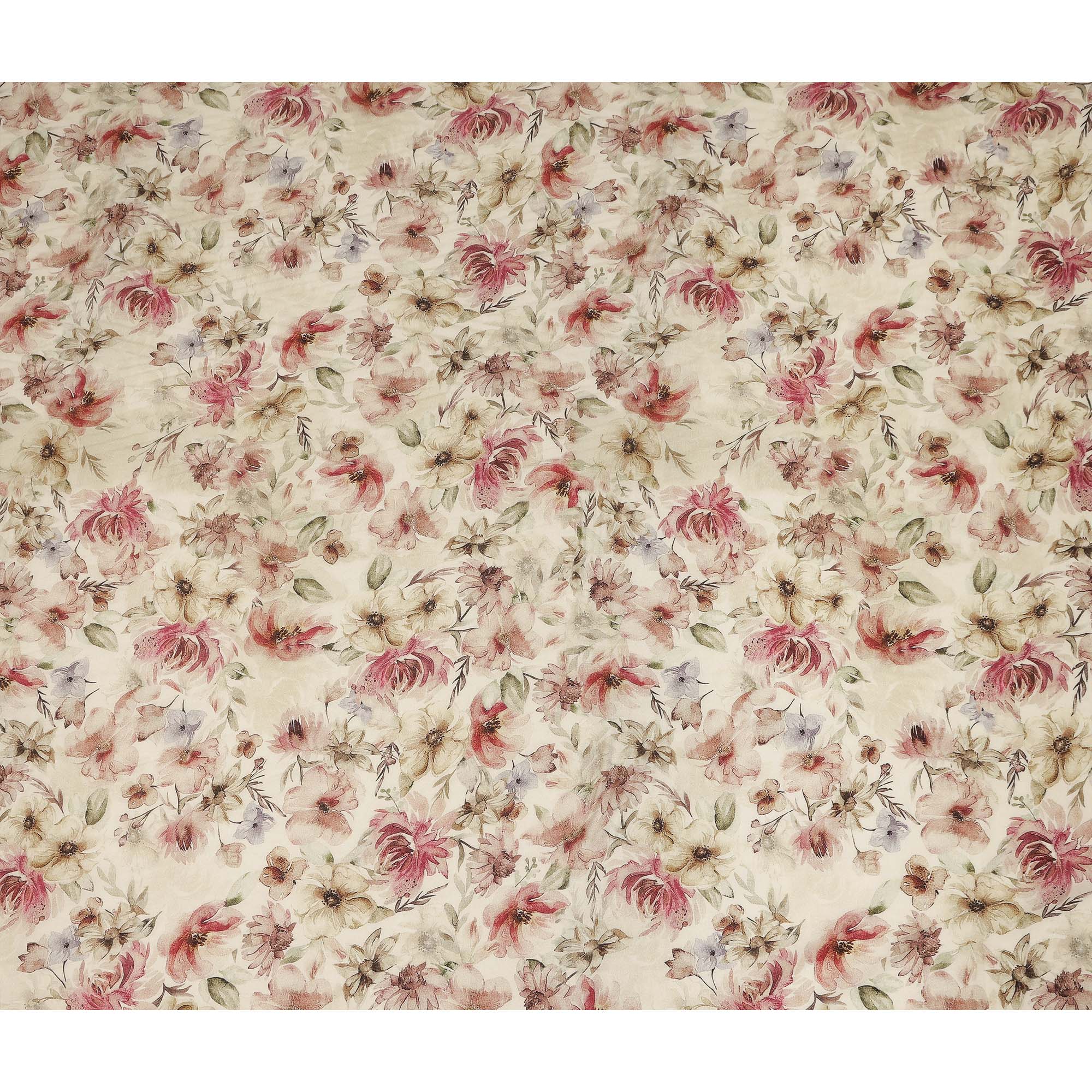 Ivory beige base with vintage floral print creates a delicate and timeless look for stylish garments.