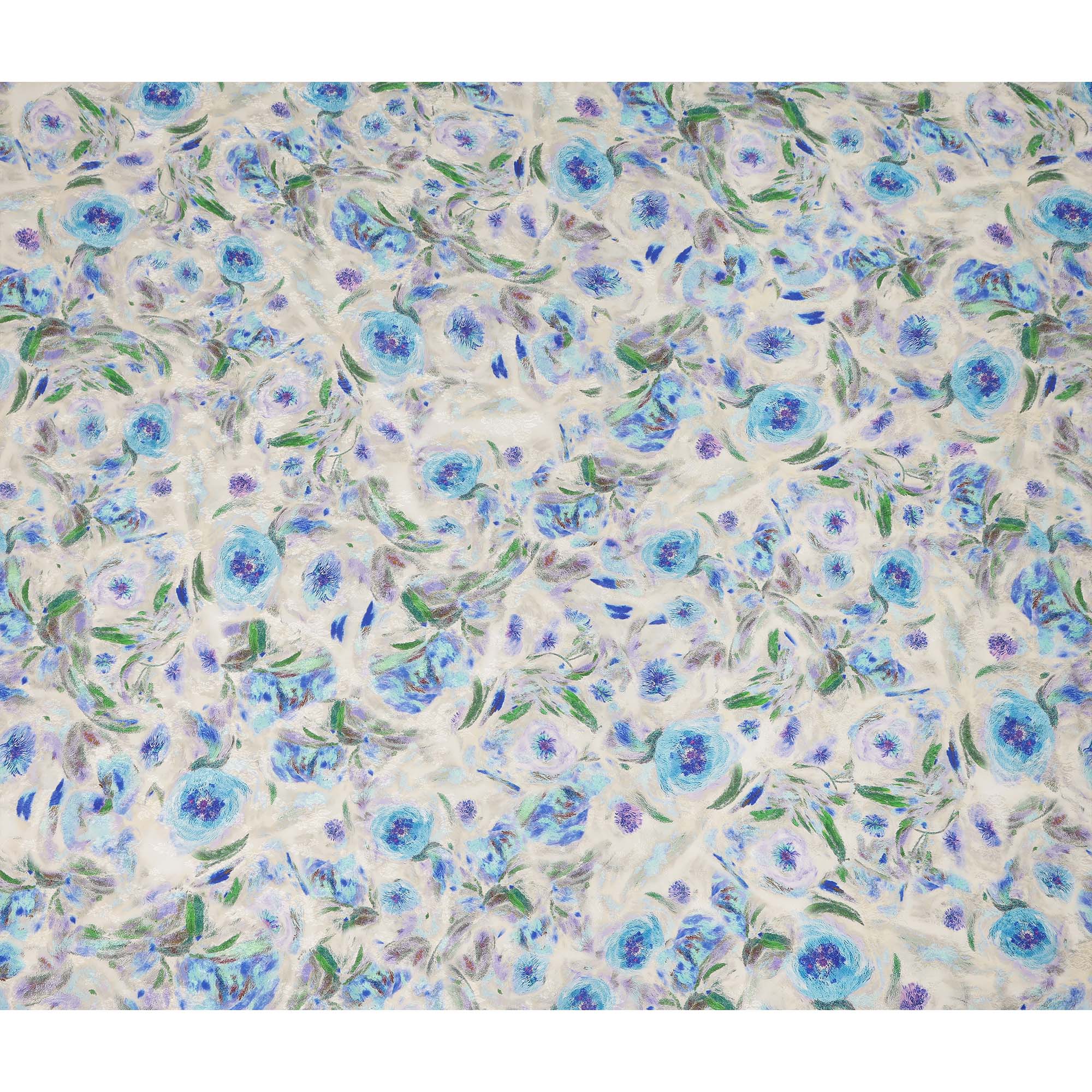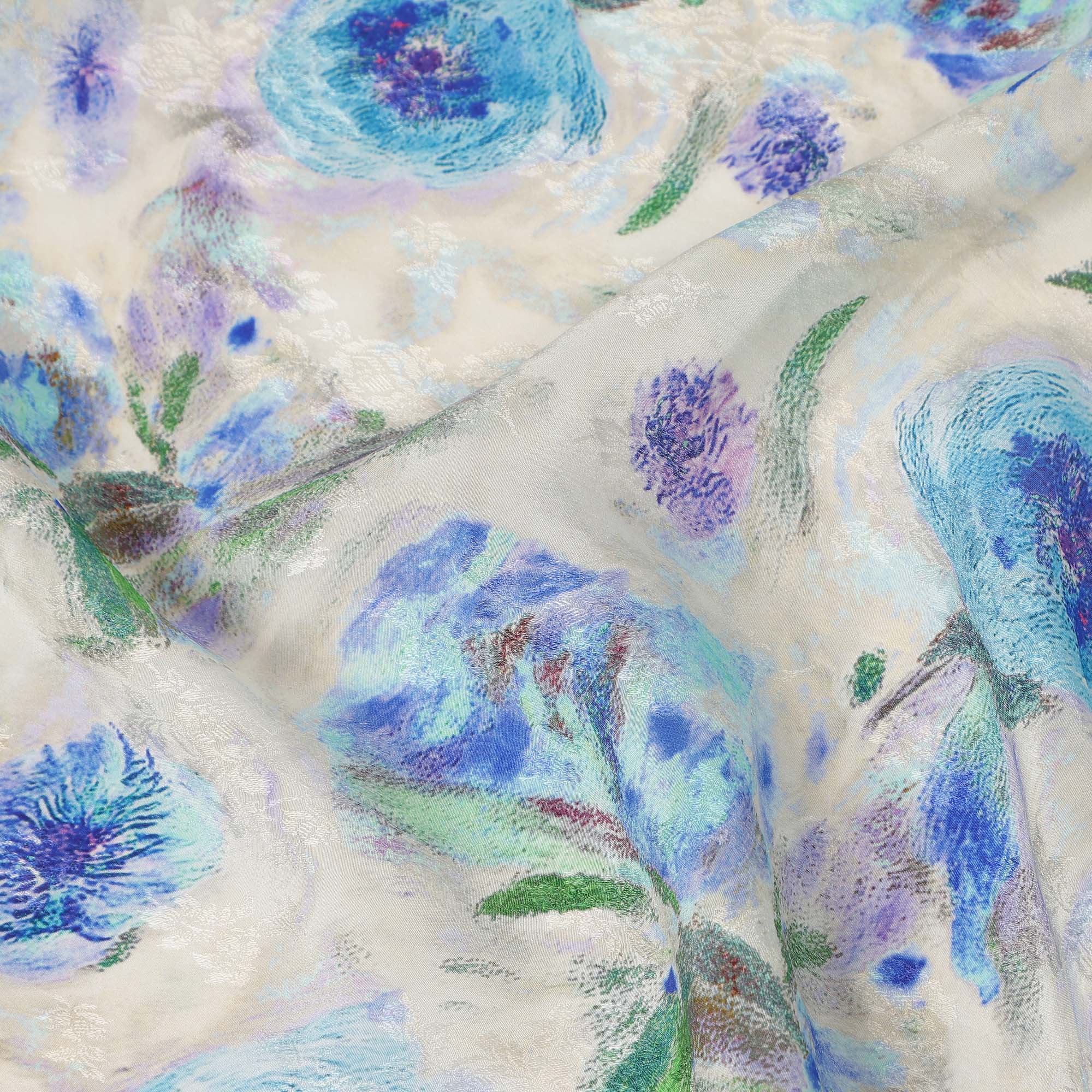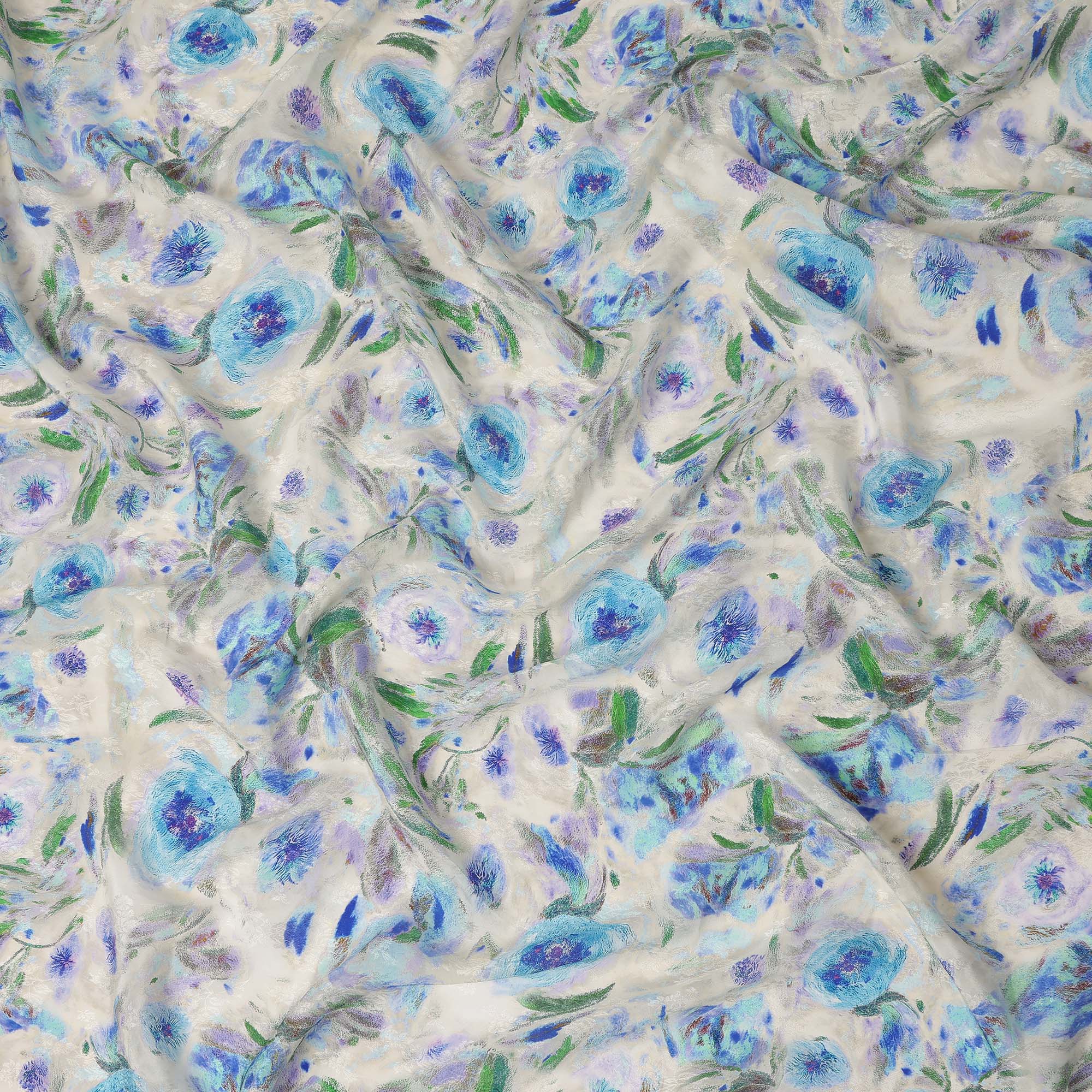 Ivory Blue Floral Printed Viscose Fabric 110 Cms India Origin-D27563