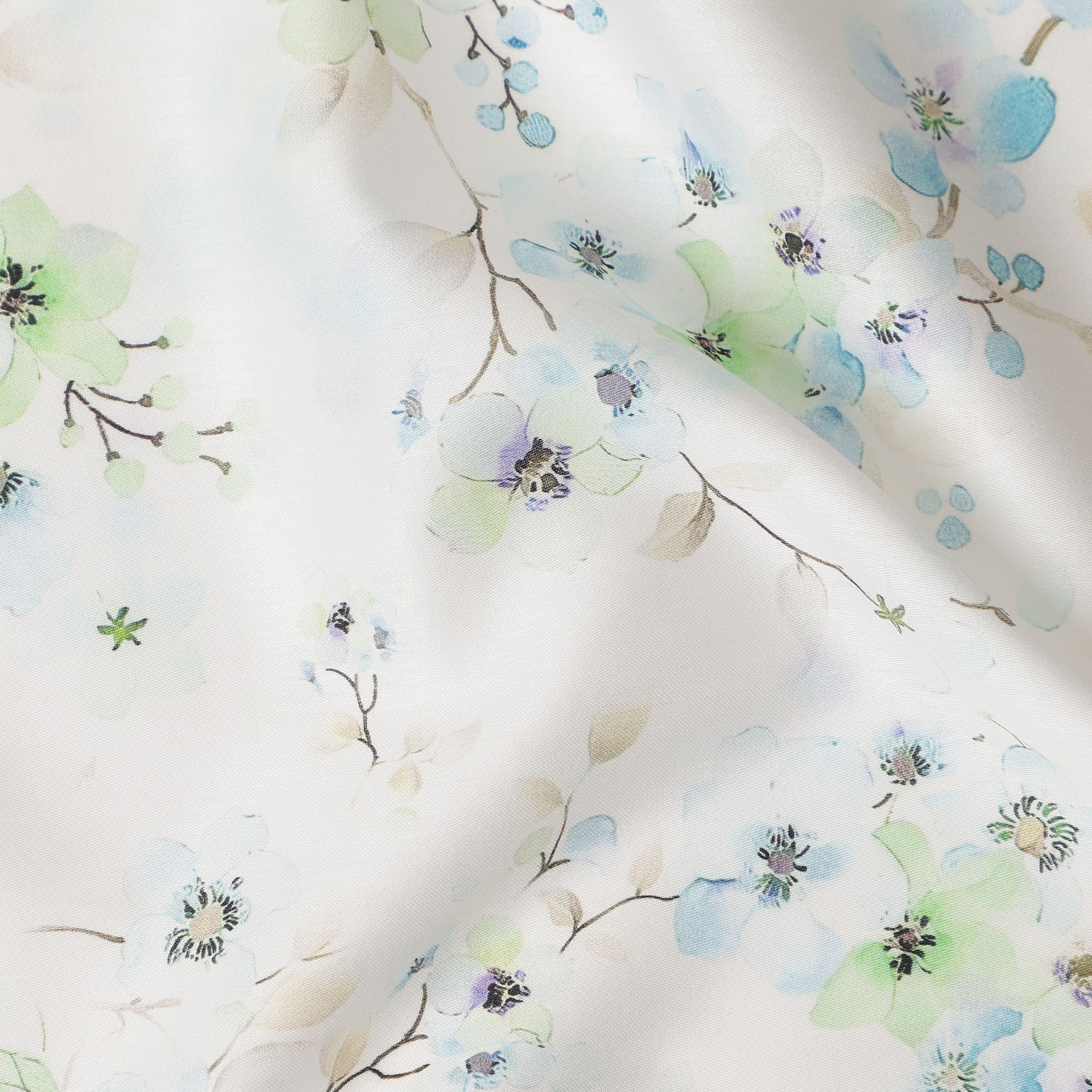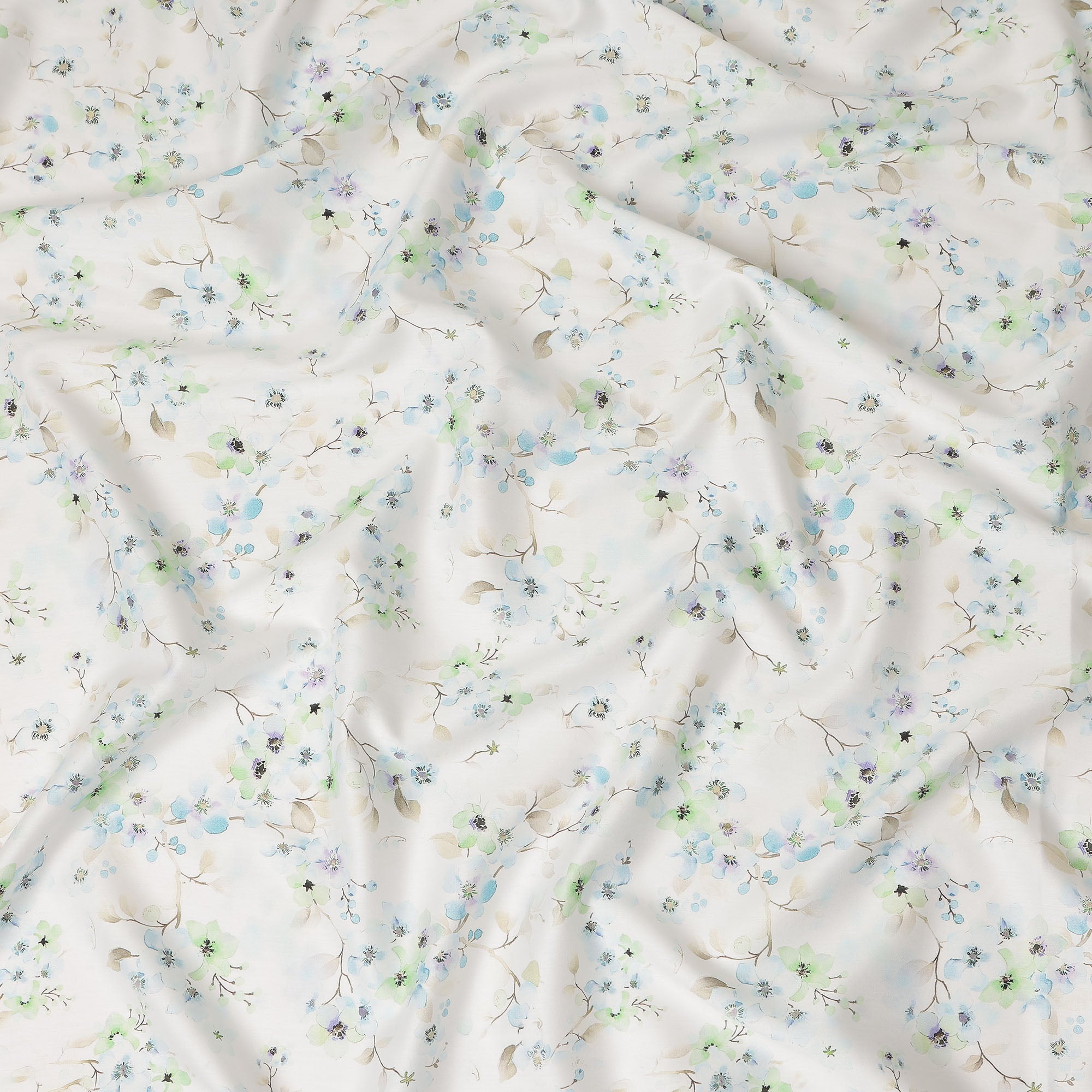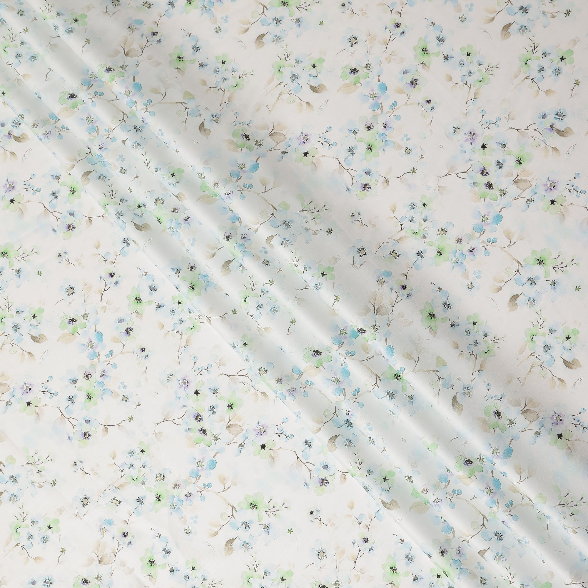 Ivory base with blue and green delicate floral printed design