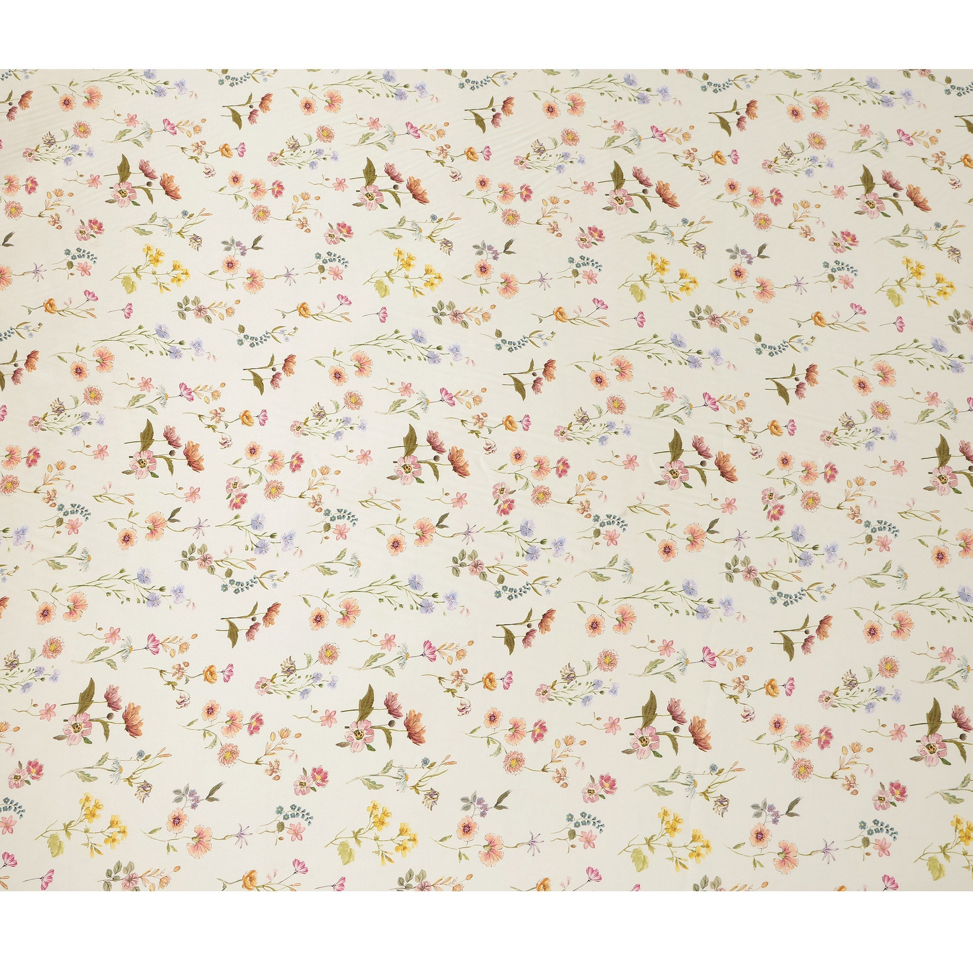 Ivory cream base with delicate multicolor floral allover print.