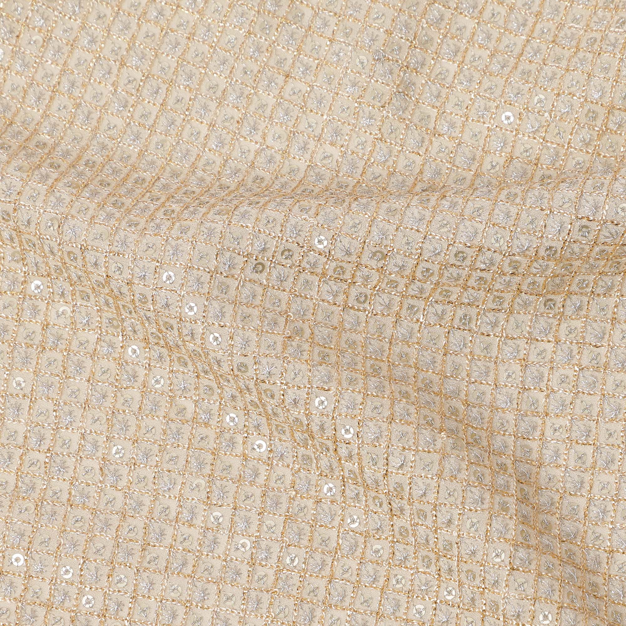 This ivory cream synthetic blended viscose fabric exudes understated sophistication with its intricate square grid embroidery, delicate floral accents, and... Read more Read more