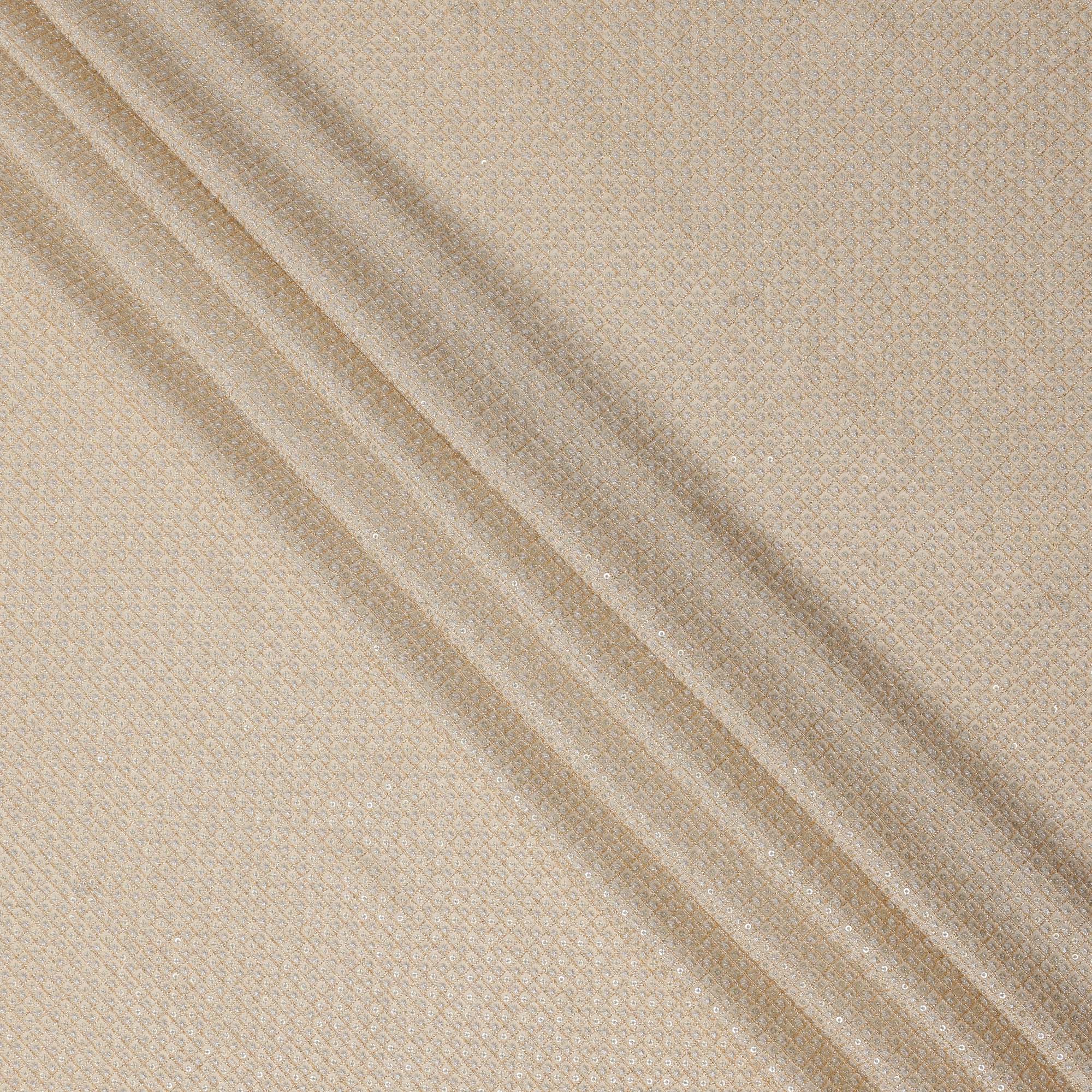 This ivory cream synthetic blended viscose fabric exudes understated sophistication with its intricate square grid embroidery, delicate floral accents, and reflective mirror embellishments that shimmer subtly against the soft neutral base. Crafted to perfection, the elegant color and refined design make it ideal for ceremonial and festive wear, offering a blend of tradition and modern flair. The fabric’s 110 cms width allows for diverse tailoring options including sarees, kurta sets, and dupattas. Produced in India, this fabric reflects skilled craftsmanship and cultural artistry. Buy online now and craft timeless ethnic looks with refined elegance.