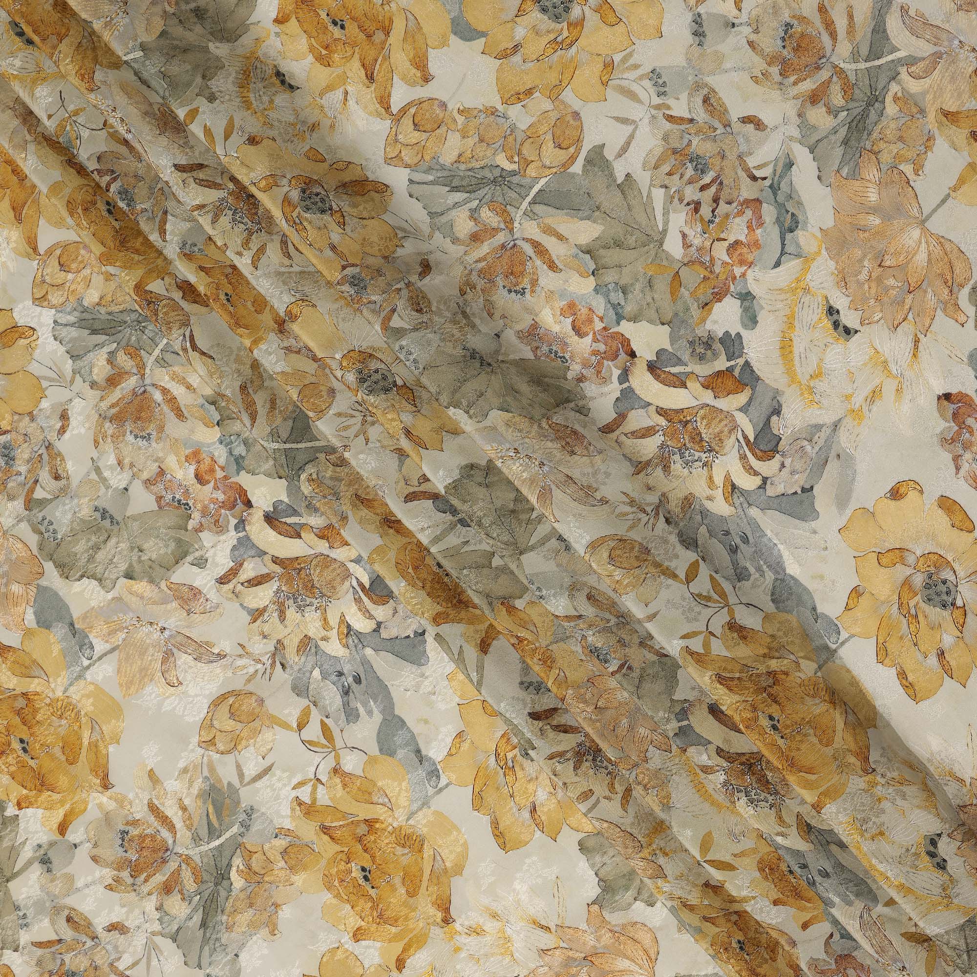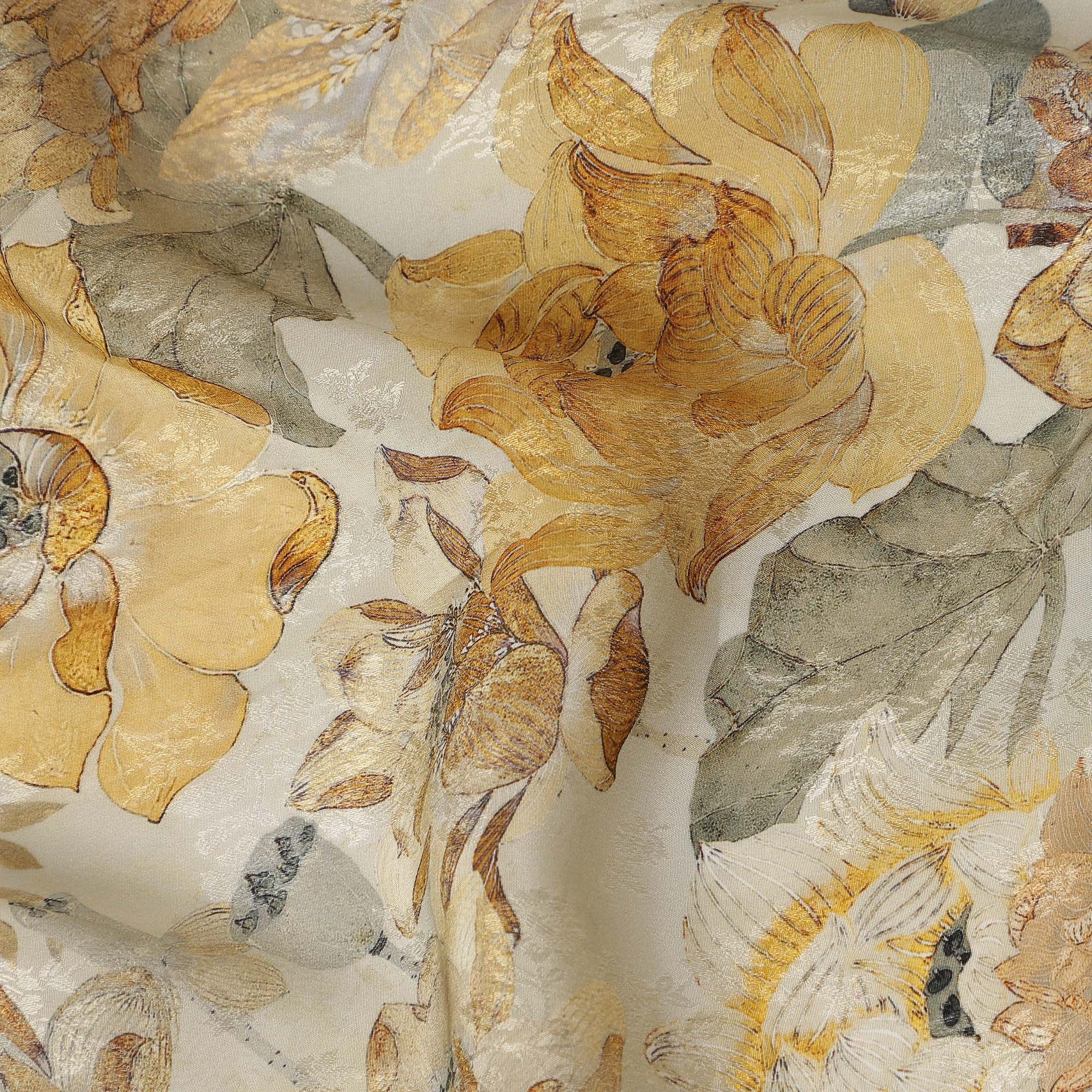 Ivory Cream Yellow Floral Printed Viscose Fabric 110 Cms India Origin-D27548