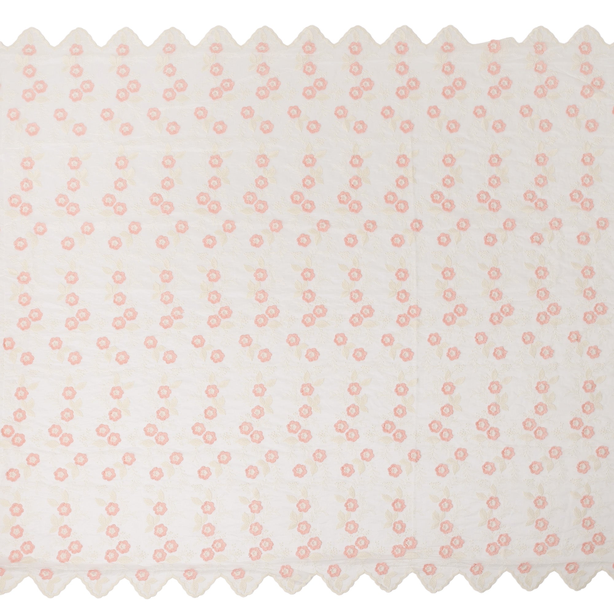 Scalloped embroidered border adds elegance and structure