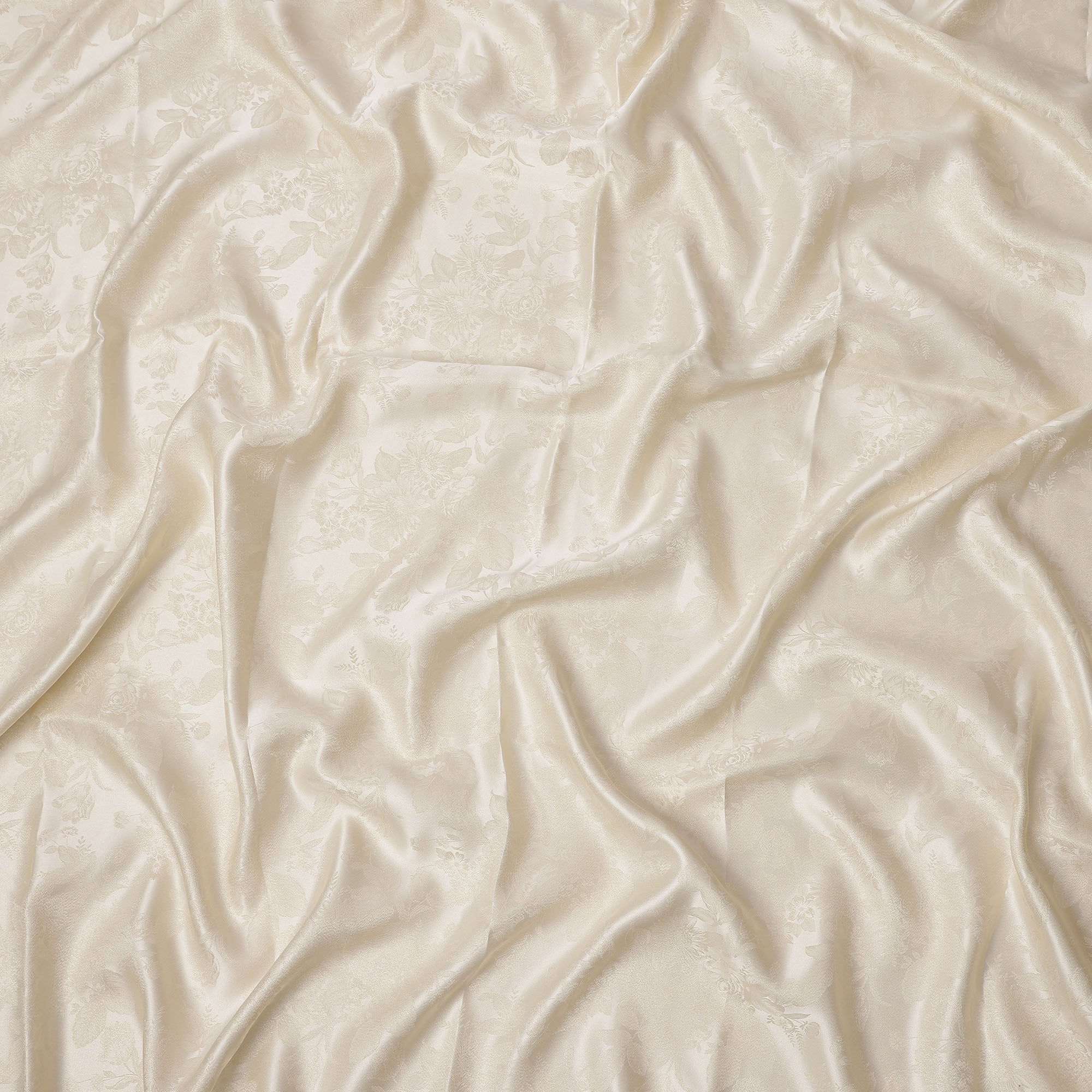Ivory Floral Self-Design Pure Silk Satin Fabric 140 Cms Width Made in China-D24881