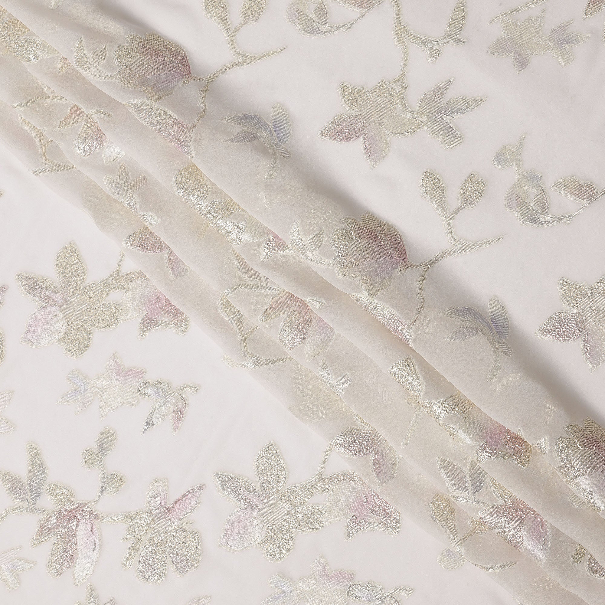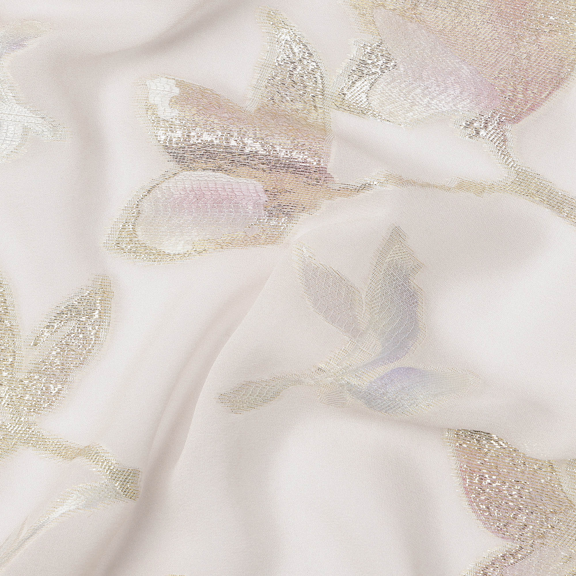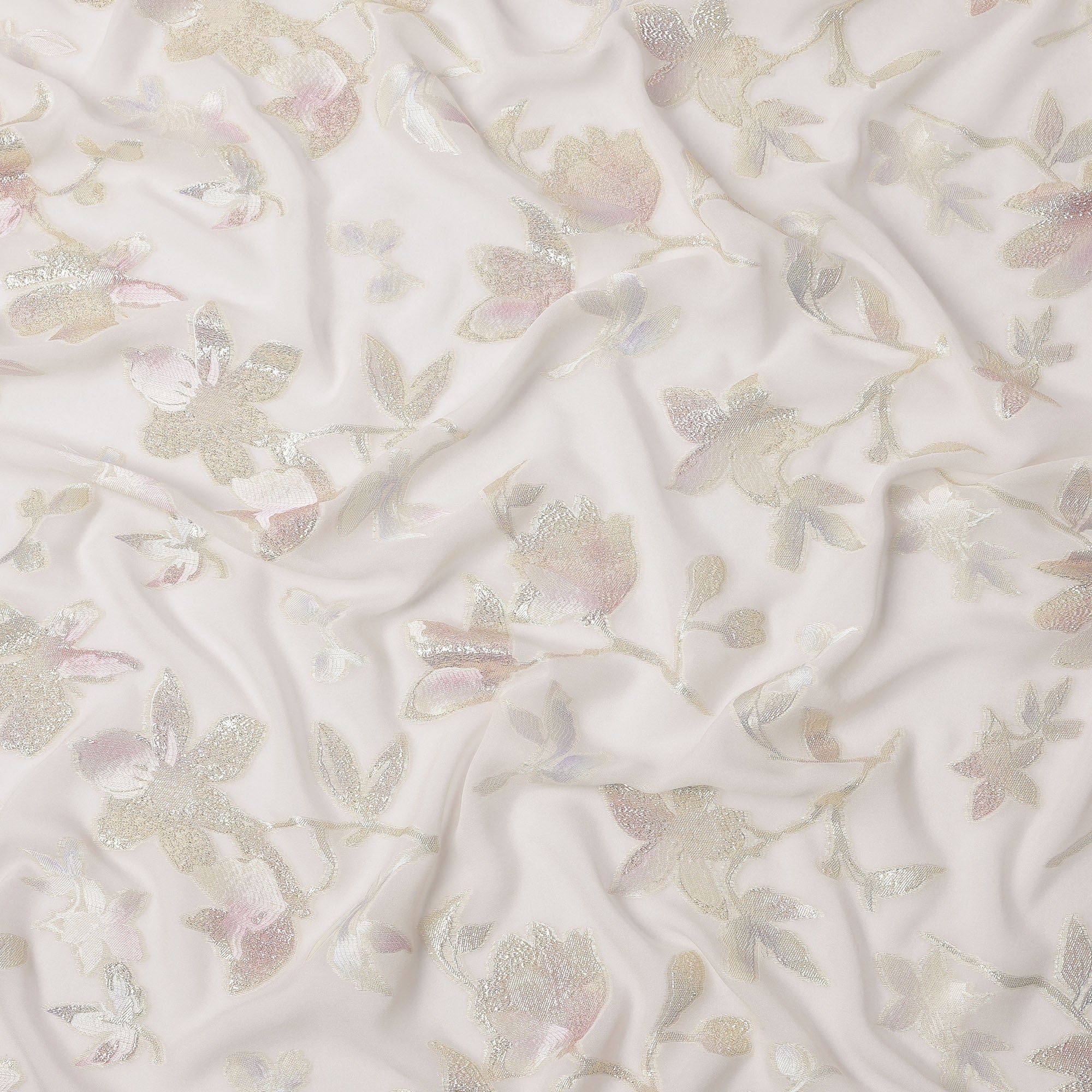 Ivory Floral Silk Chiffon Fabric with Metallic Lurex, 140 Cms, South Korea-D25484
