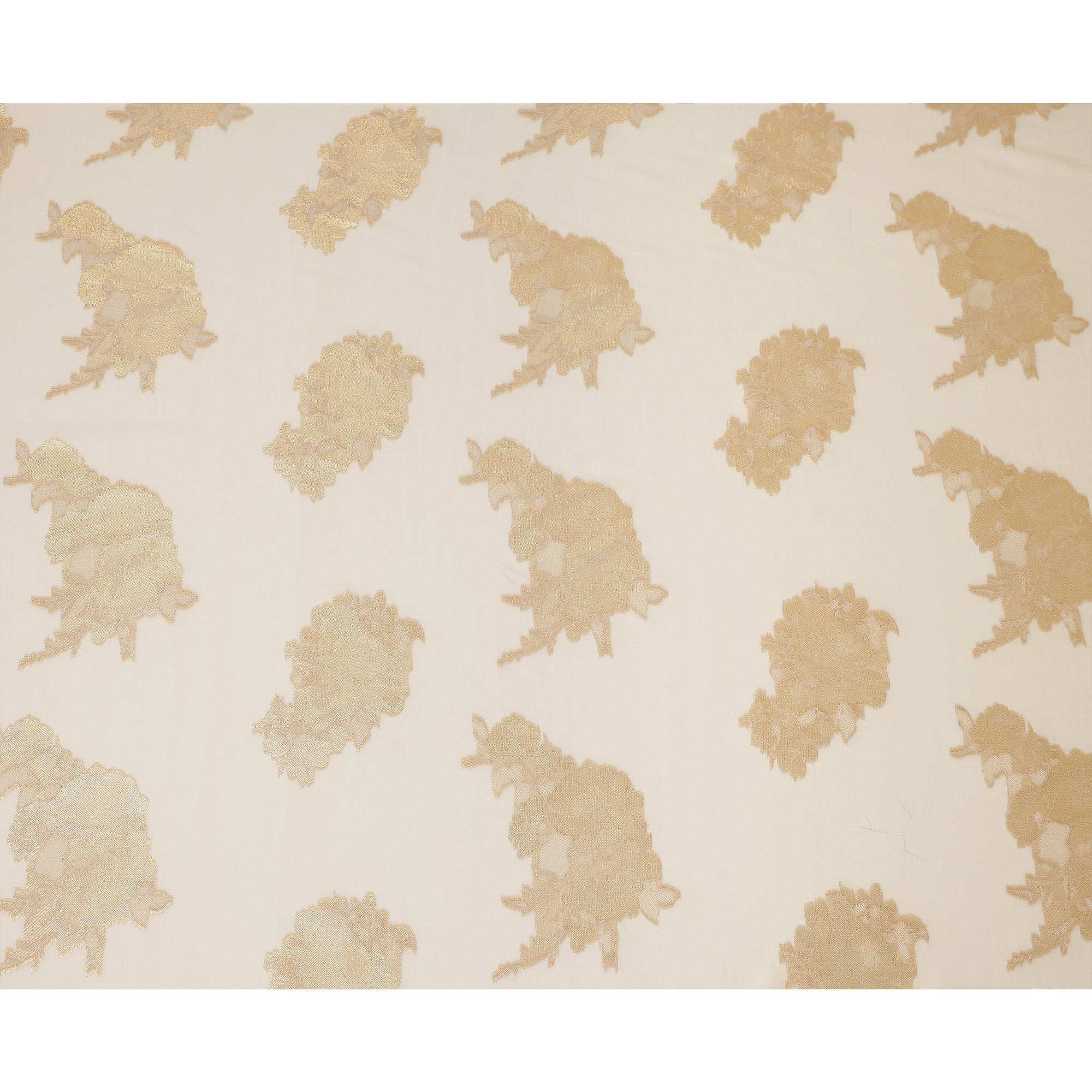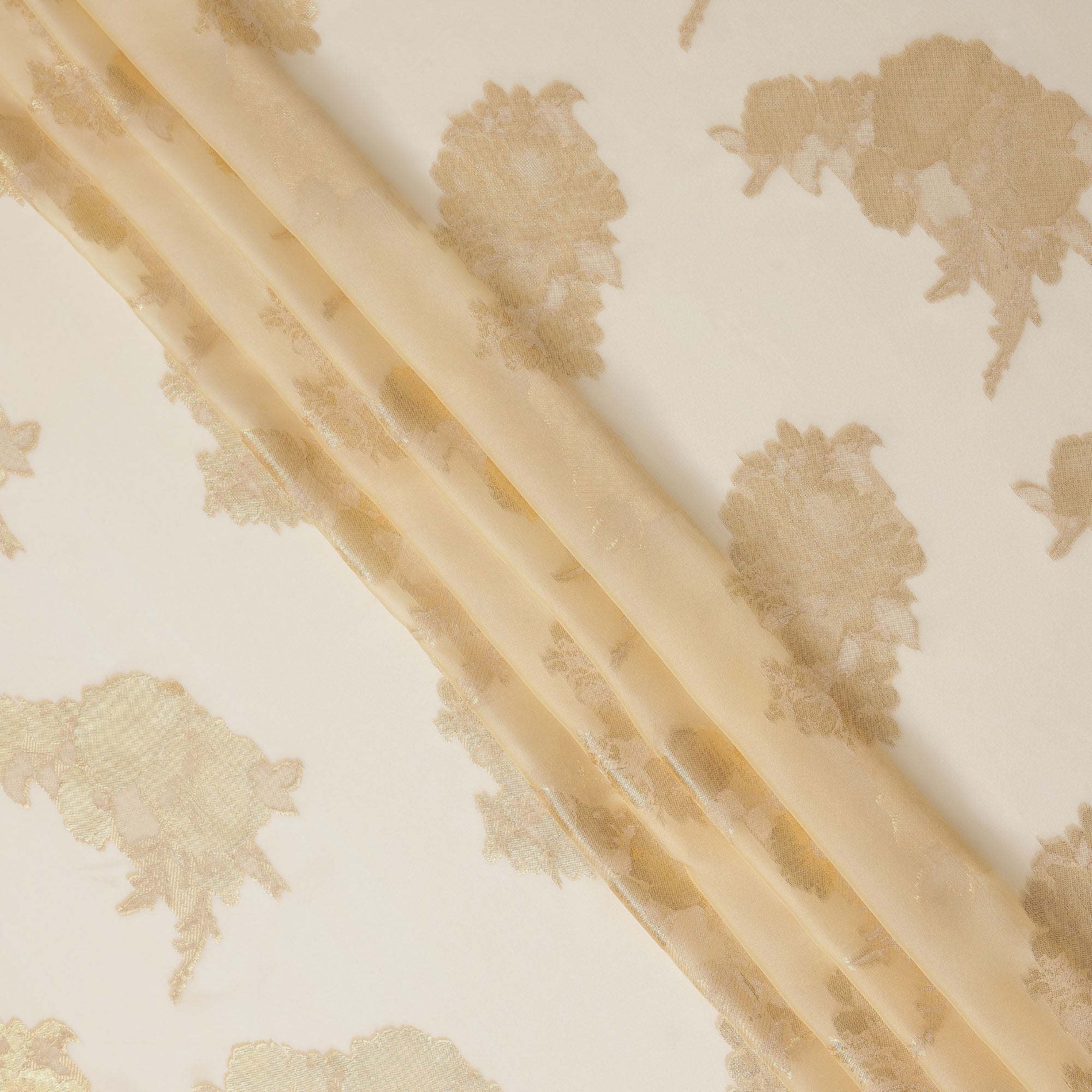 Ivory Gold Floral Metallic Lurex Design Premium French Silk Chiffon Fabric, 110 Cms Width, Made in France-D25740