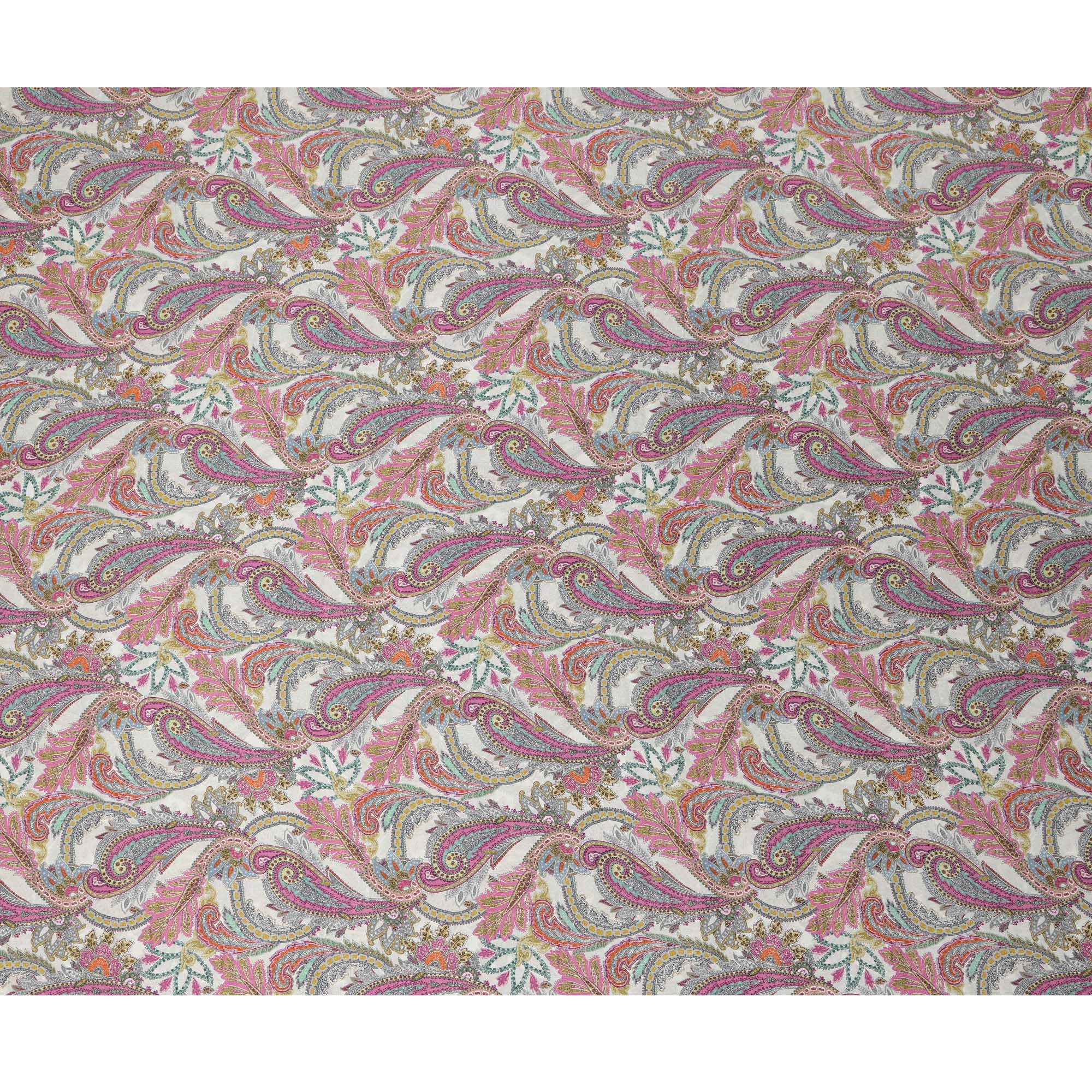 Celebrate heritage design with this ivory multicolor paisley print viscose modal satin fabric, where traditional Indian motifs meet luxurious fabric quality. Featuring intricate paisley patterns in vibrant shades of fuchsia, teal, mustard, coral, and grey, this fabric creates a lively yet elegant statement against a classic ivory satin base. The smooth, silky finish of viscose modal offers excellent breathability, comfort, and a refined drape, making it perfect for sarees, fusion wear, blouses, or contemporary ethnic silhouettes. Its 110 cms width ensures creative freedom for a variety of garment and décor applications. Lightweight yet rich in texture, the fabric glides beautifully and captures light for a soft sheen. Proudly made in India, it reflects the cultural artistry and textile legacy of the region. Shop online now to infuse your wardrobe with timeless paisley charm and a luxurious touch.