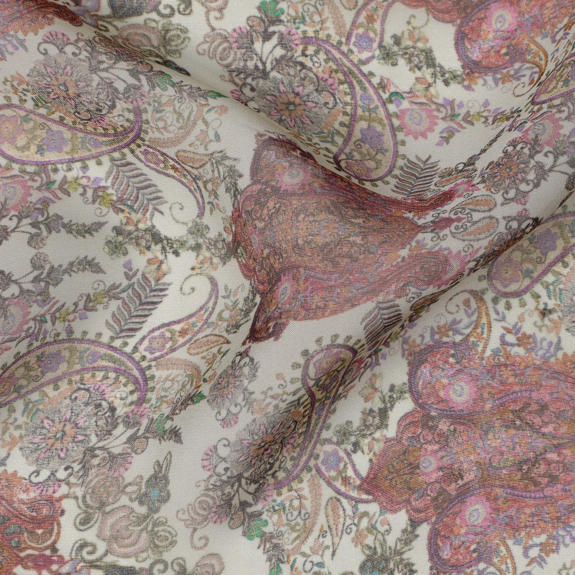Ivory base with paisley and floral print in maroon, olive, and dusty pink tones