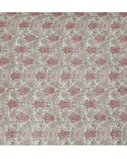 Add a touch of classic elegance to your wardrobe with this ivory synthetic organza fabric adorned with an intricate mix of paisley and floral prints in maroon, olive green, dusty pink, and soft lavender tones. The harmonious interplay of traditional motifs and vintage color palette creates a refined, regal appeal, ideal for sarees, dupattas, and ethnic overlays. Lightweight and semi-sheer with a crisp texture, this organza fabric drapes gracefully while offering structure to any silhouette. Measuring 110 cms in width, it provides ample fabric for diverse ethnic and fusion styles. Crafted in India using high-quality synthetic yarns and precise print detailing, this fabric is a timeless choice for festive occasions and traditional outfits. Shop online to embrace this beautifully detailed fabric that effortlessly balances tradition and sophistication.