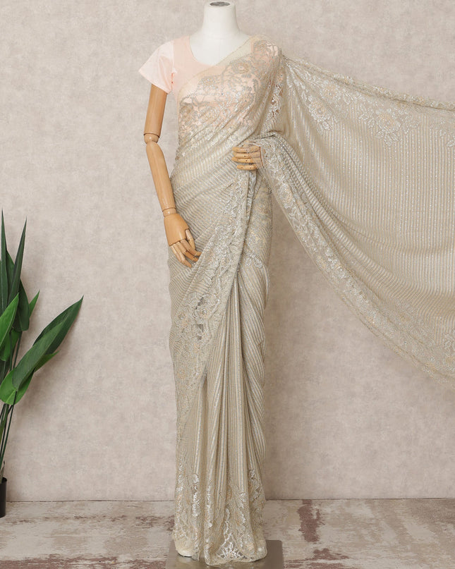 Add a touch of classic elegance to your wardrobe with this ivory synthetic organza fabric adorned with an intricate mix... Read more Read more