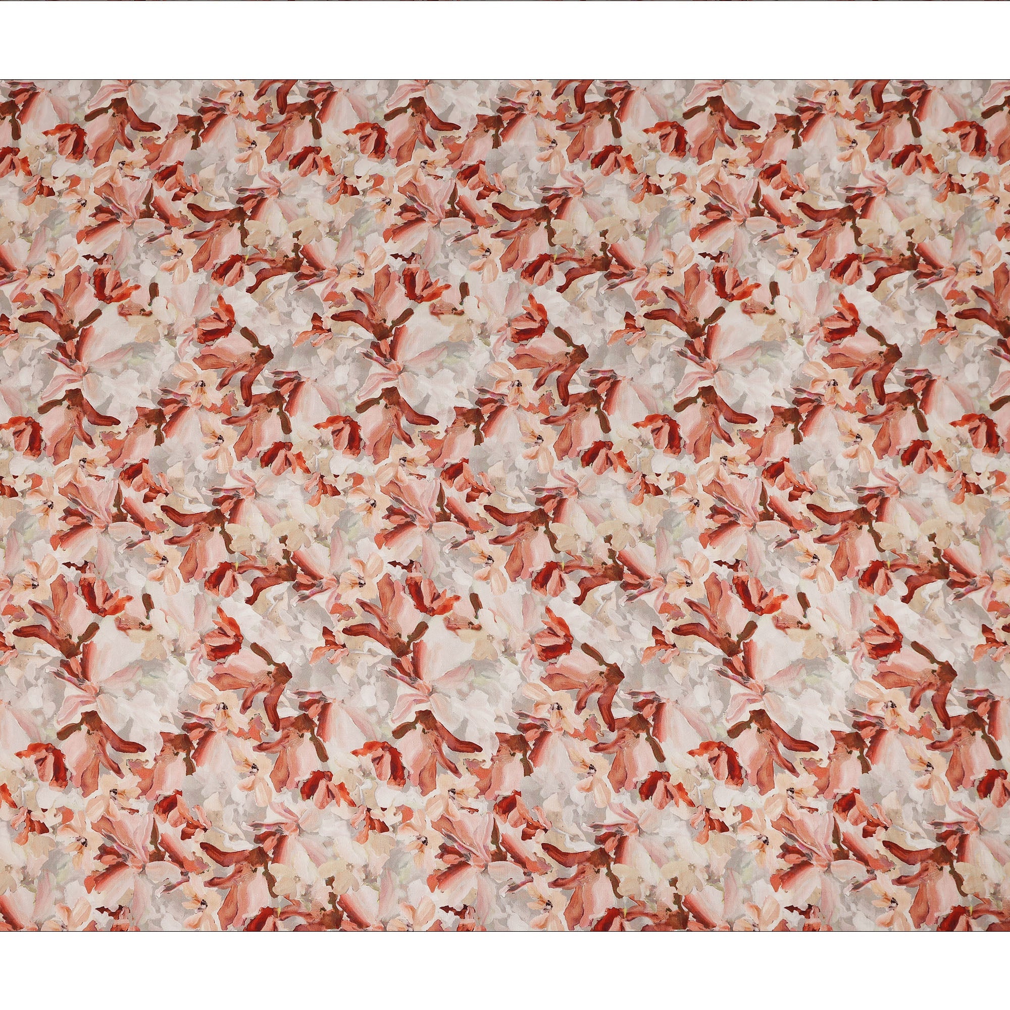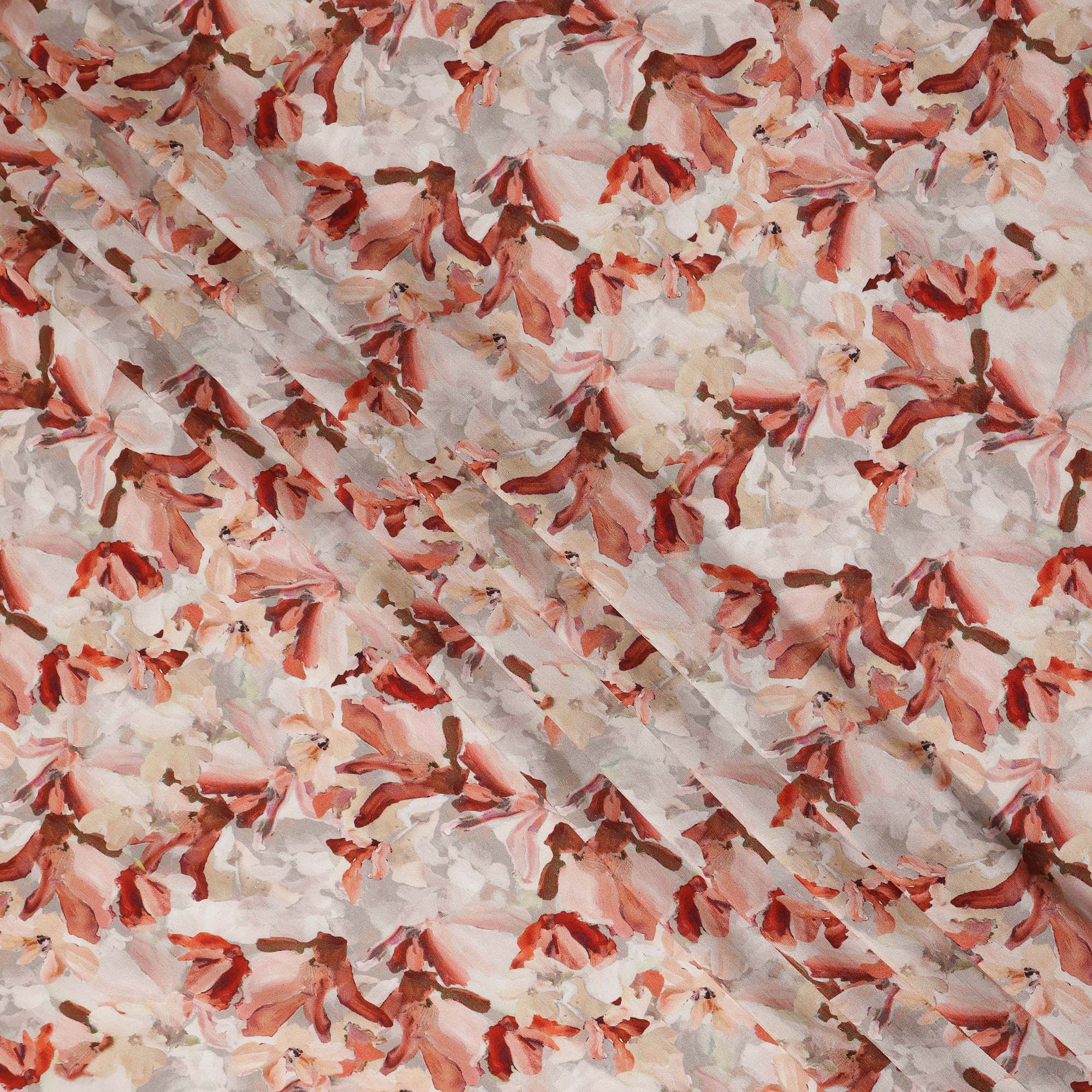 Ivory base with delicate peach-toned floral printed design.