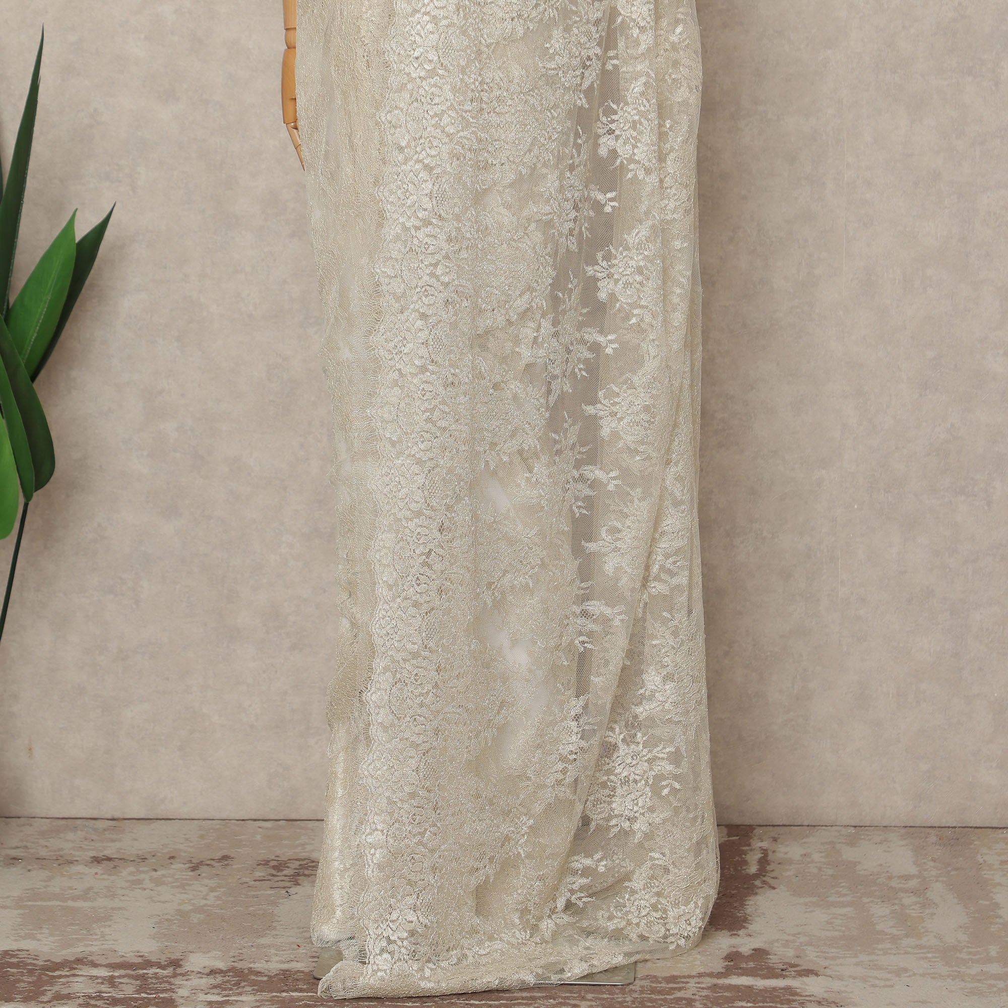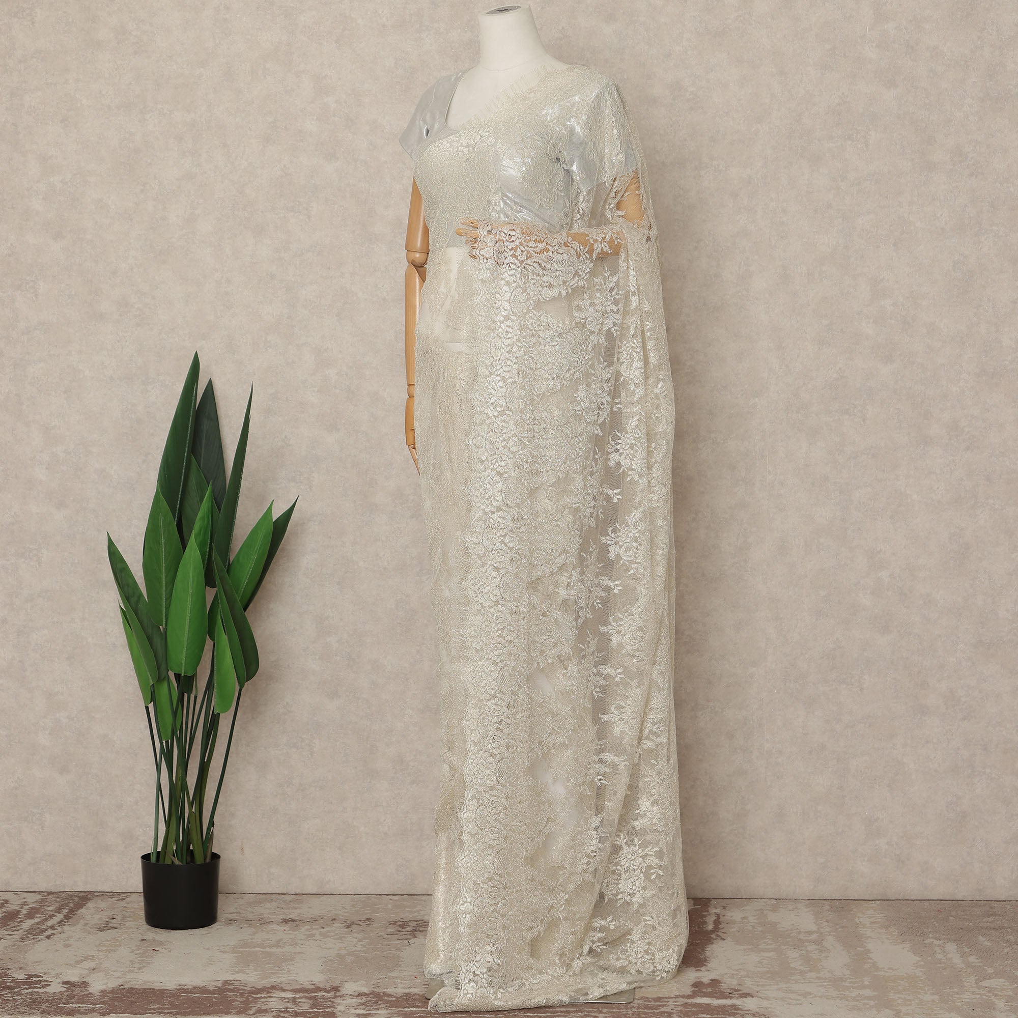Ivory Premium French Metallic Chantilly Saree Lace Fabric 5.5 Meters Length 110 Cms Width Imported From France Elegant Designer Lace Blouse Not Included-D27359
