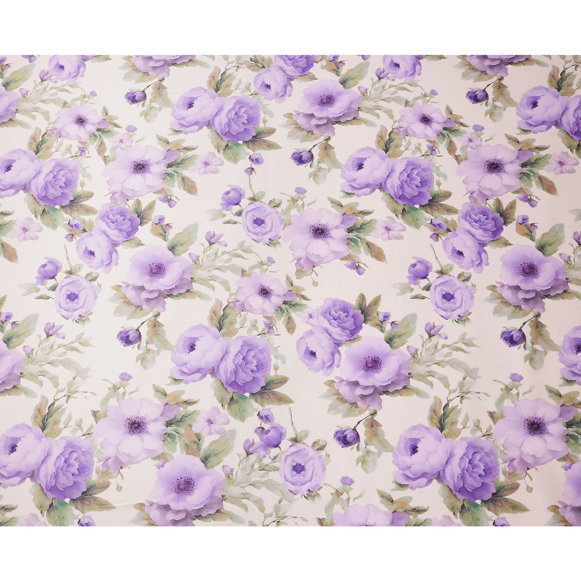 Ivory Pure Silk Satin Fabric with Purple Floral Print, 140 Cms Width, South Korea-D25356