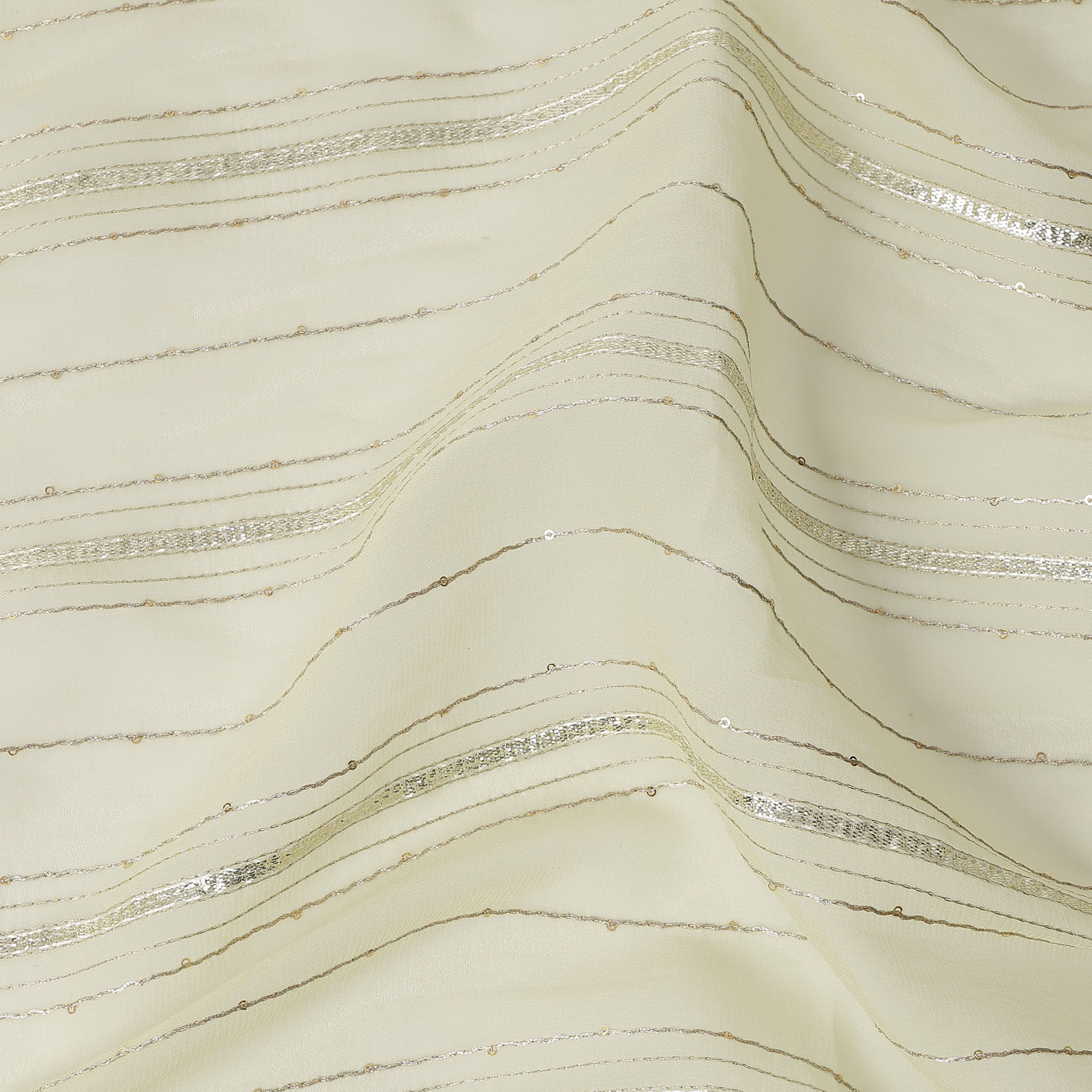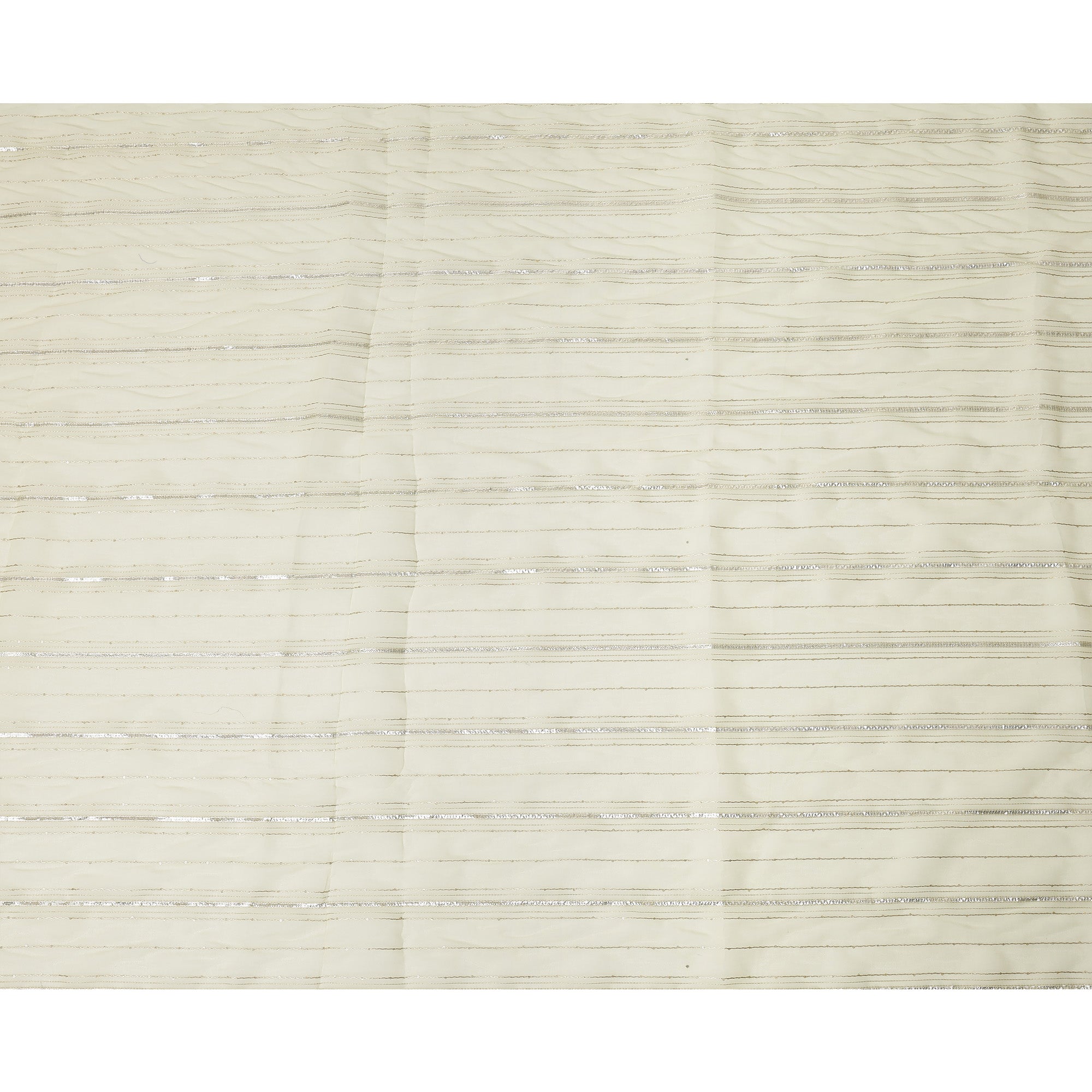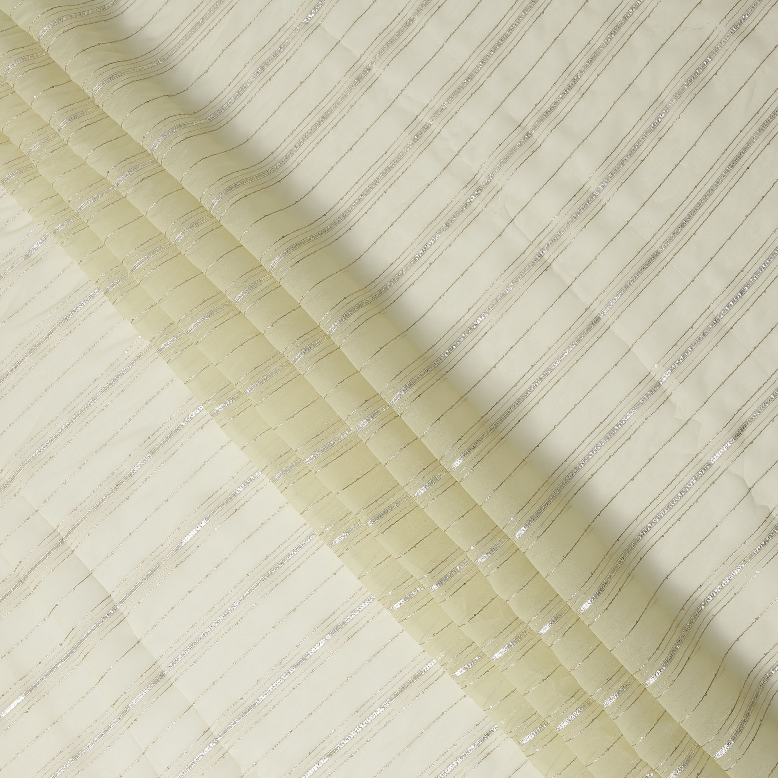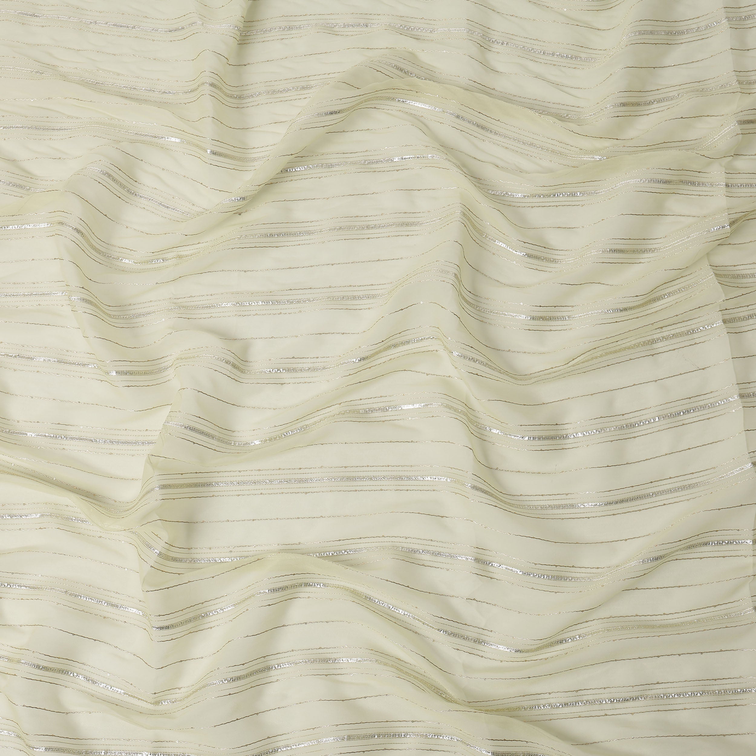 Ivory Silver Zari Striped Synthetic Georgette Chiffon Fabric, 110 Cms Width, Made in India-D26201