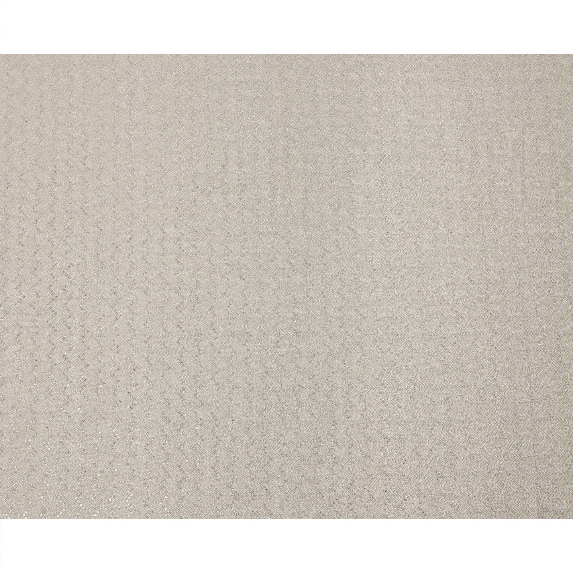 Ivory white fabric with intricately embroidered chevron pattern and mirror highlights