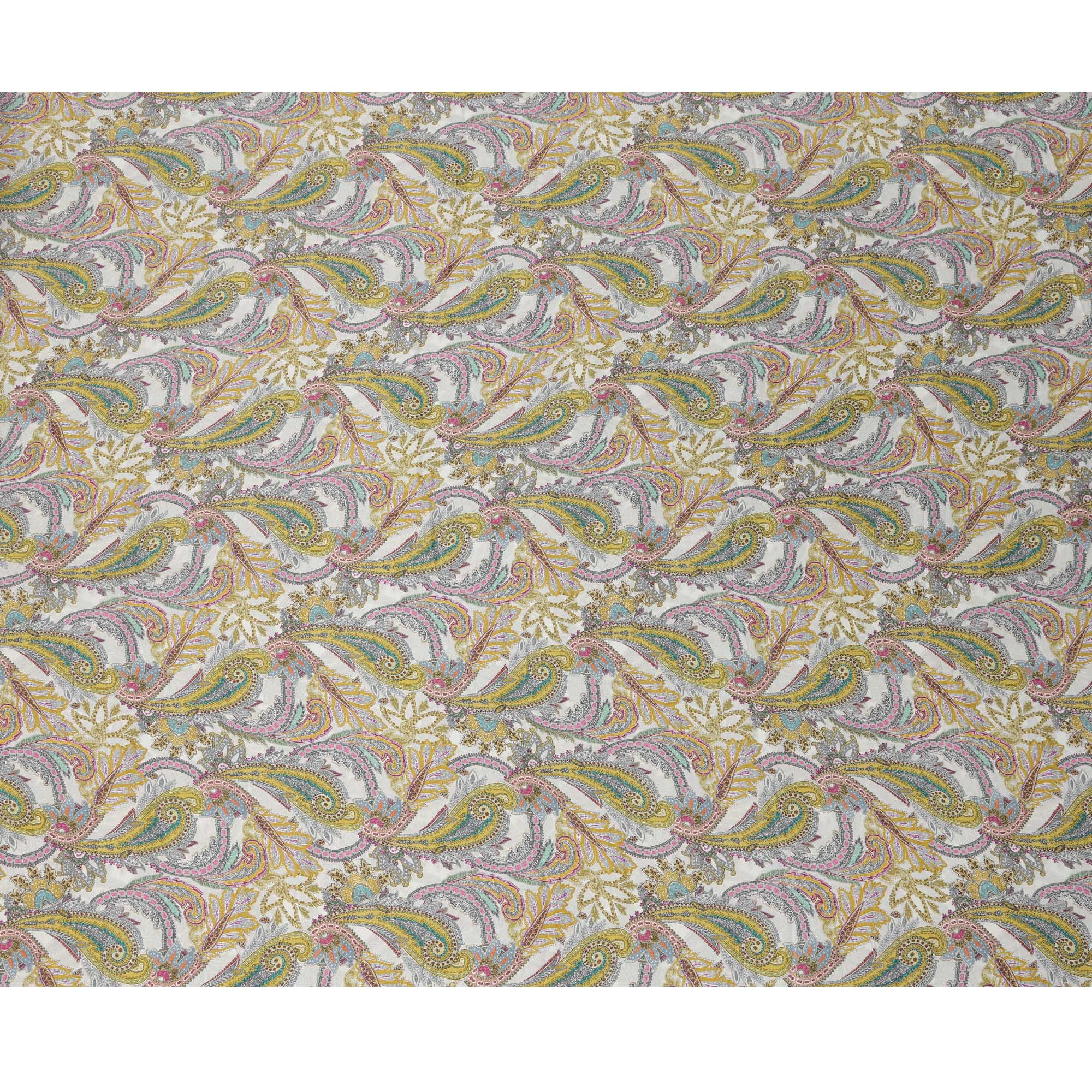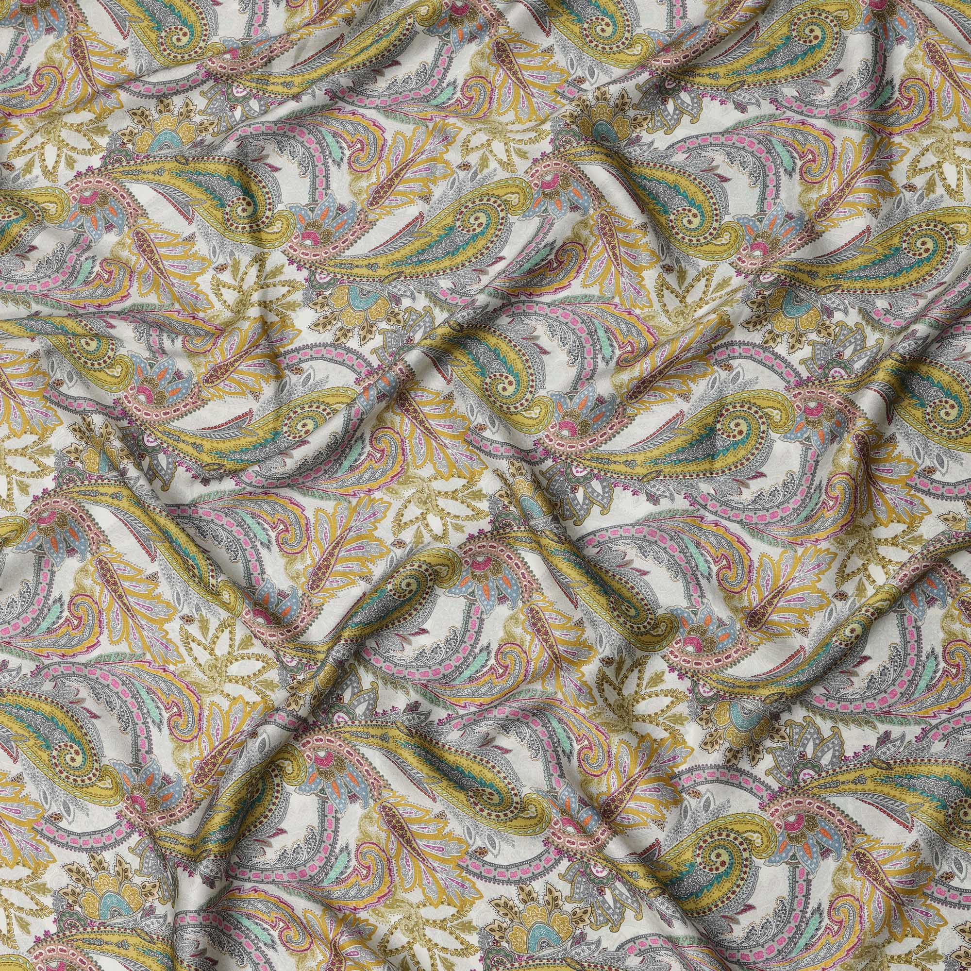 Ivory Yellow Multicolor Paisley Print Viscose Modal Satin Fabric, 110 Cms Width, Made in India-D23305