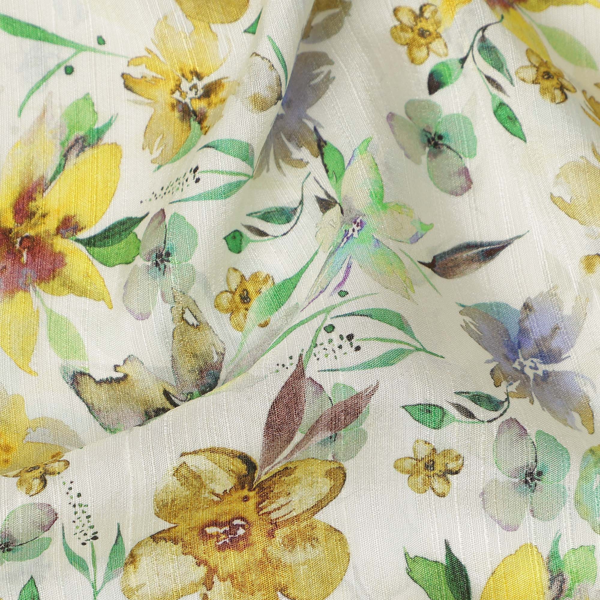 Ivory Yellow Watercolor Floral Printed Viscose Crepe Fabric Soft Lightweight Botanical Flower Print Dressmaking Sewing Craft Fabric 110 Cms Width Made In India-D28342