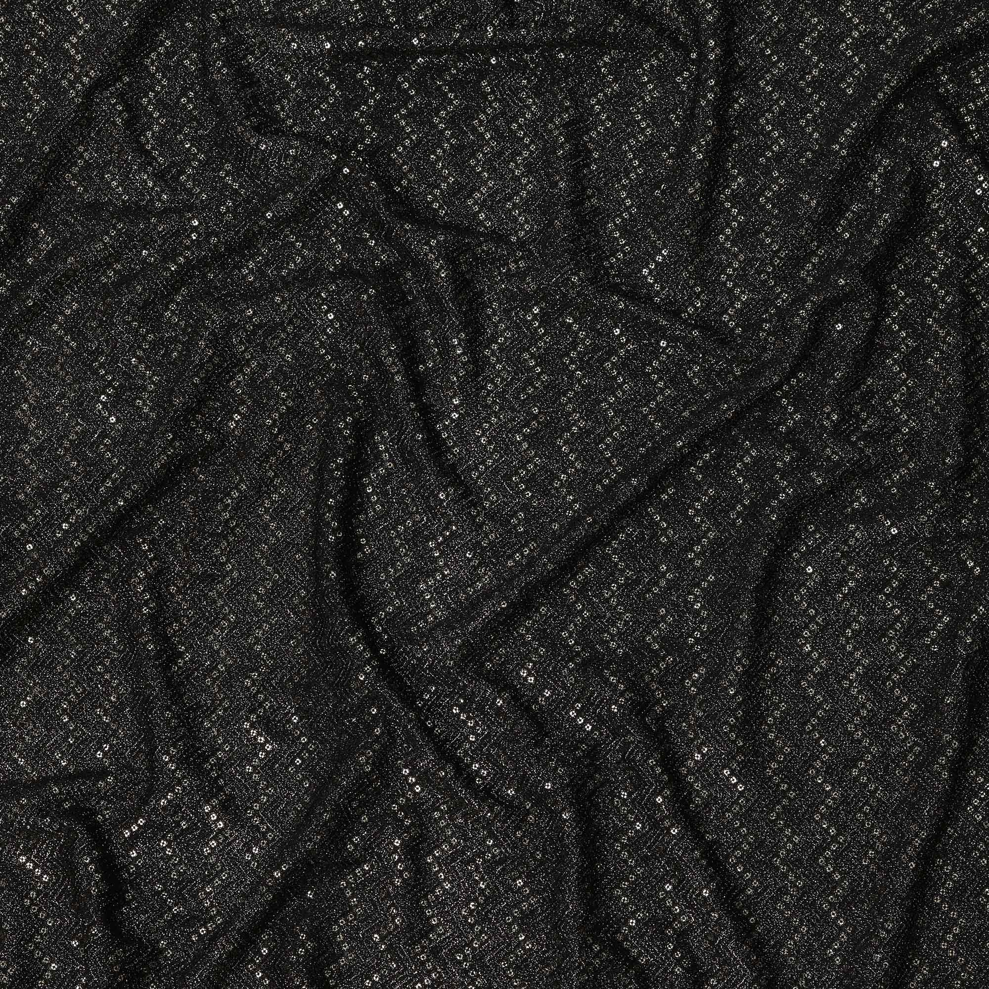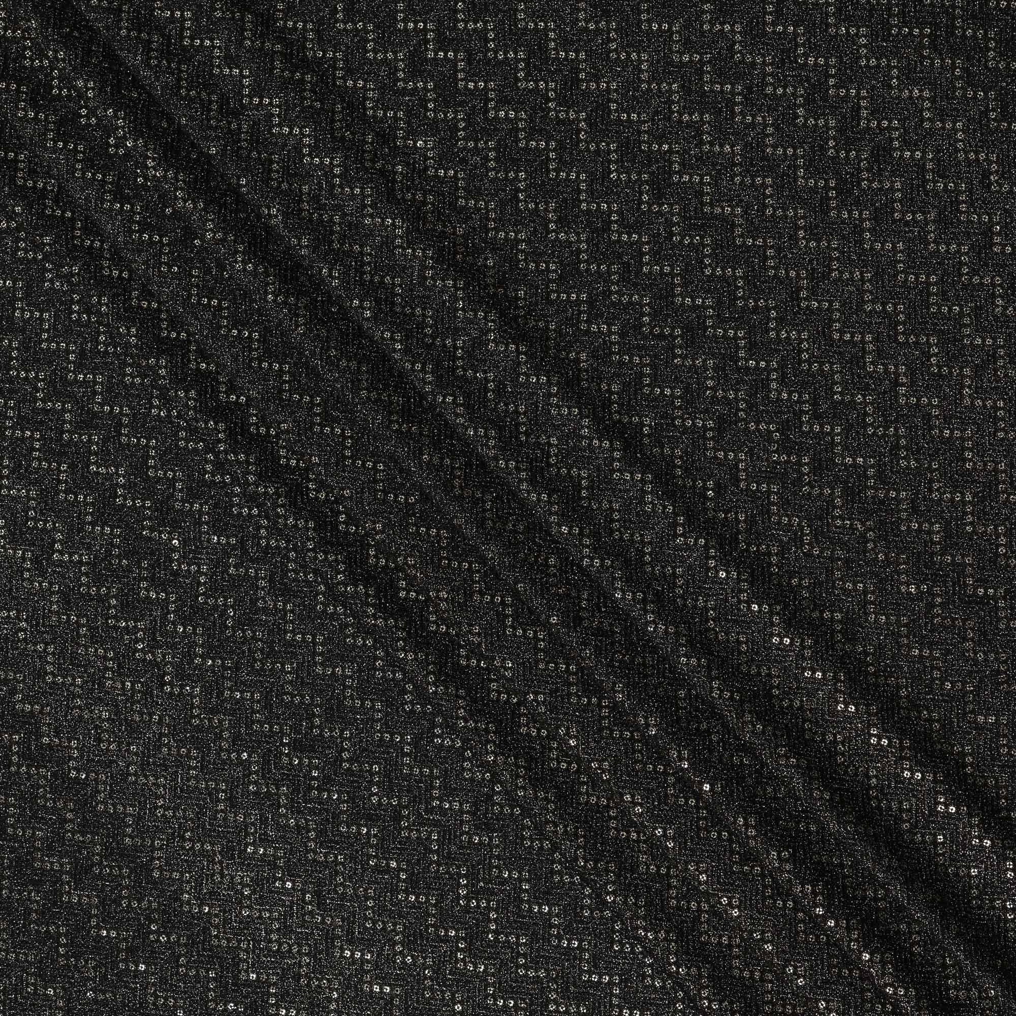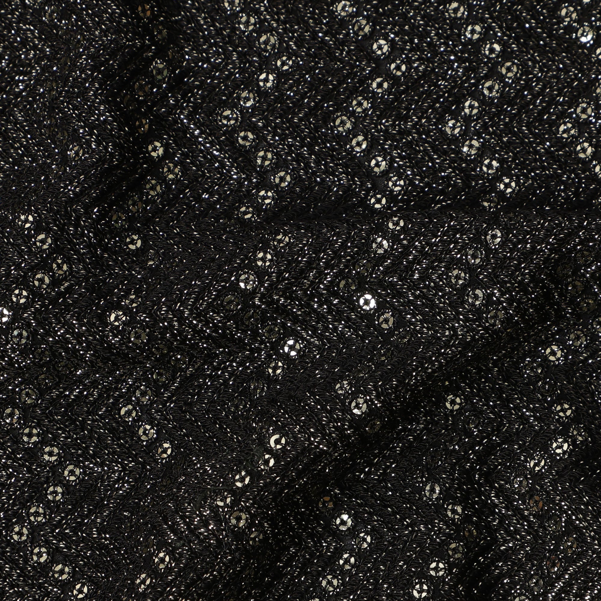Jet black chevron mirror embroidered synthetic blended viscose fabric, 110 Cms, India-D23830