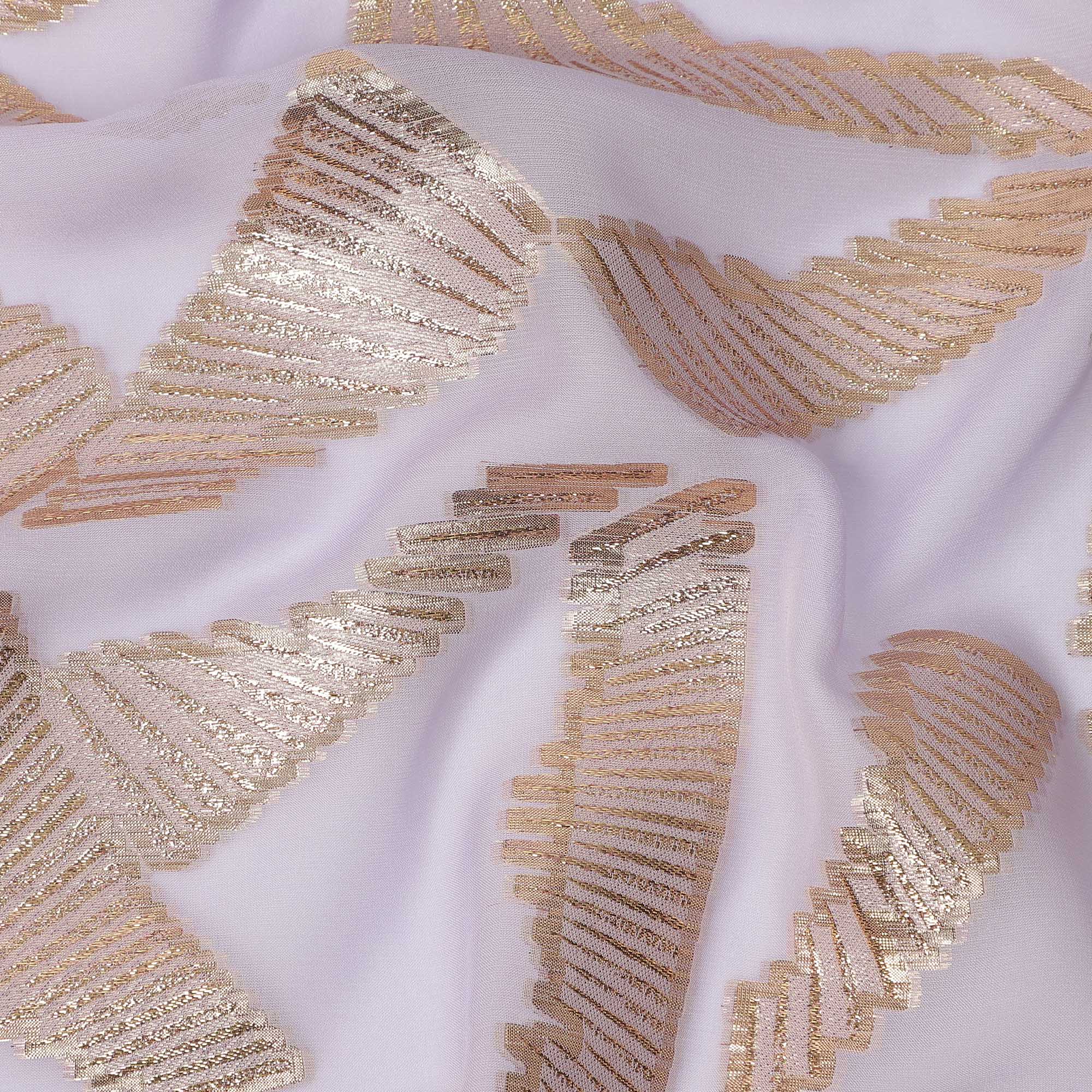 Lavender silk chiffon base enhanced with metallic lurex abstract patterns