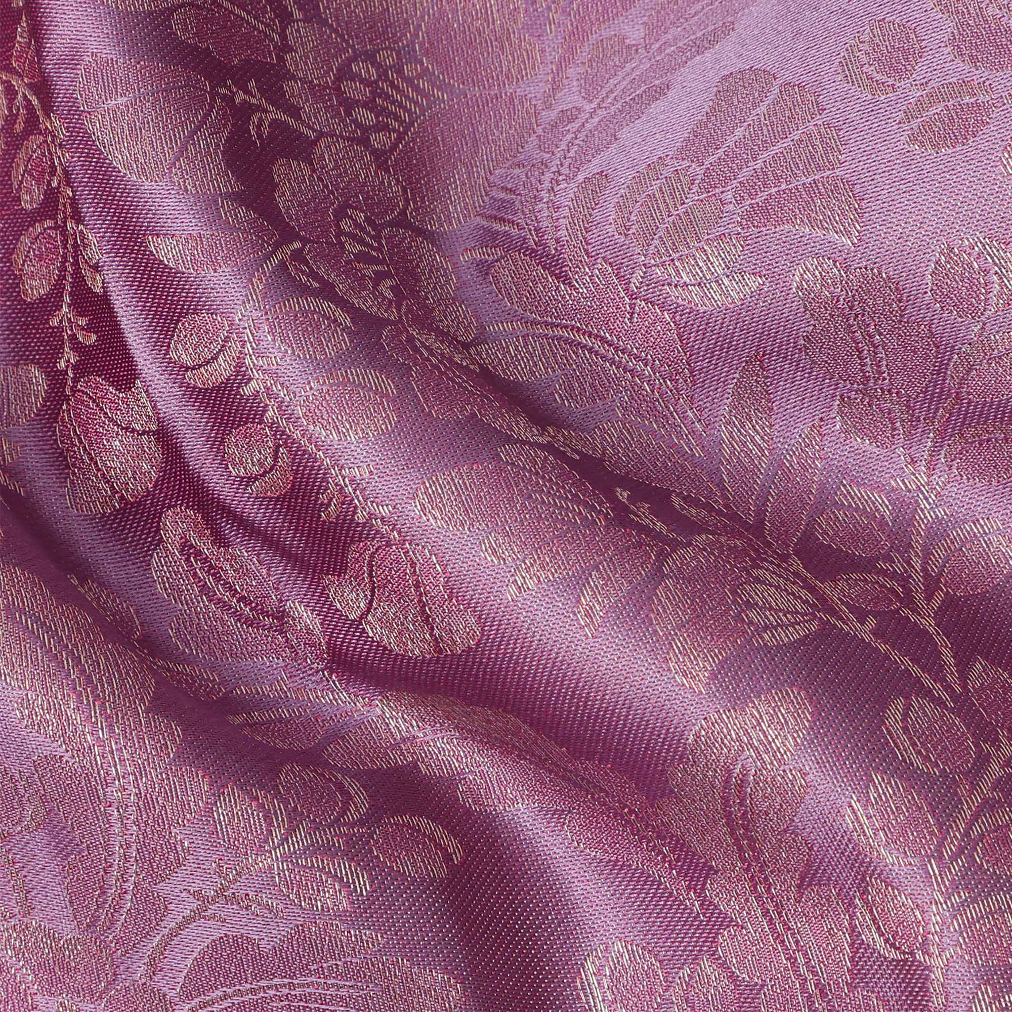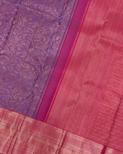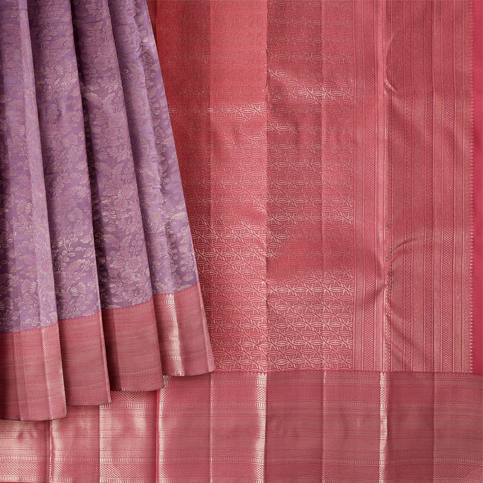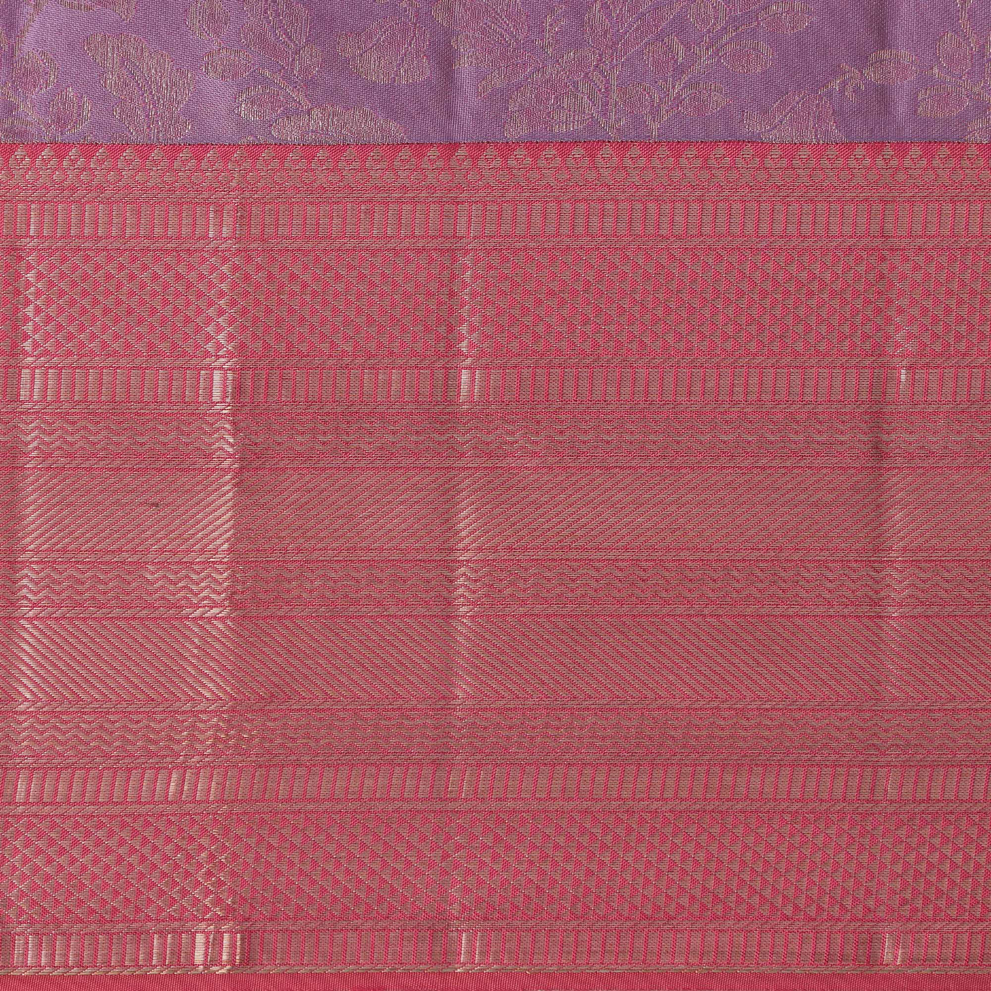 Lavender and Coral Pure Silk Kanjeevaram Saree with Handwoven Ornamental Motif Panel and Traditional Contrast Border, 5.5 Meters with Blouse Piece, Originating from India-D22715