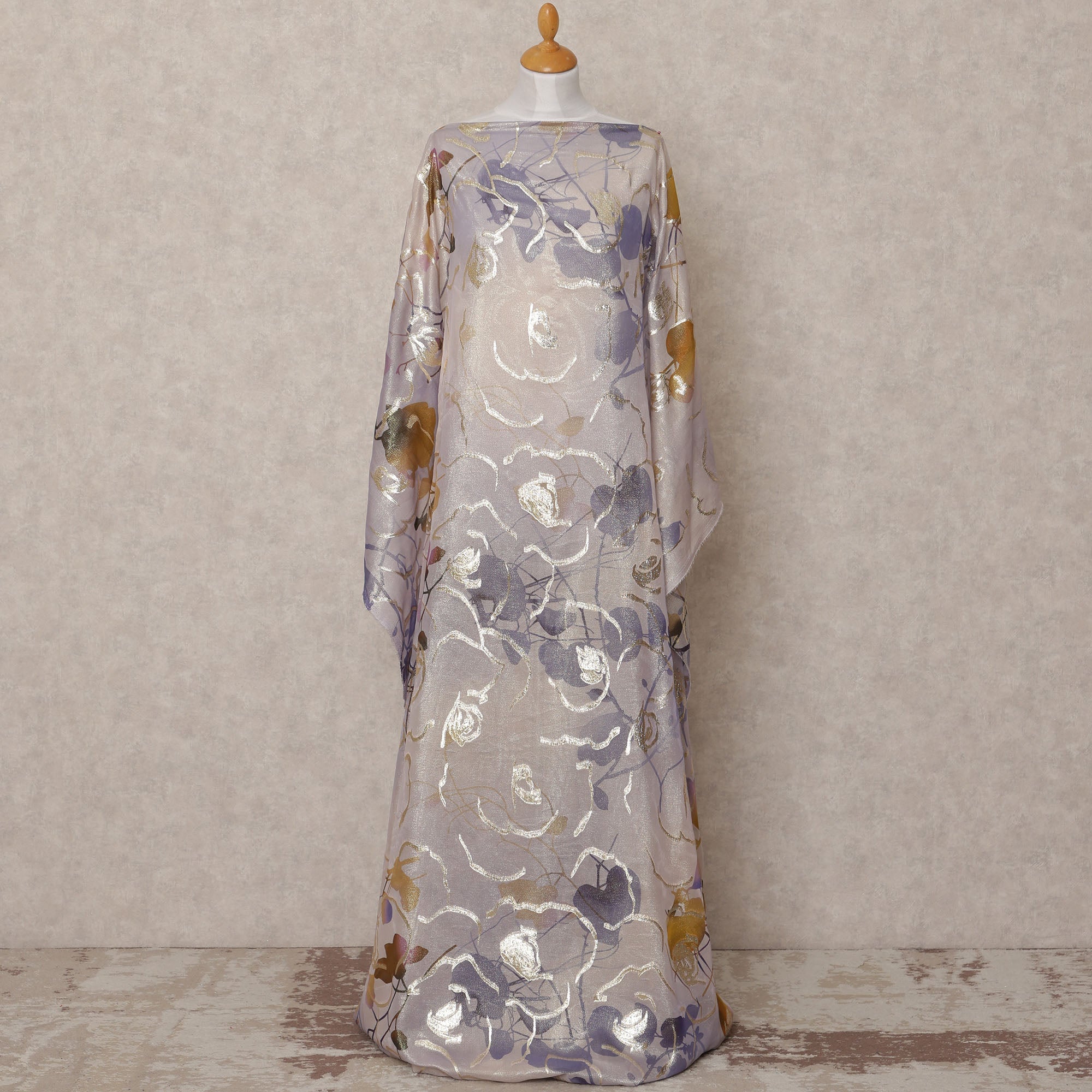 Lavender and Gold Floral Metallic Somali Silk Chiffon Dirac Fabric – 3.5 Meters, Width 140 cm, Made in South Korea-D24737