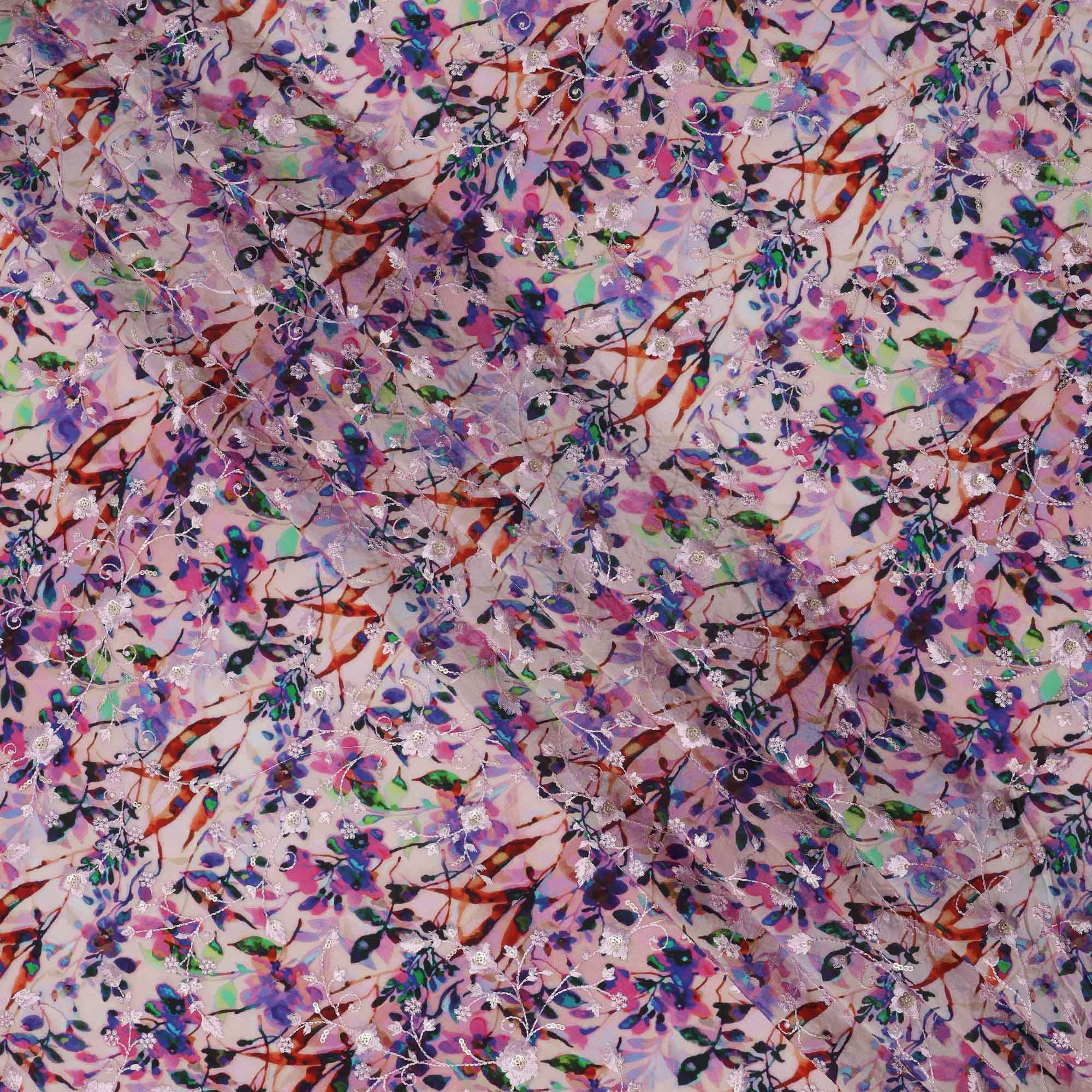 Lavender and Multicolor Floral Branch Digital Print Viscose Crepe Fabric, 110 Cms Width, Made in India-D23623
