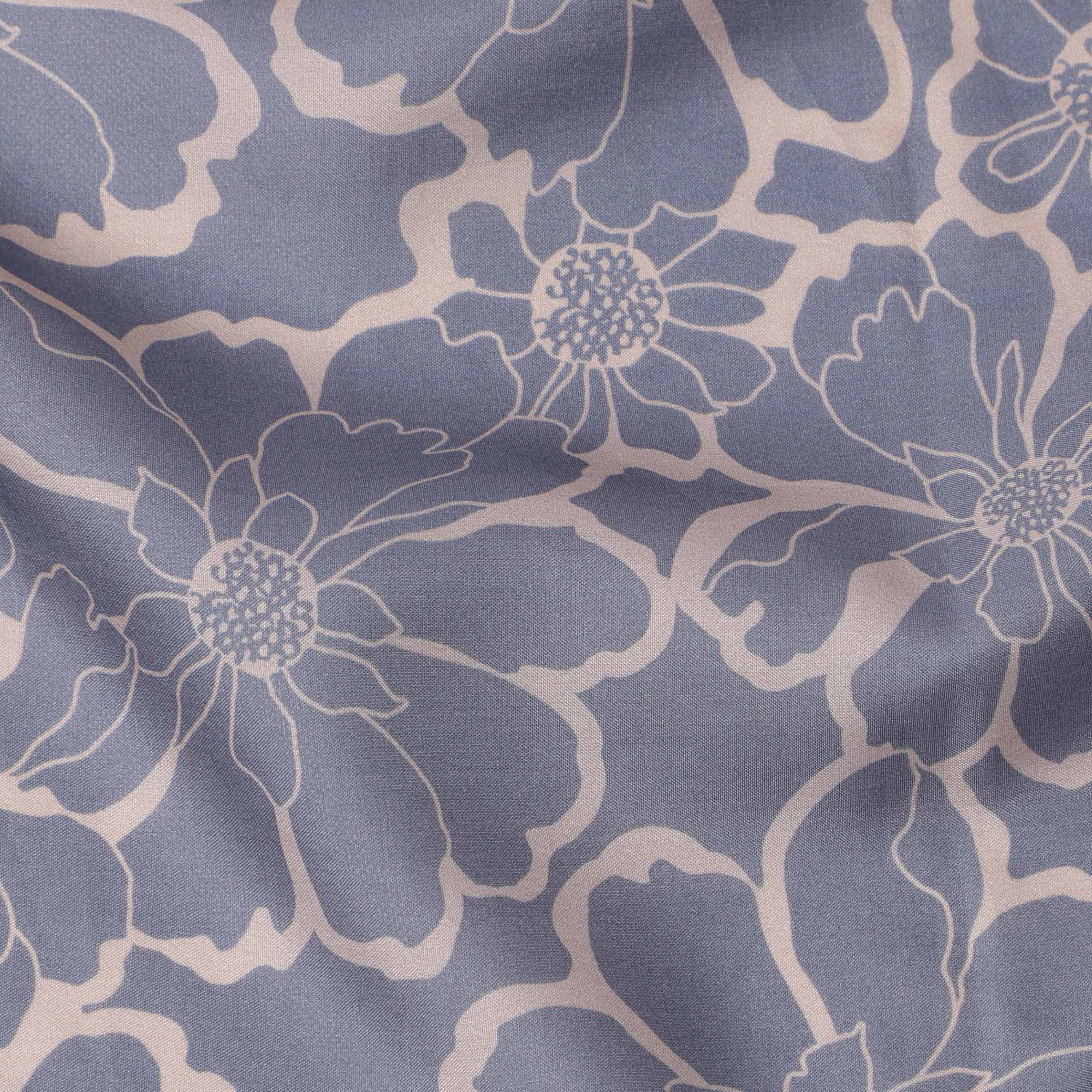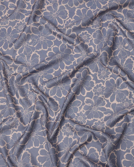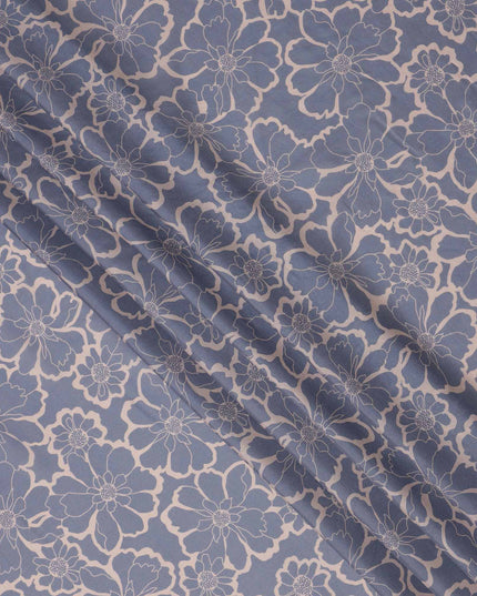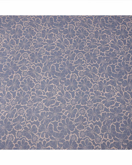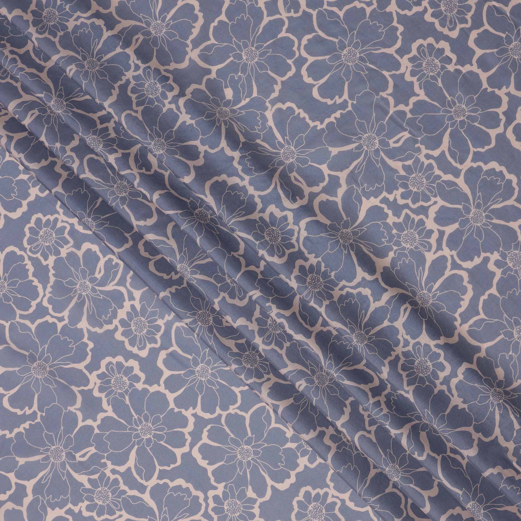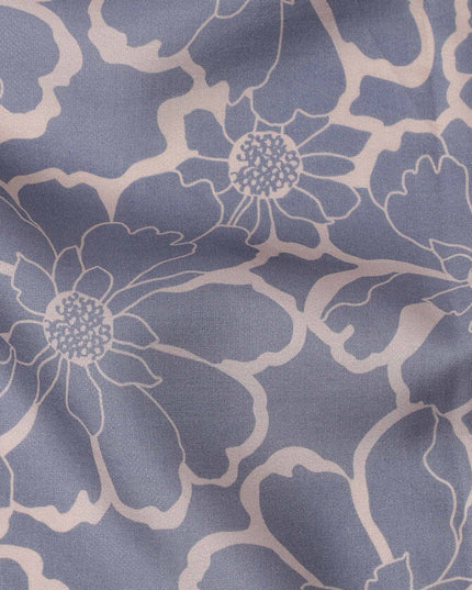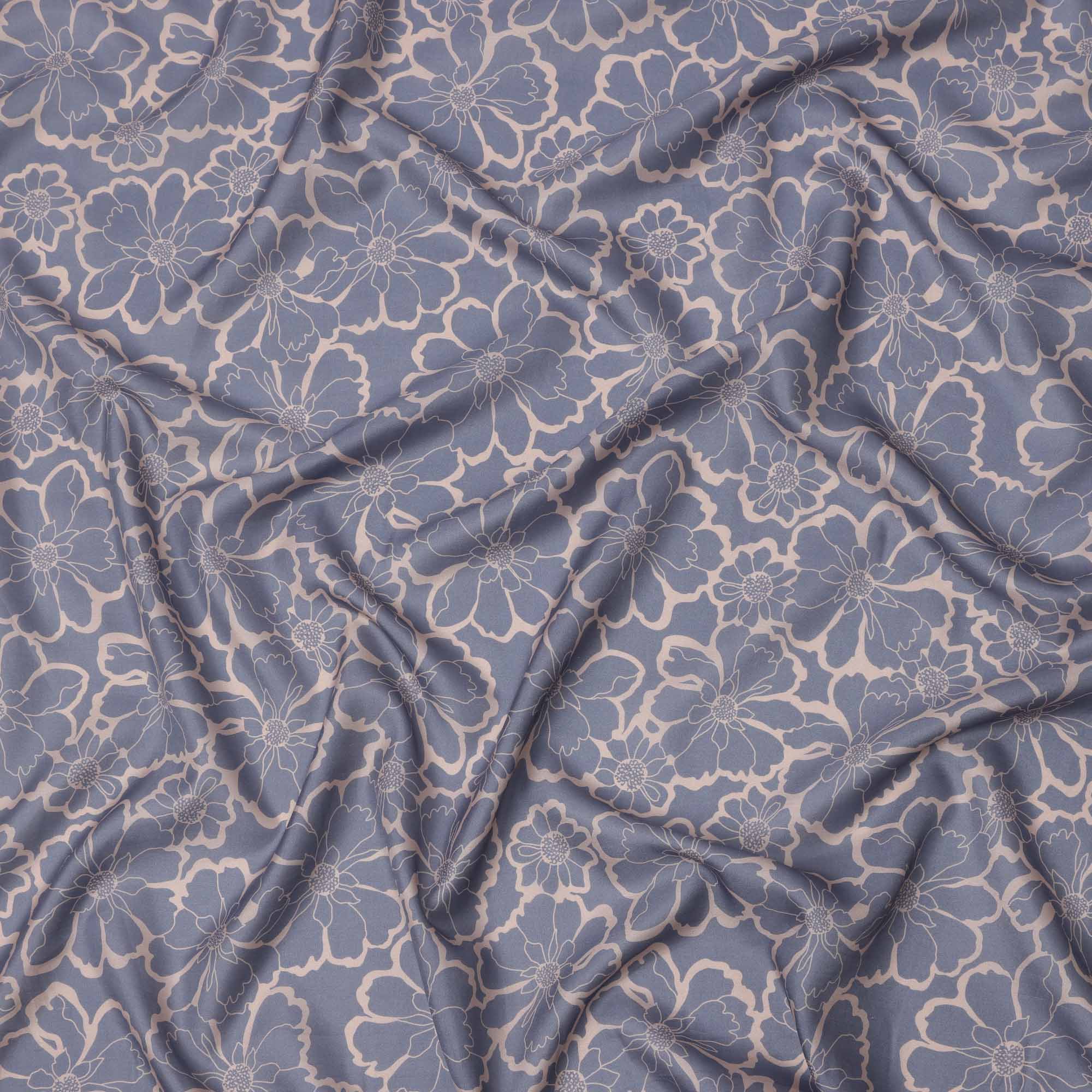 Lavender Blue and Beige Bold Floral Outline Print Viscose Crepe Fabric, 110 Cms Width, Made in India-D23599