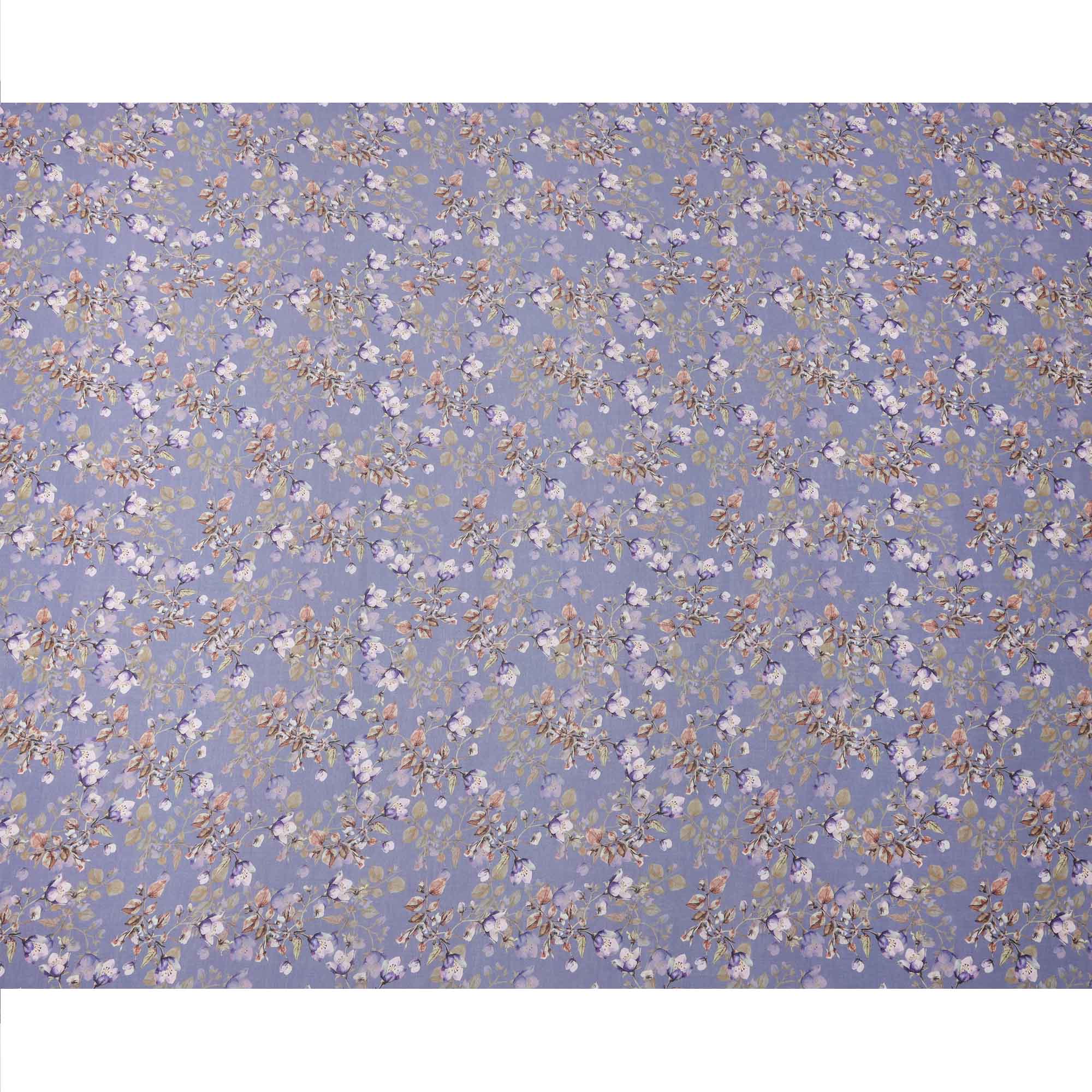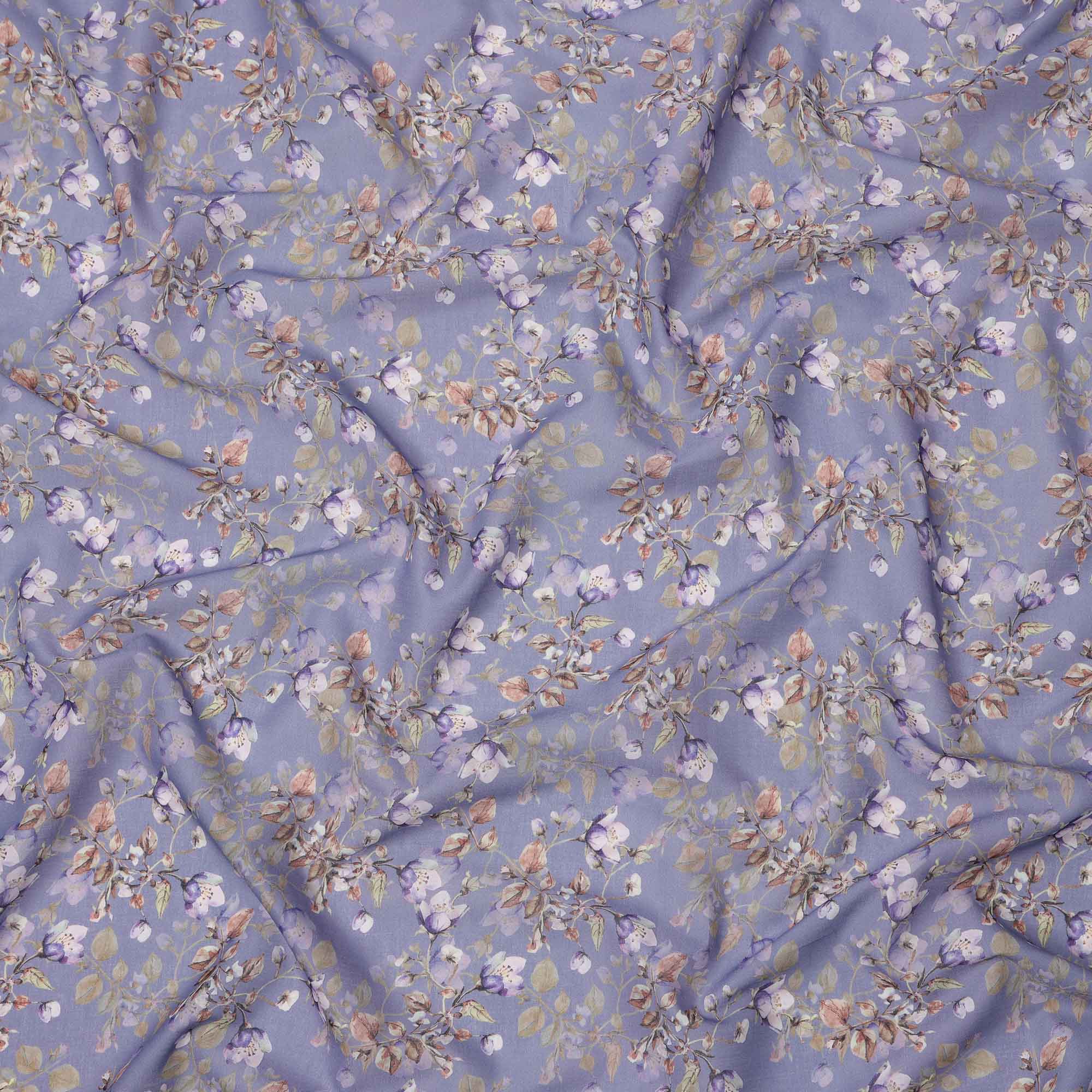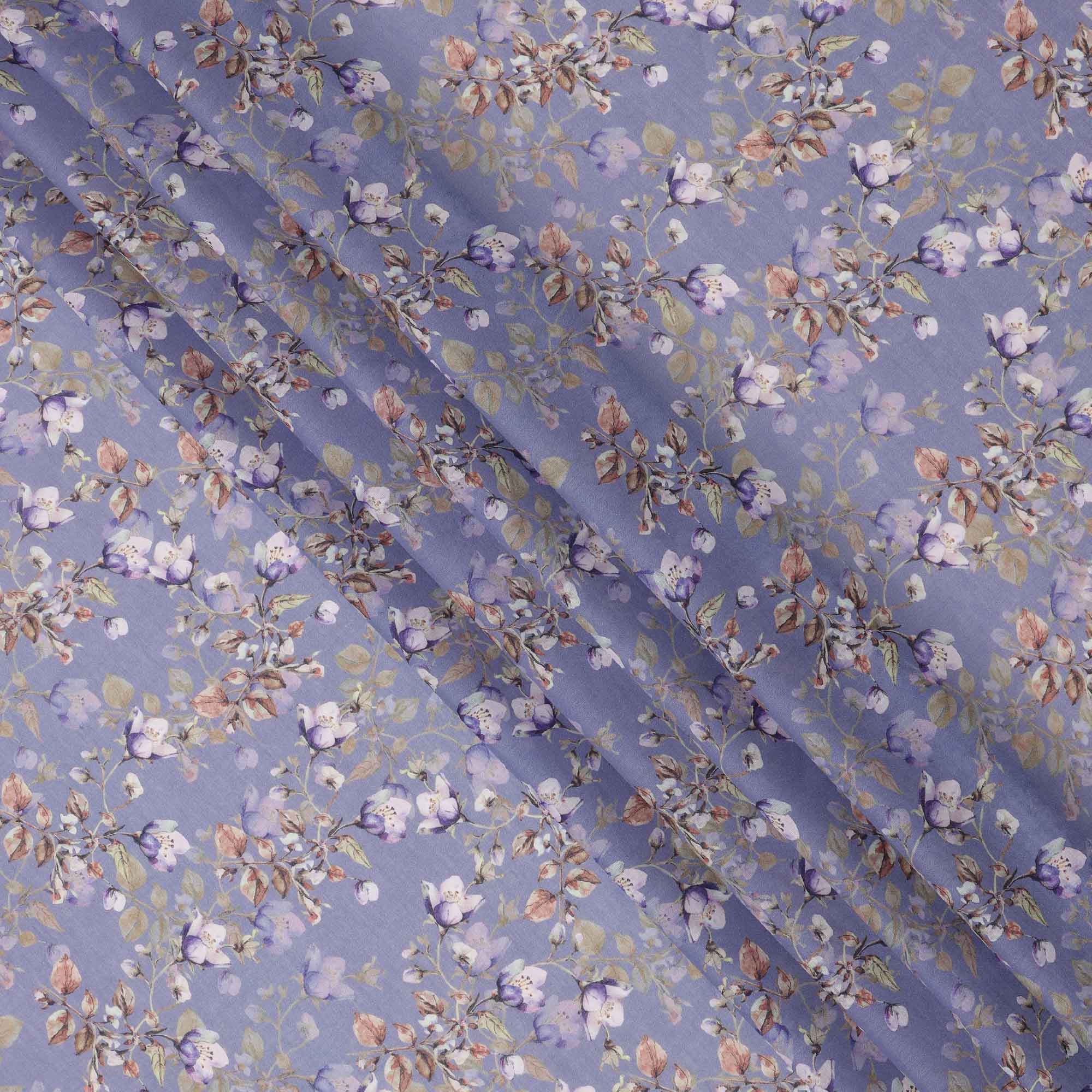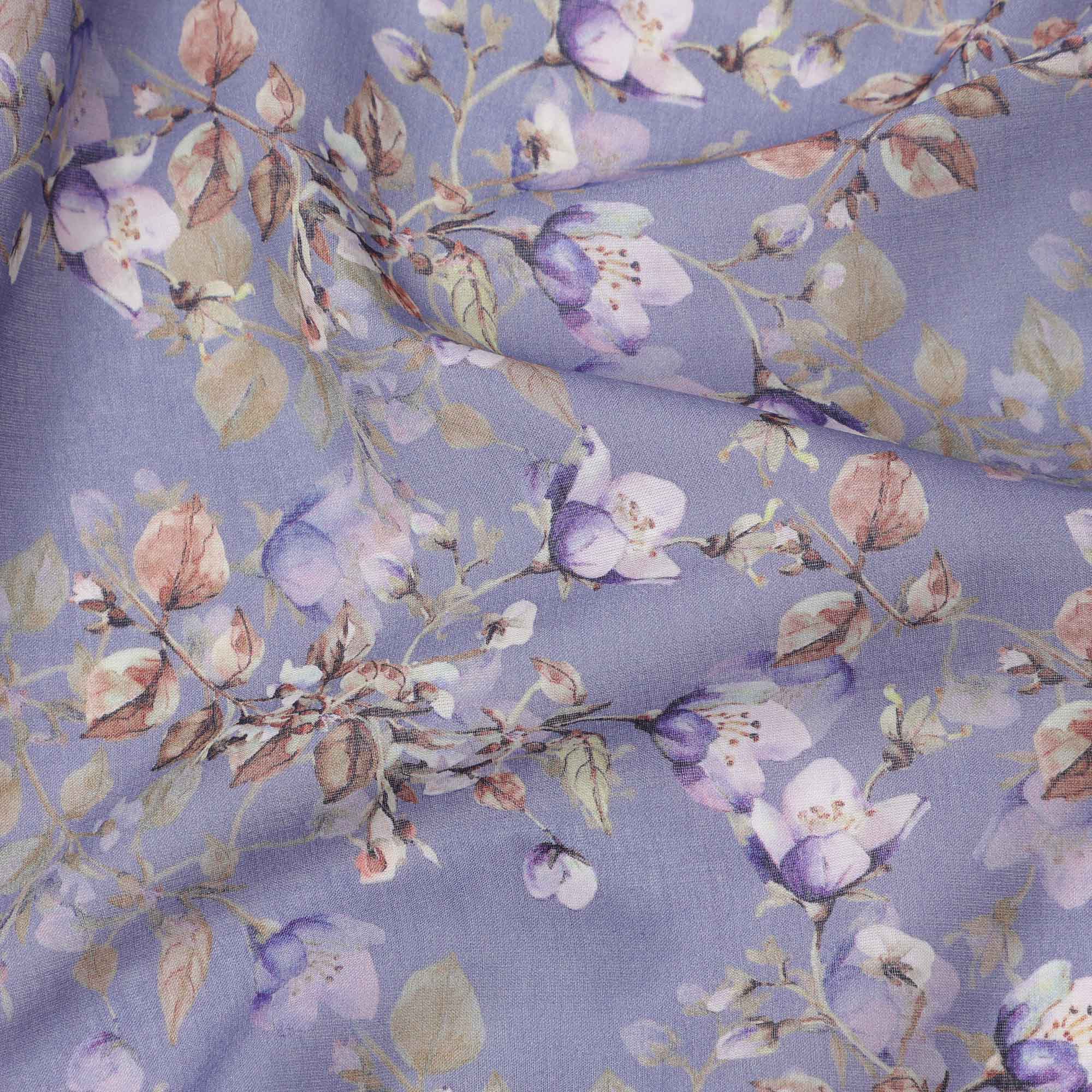 Lavender Blue Base Soft Lilac & Beige Floral Digital Printed Cotton Lawn Fabric, 110 Cms Width, Made in India-D23640