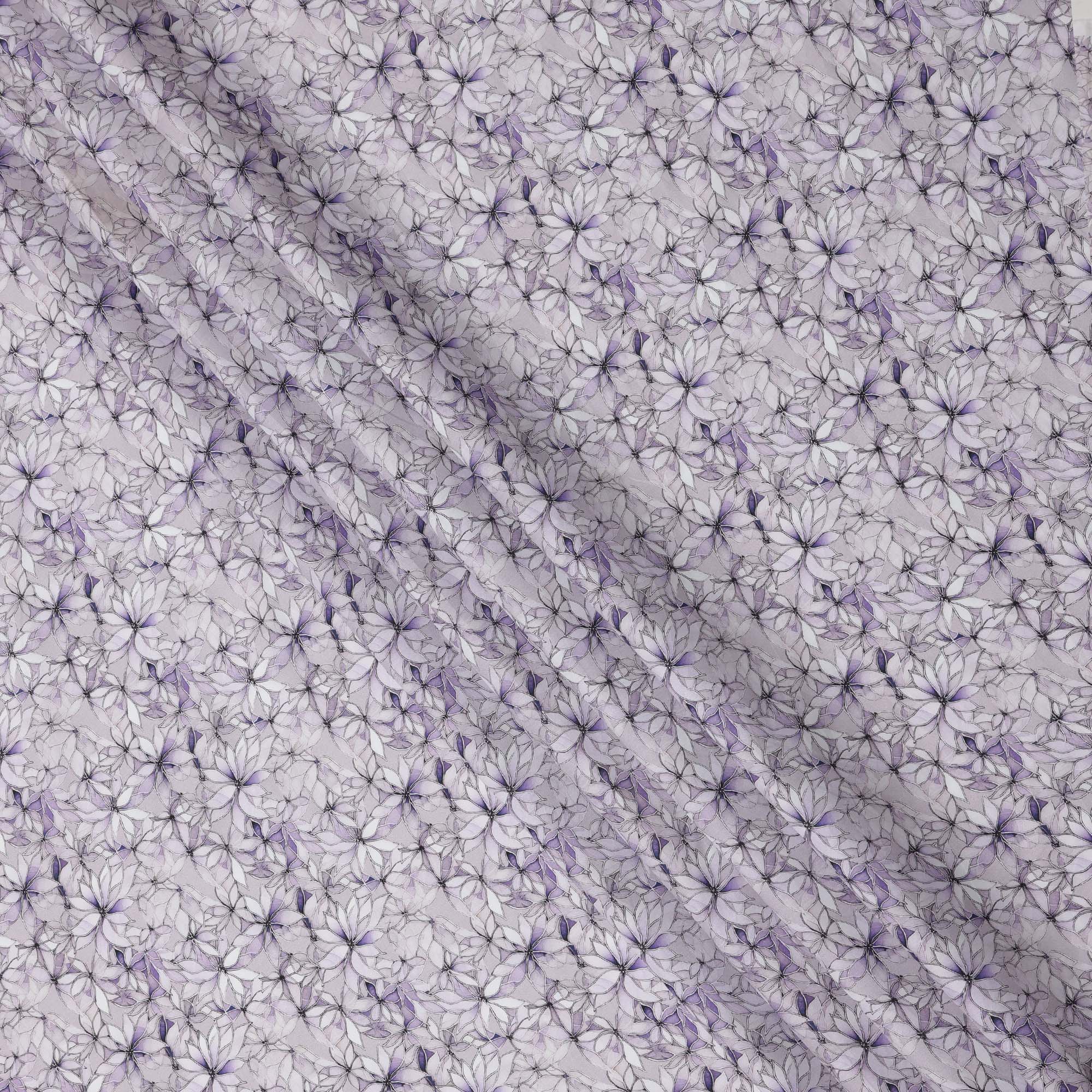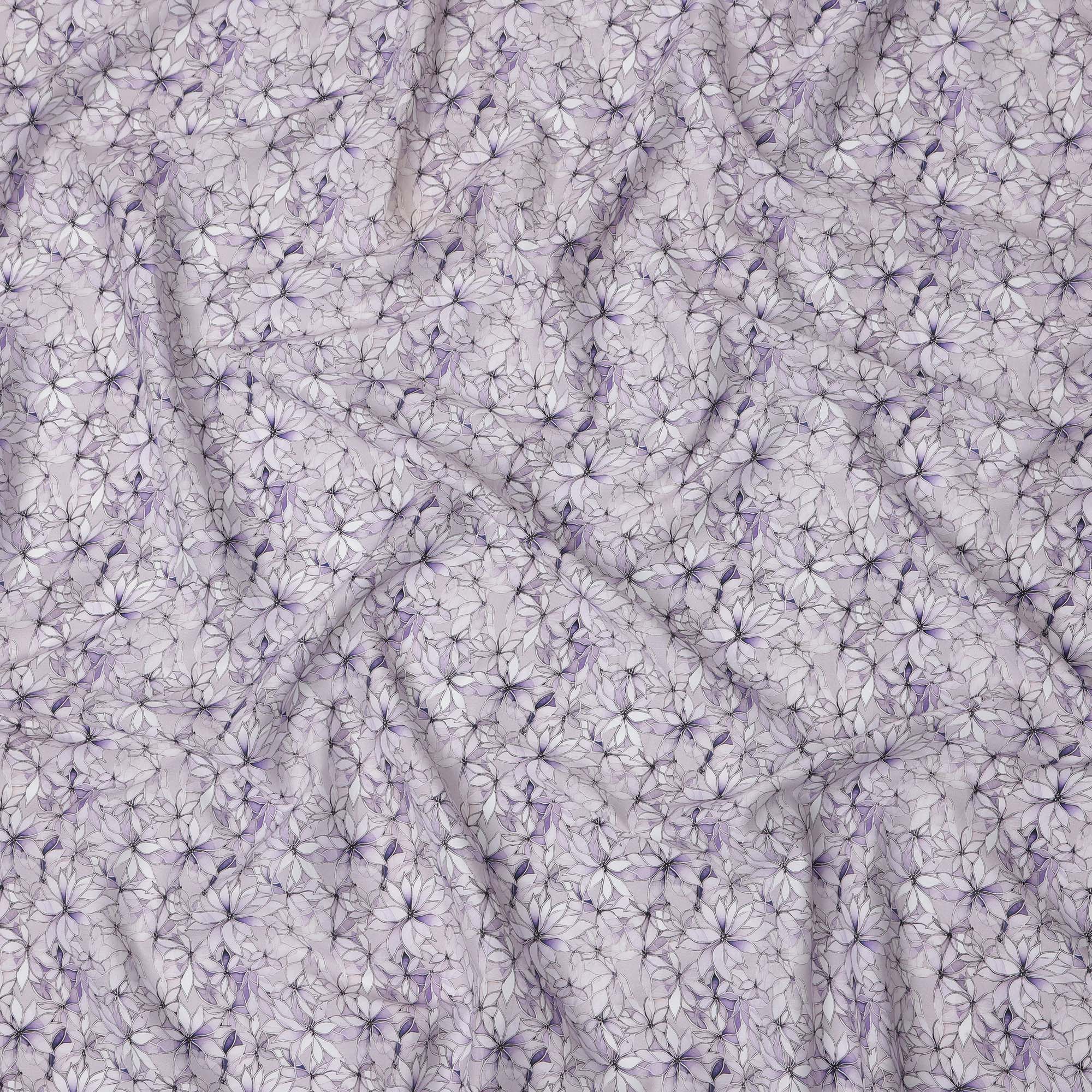 Lavender Floral Outline Print Cotton Lawn Fabric with Watercolor Effect, 110 Cms Width, Made in India-D24316