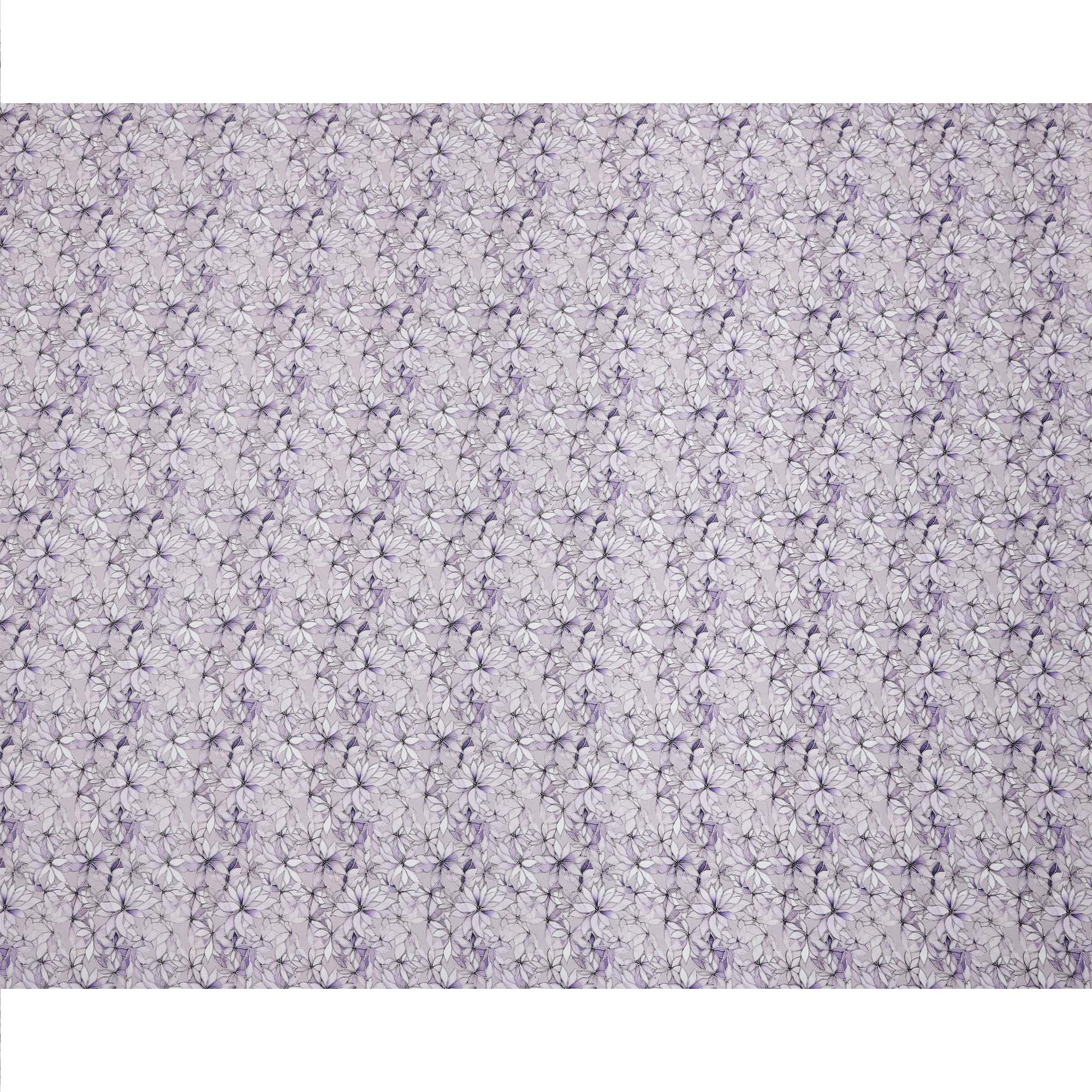 Lavender base with intricate floral outline print in violet, white, and lilac tones