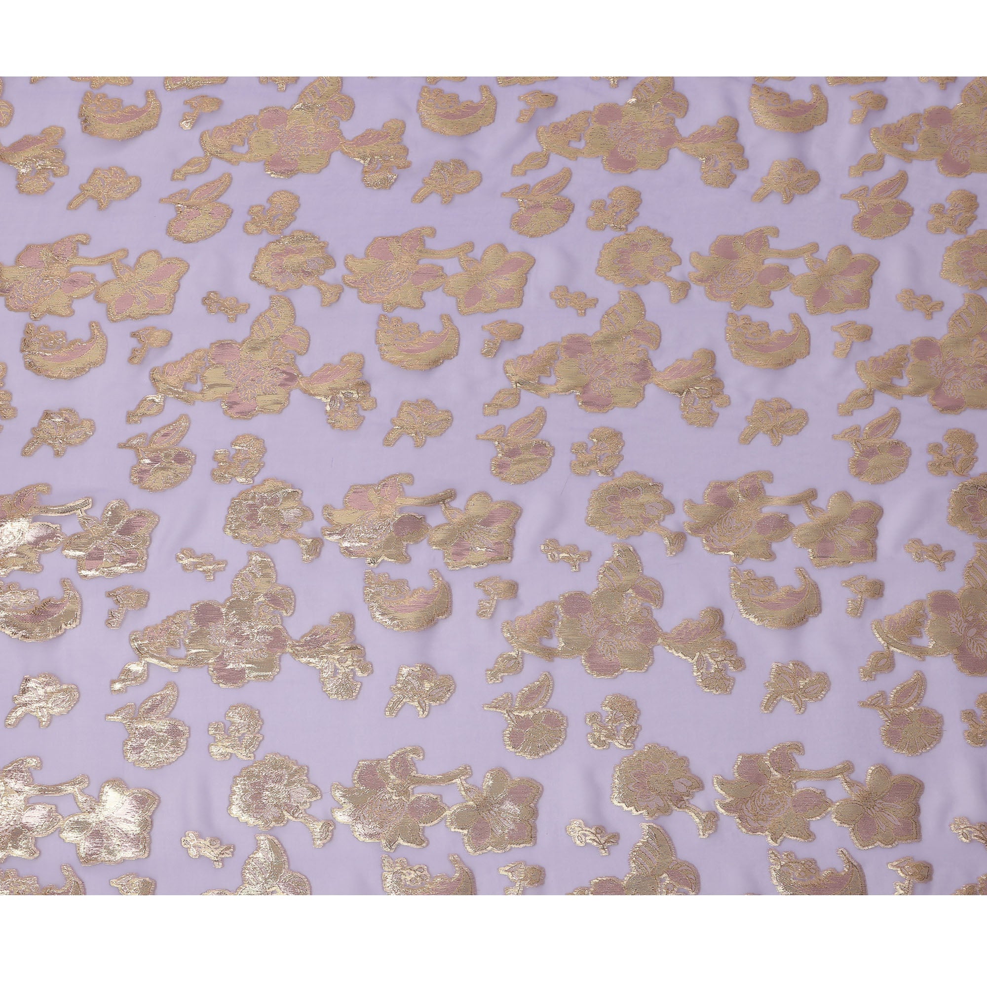 Lavender Floral Pattern Silk Chiffon Fabric with Metallic Lurex, 110 Cms, South Korea-D25503