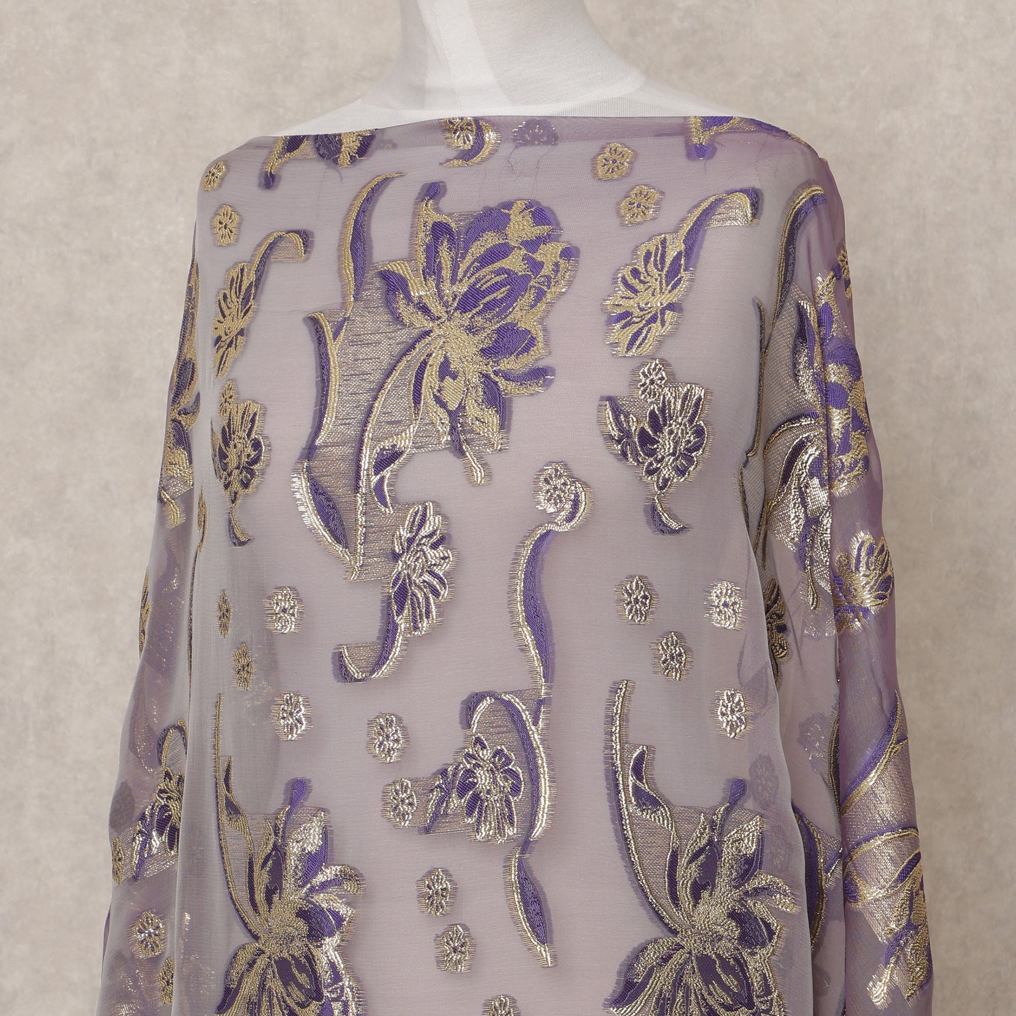 Silver and purple metallic lurex floral motifs for an exquisite finish