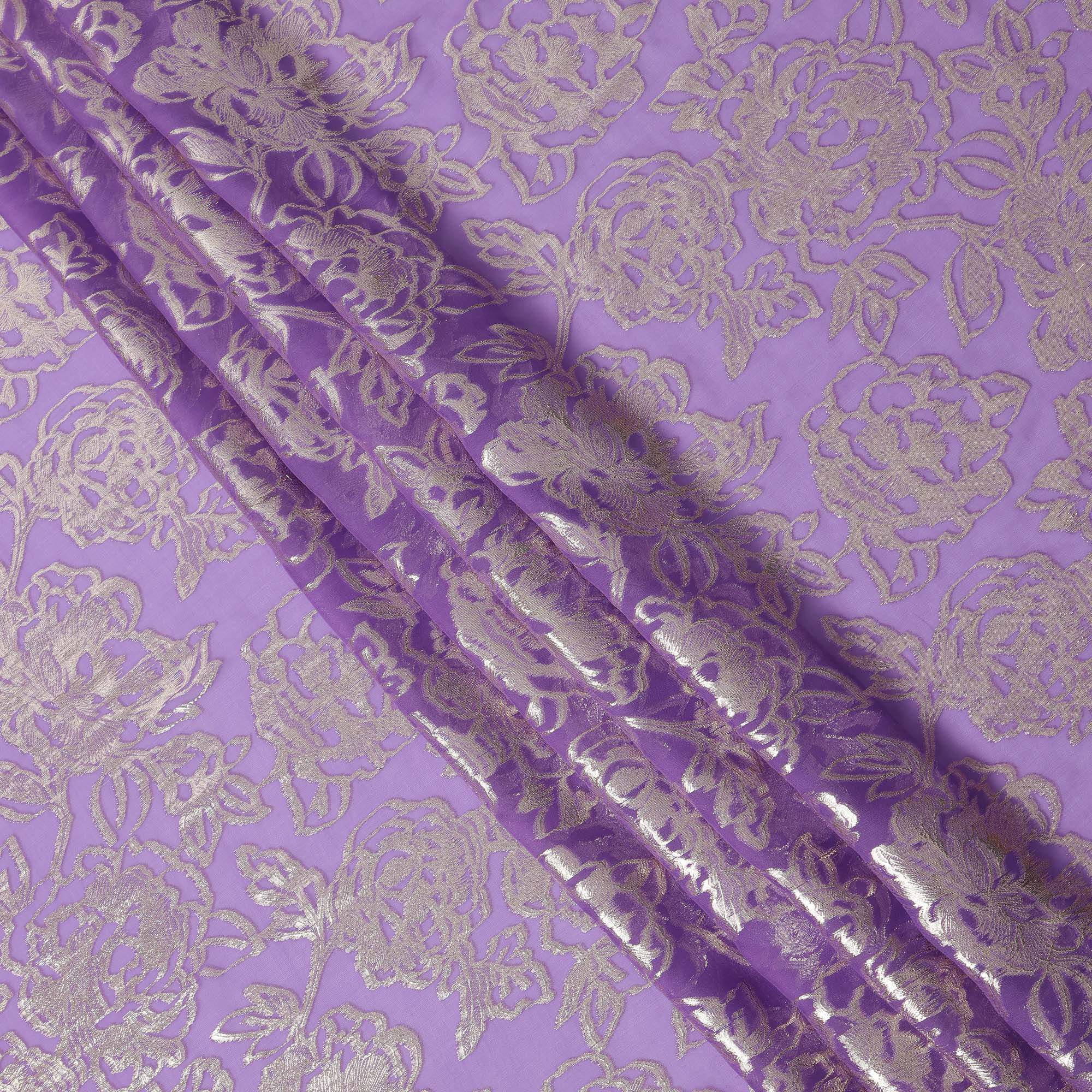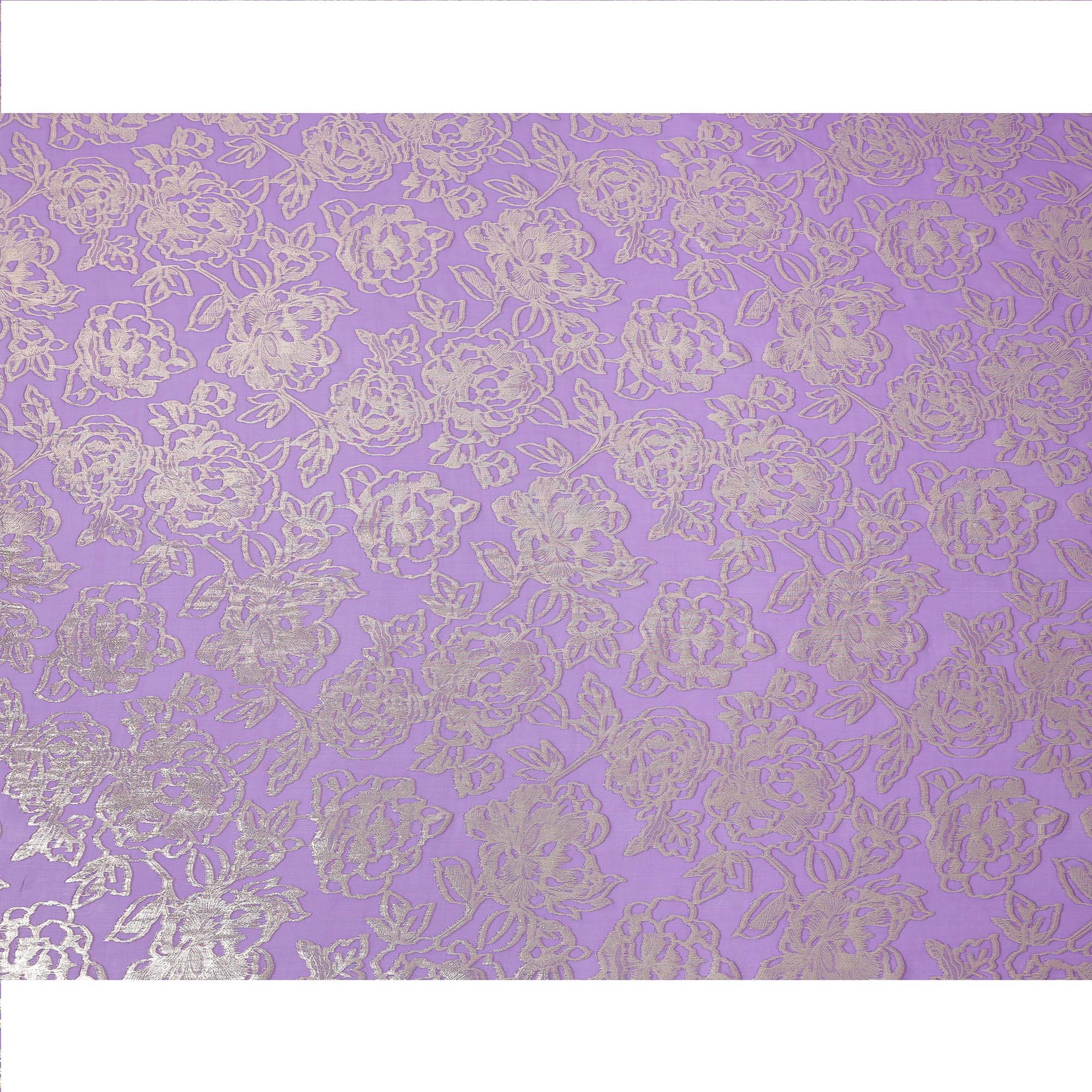 Lavender Gold Metallic Floral Design Premium Silk Chiffon Fabric, 110 Cms Width, Made in South Korea-D25966