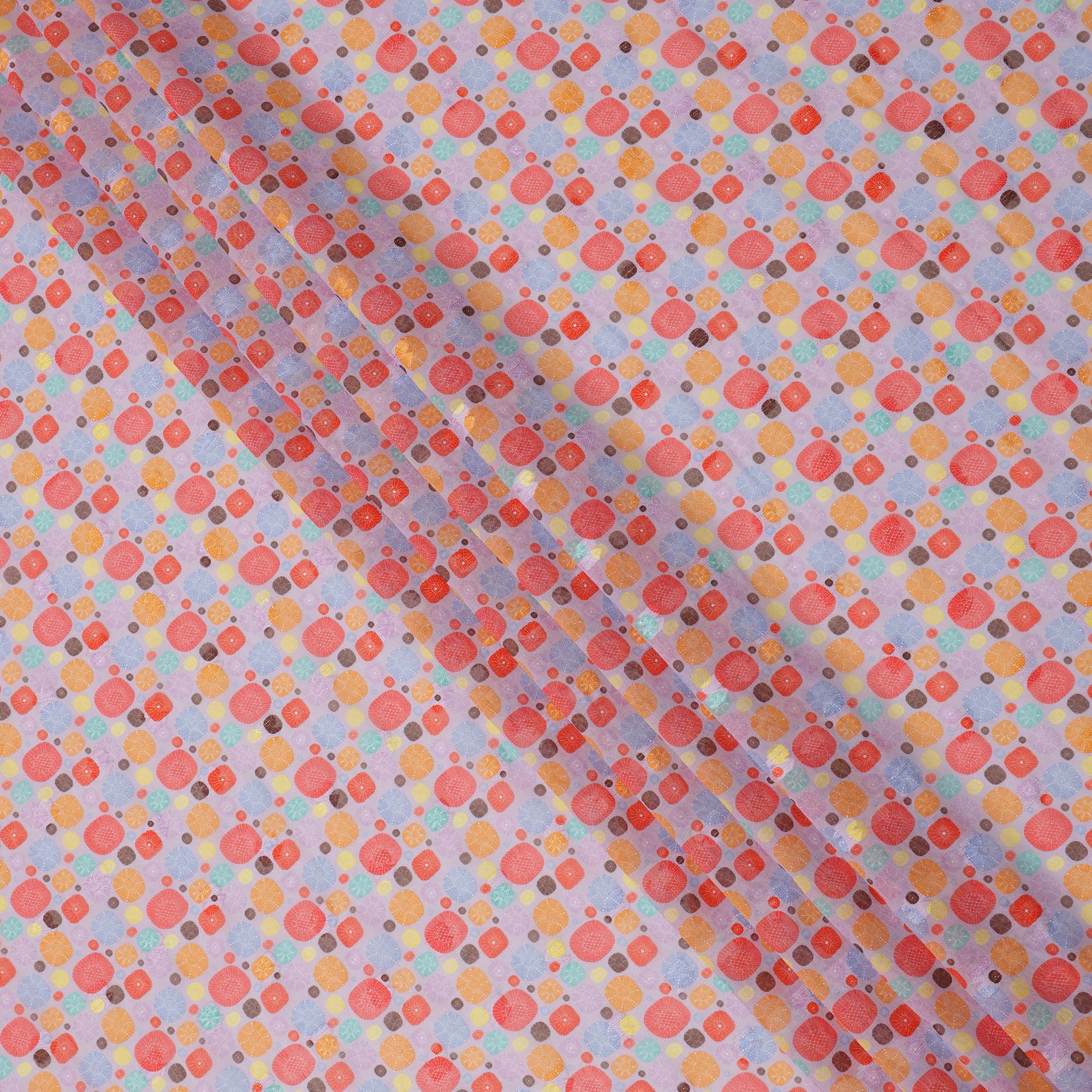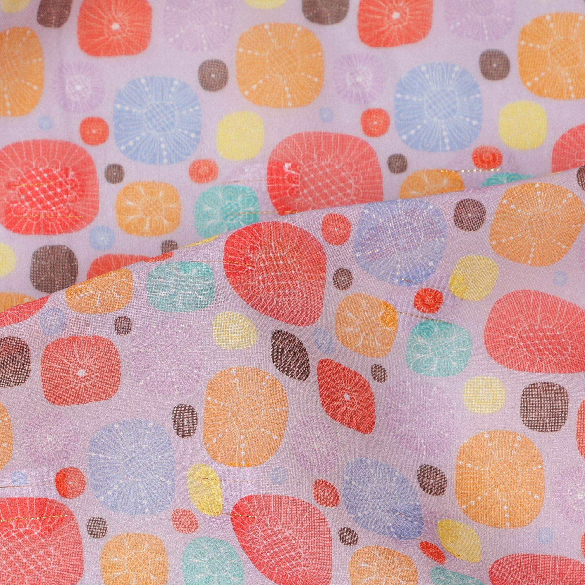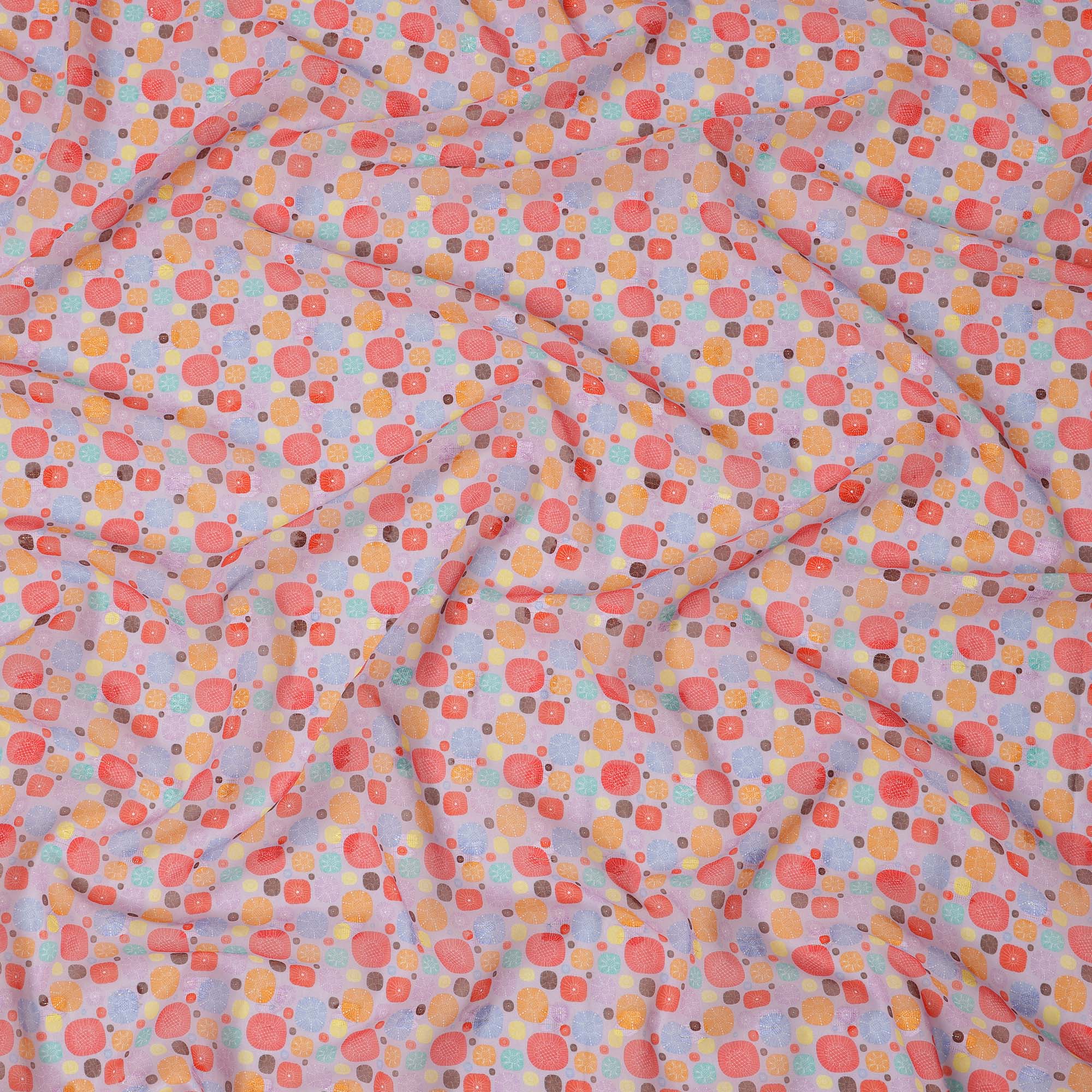 Lavender Multicolor Abstract Dot Print Cotton Voile Fabric with Orange, Red, and Yellow Accents, 140 Cms Width, Made in India-D24327