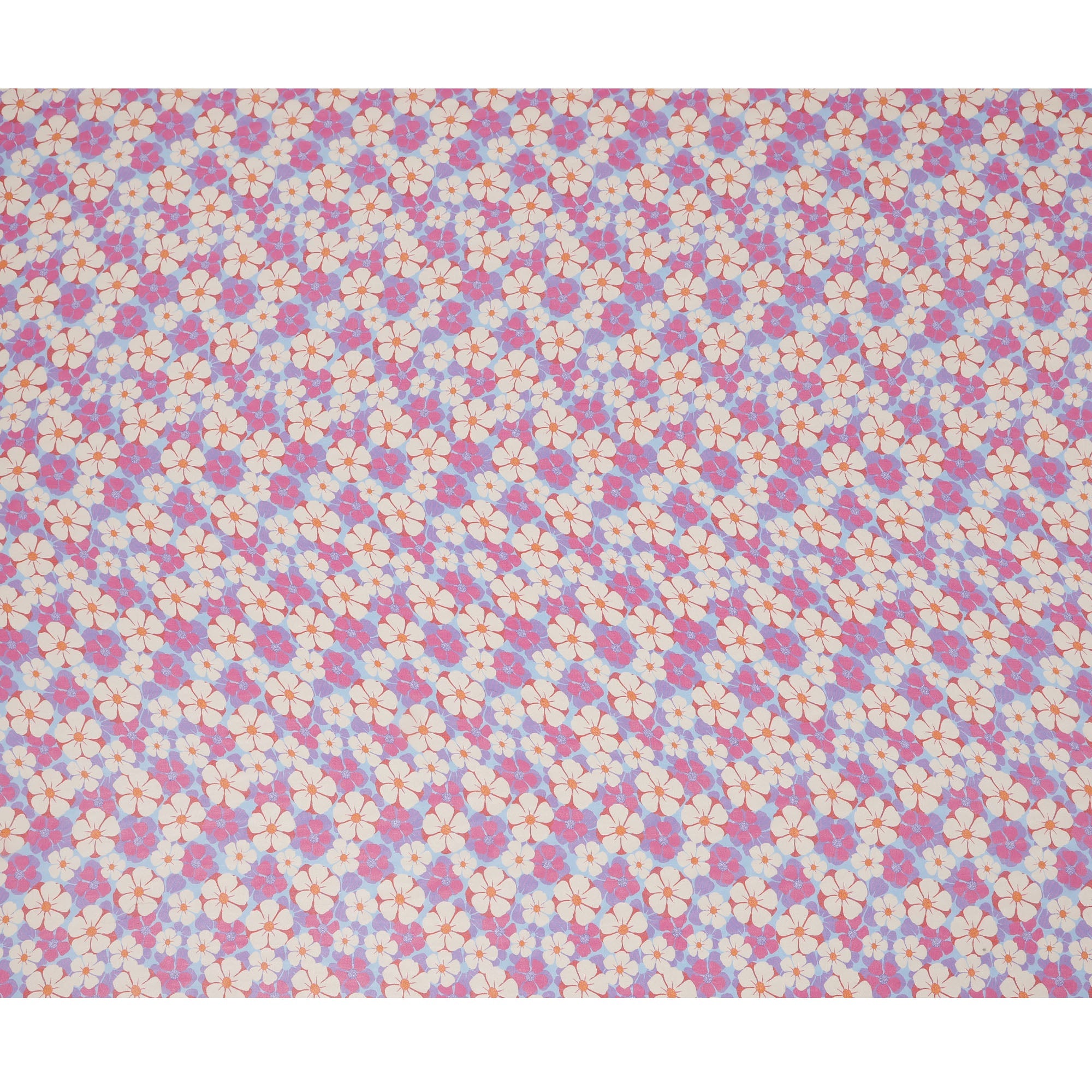Lavender pink base with bold floral print in off-white, violet, and red-orange