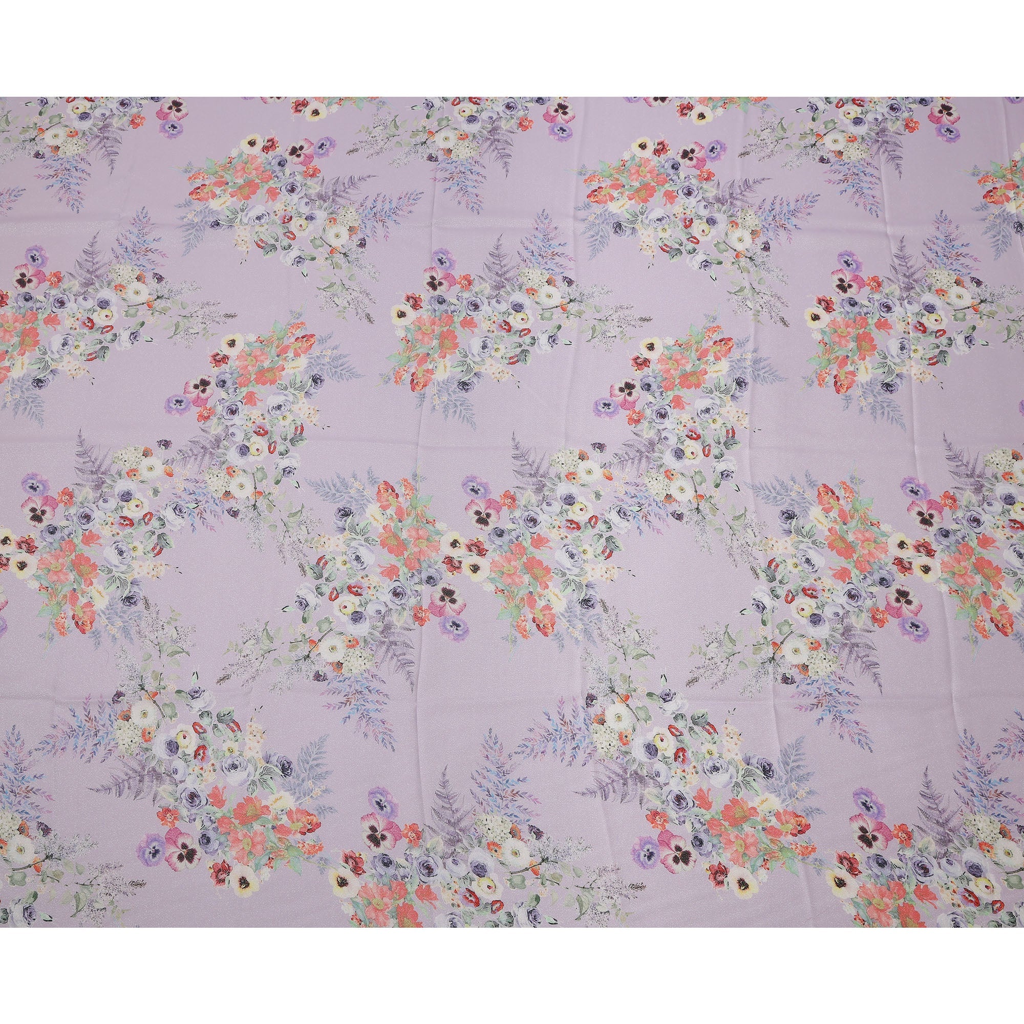 Lavender Purple Multi Floral Printed Pure Silk Satin Fabric 140 Cms Width Made in South Korea-D24918