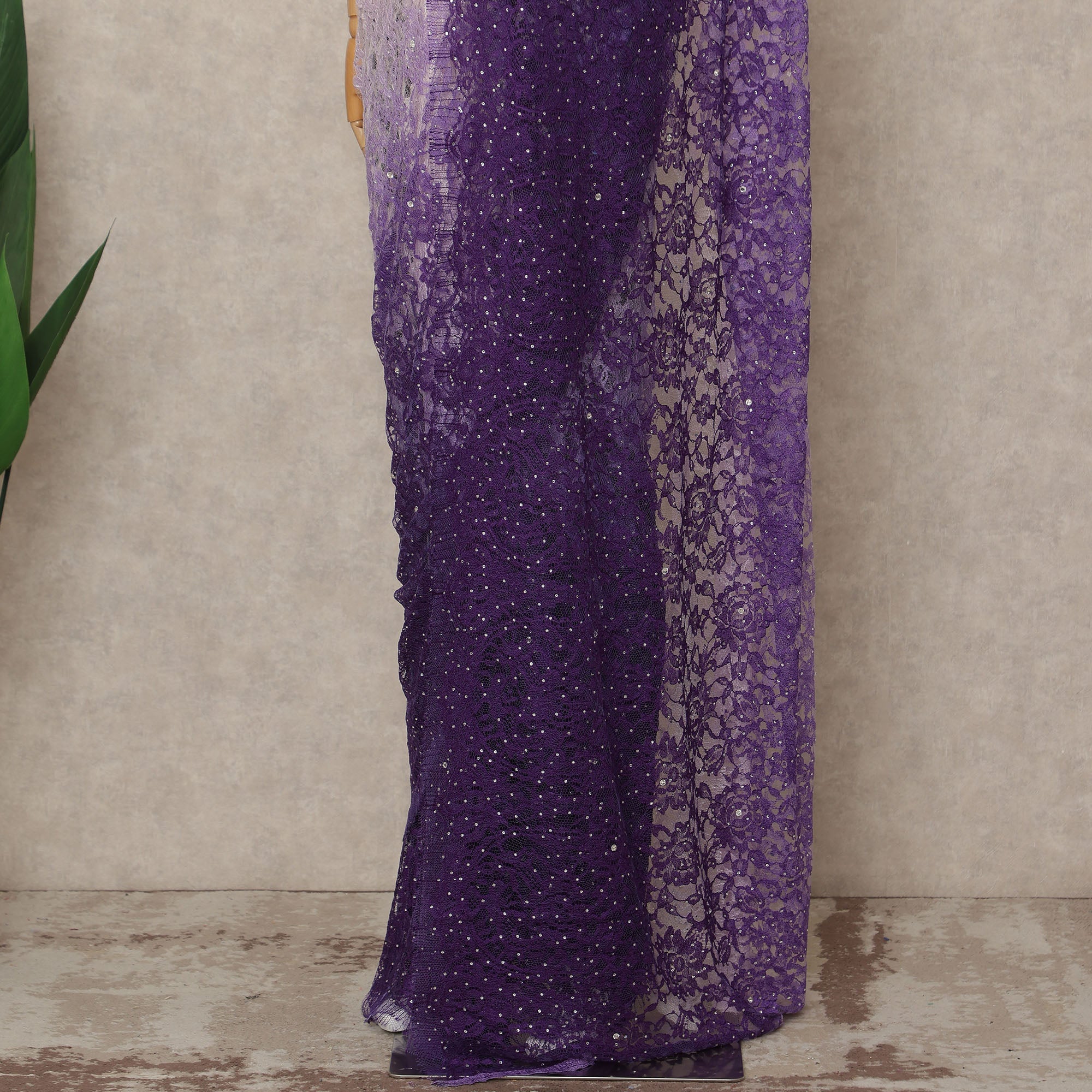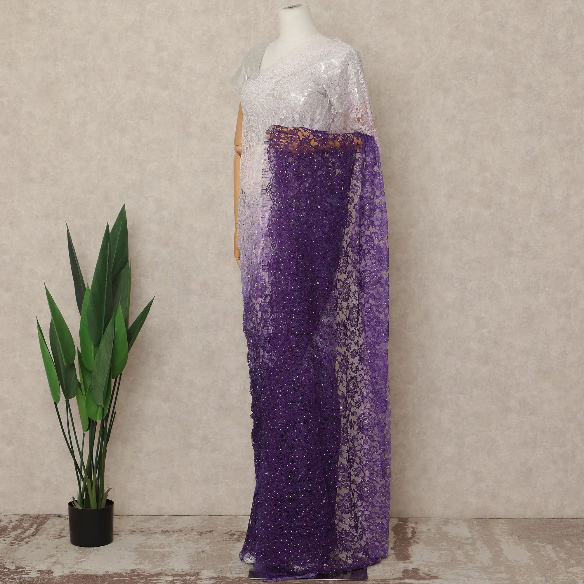 Lavender Purple Premium French Ombre Chantilly Saree Lace With Stone Work 5.5 Mtrs Length 110 Cms Width Designer Net Fabric Made In France, Blouse Not Included-D28101