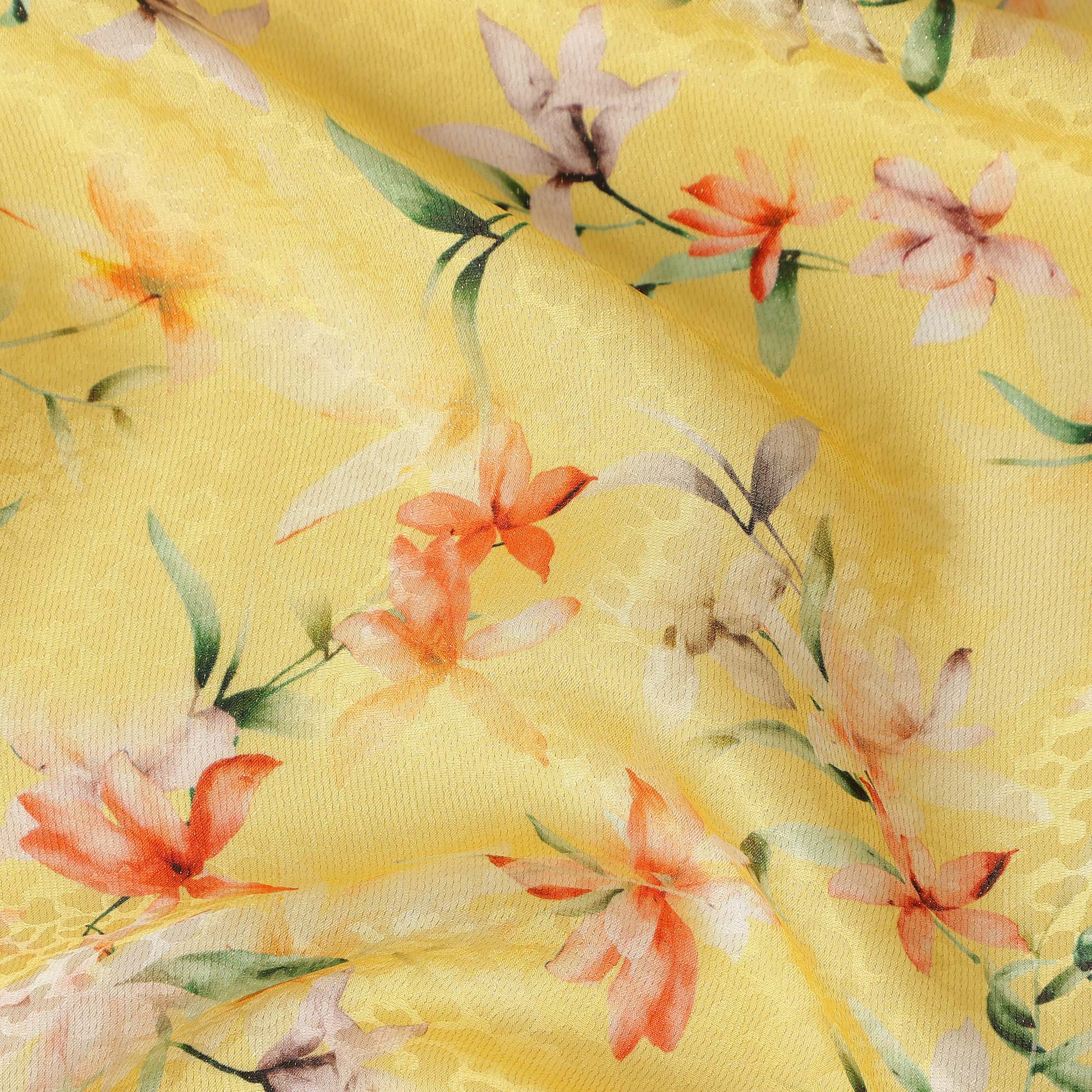 Lemon yellow base enhanced with multicolor floral nature printed design