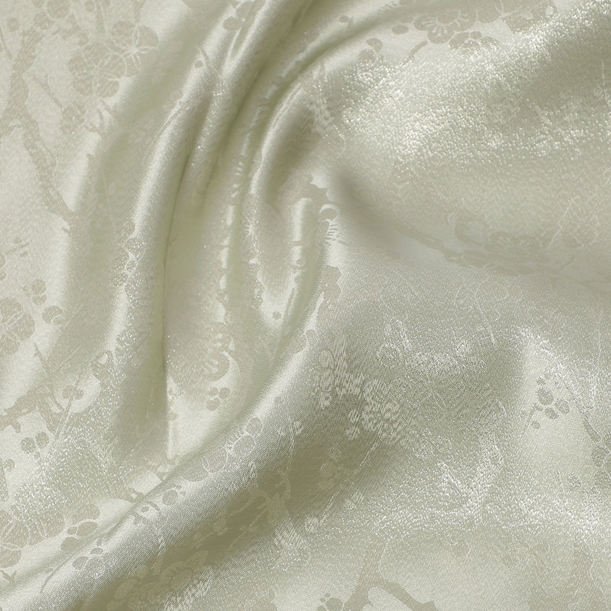 Light Beige Floral Self-Design Pure Silk Satin Fabric 140 Cms Width Made in China-D24890