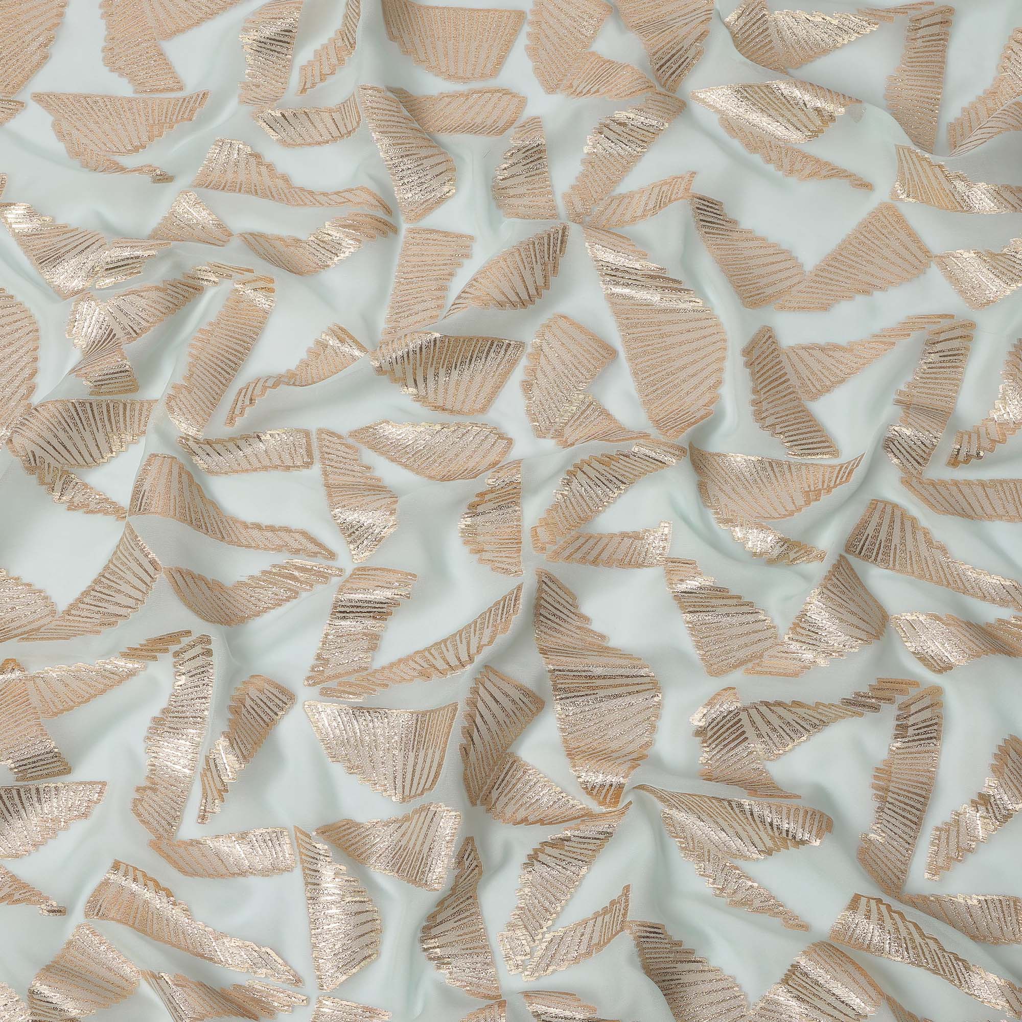 Light Blue Abstract Pattern Silk Chiffon Fabric with Metallic Lurex, 110 Cms, South Korea-D25507