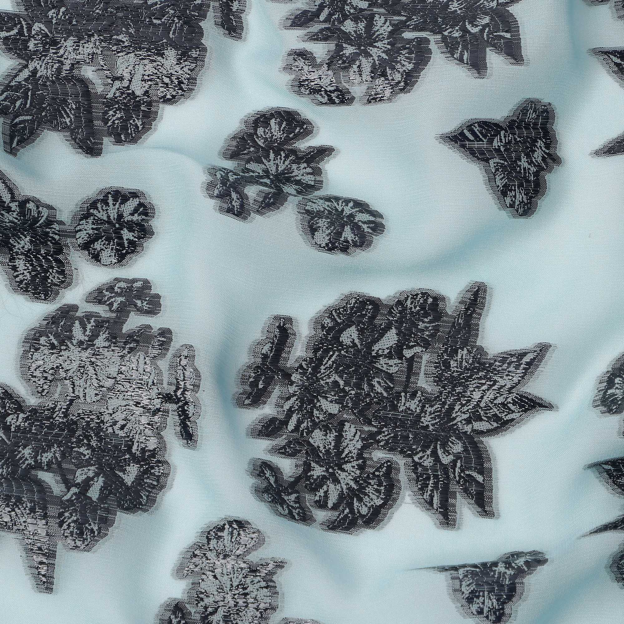 Light Blue Floral Pattern Silk Chiffon Fabric with Metallic Lurex, 110 Cms, South Korea-D25499