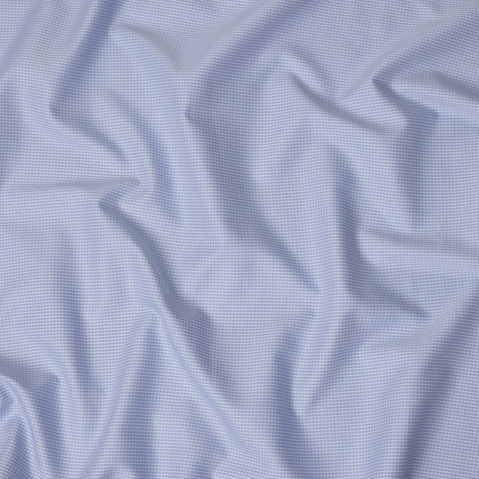 This light blue premium Italian 100% cotton shirting fabric features a refined fine striped weave that creates a subtle textured pattern with a sophisticated visual appeal. Woven in Italy from superior long staple cotton fibers, it offers exceptional softness, strength, and breathability for lasting comfort throughout the day. The elegant light blue tone combined with the delicate stripe effect makes it perfect for business shirts, formal wear, and polished smart casual outfits. Its smooth yet structured finish supports sharp tailoring, crisp collars, and clean seams while maintaining natural flexibility. Offered as a 2.0 mtrs piece with a generous 150 cms width, this fabric provides ample material for custom shirt making with authentic Italian craftsmanship.