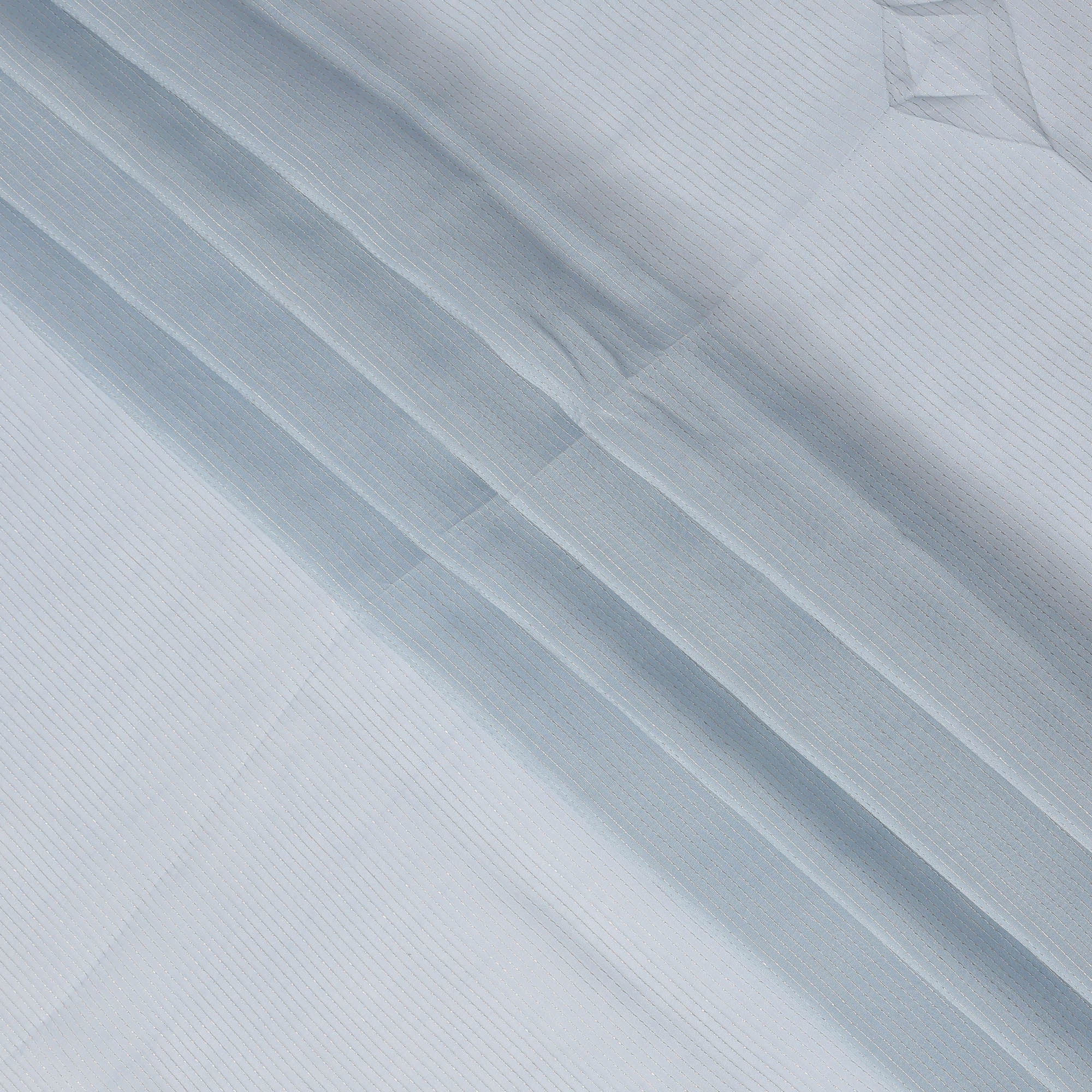Light Blue Striped Synthetic Organza Fabric, 110 Cms, India-D25471