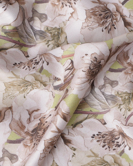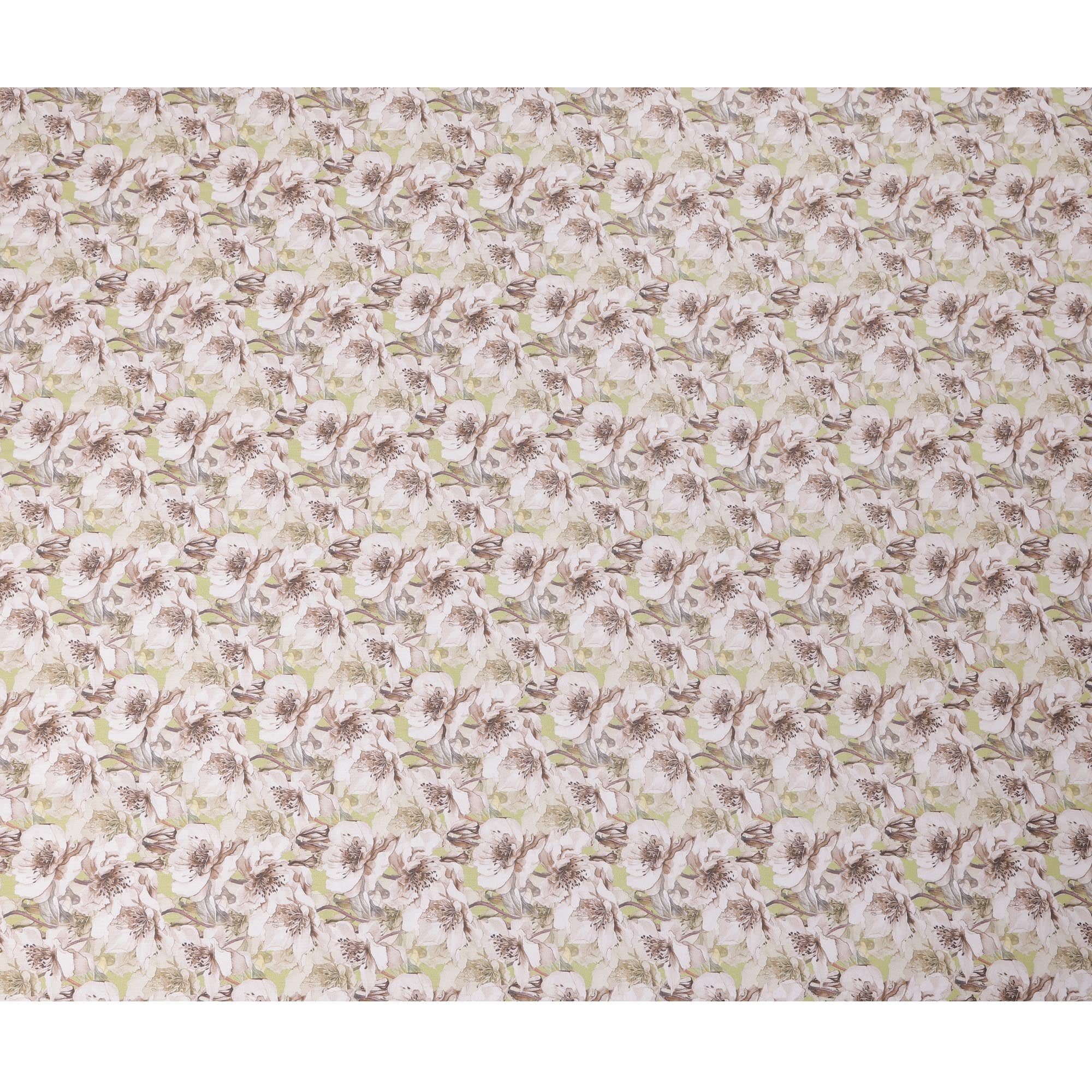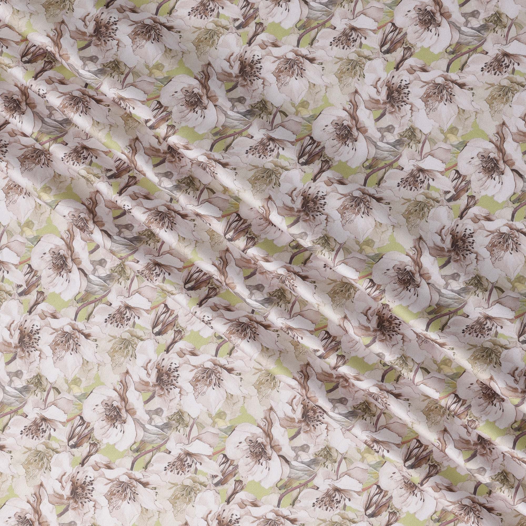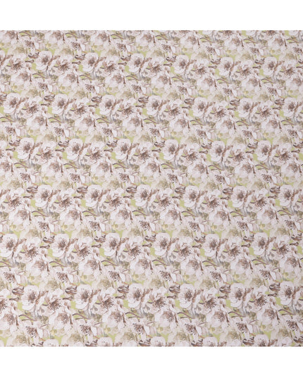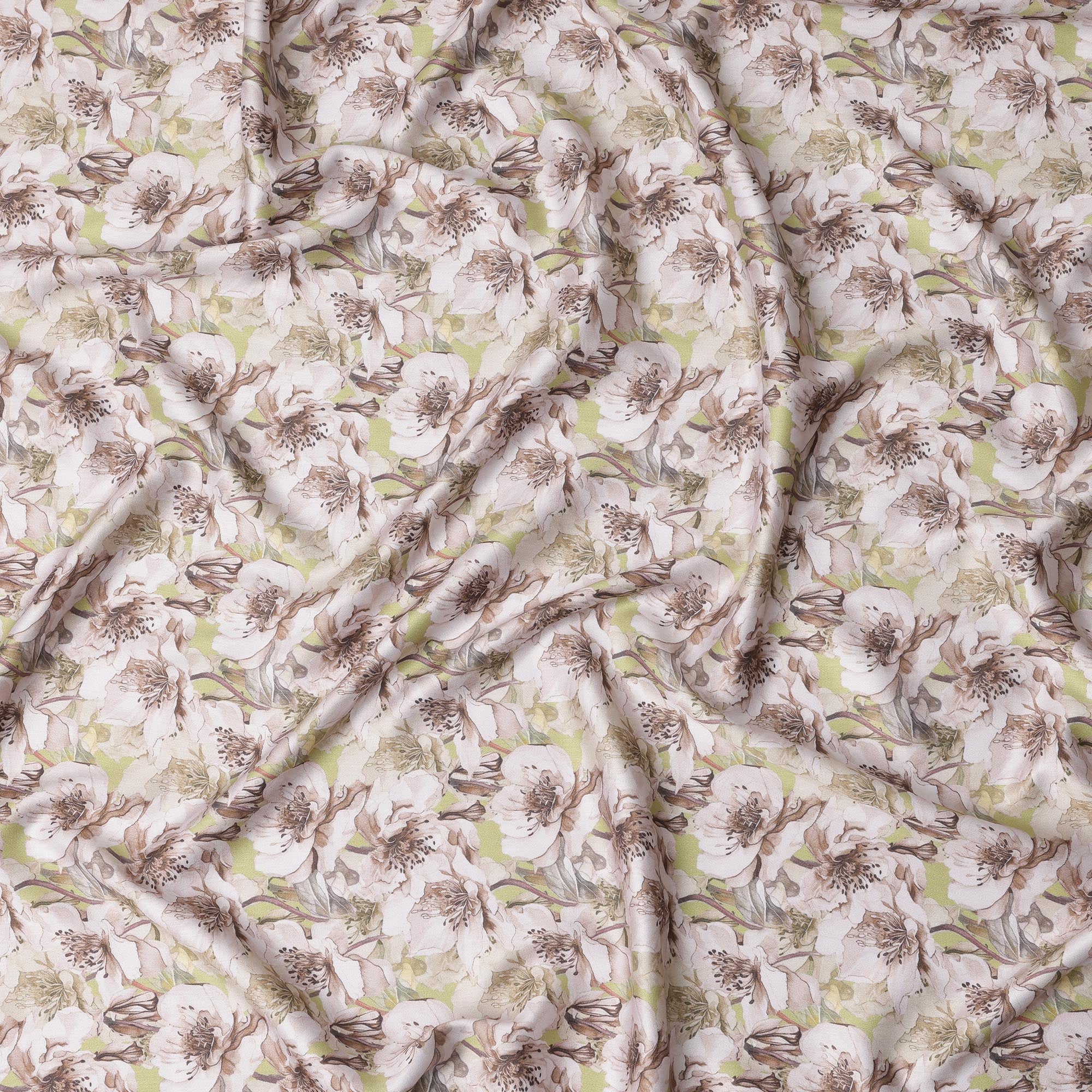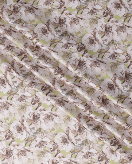 Light Green Cotton Satin Fabric with White & Beige Floral Print – 110 cm, Imported from India-D22298