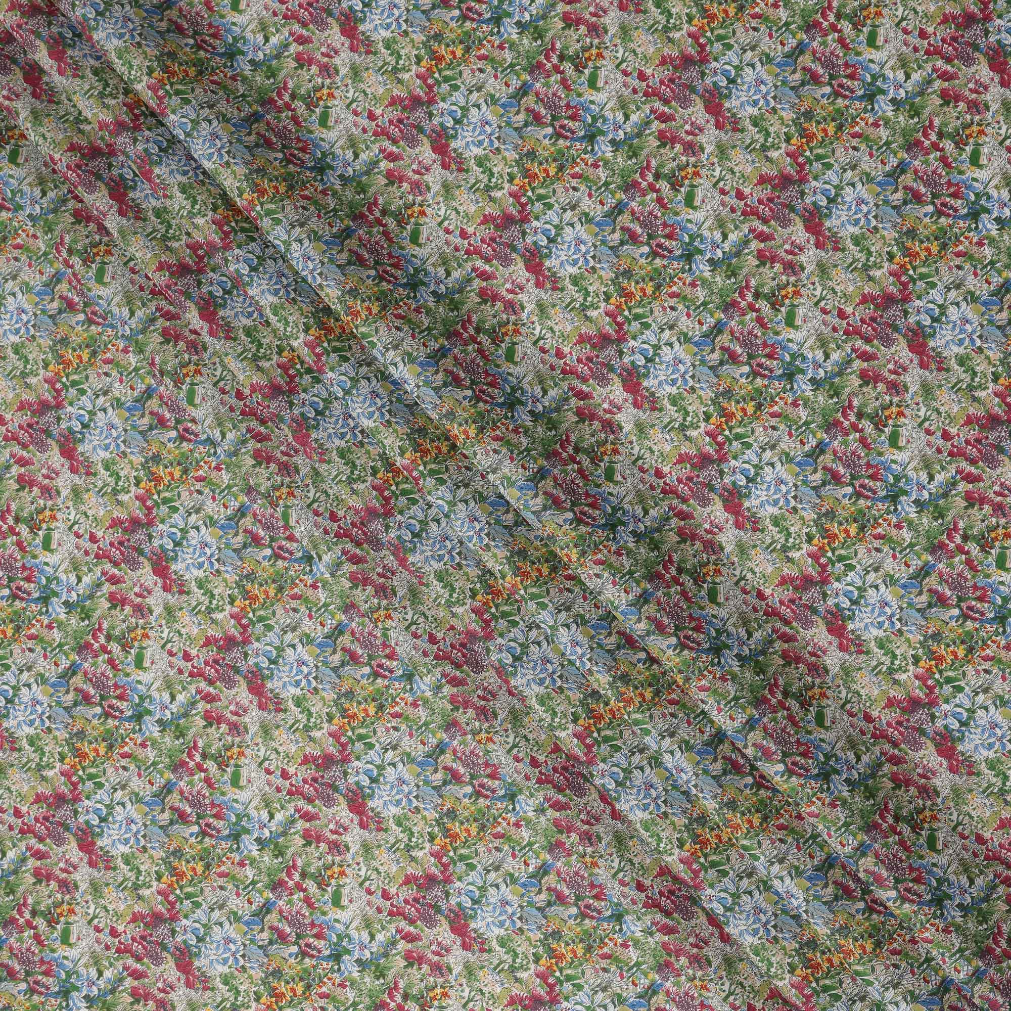 Light Green Floral Printed Cotton Lawn Fabric Soft Lightweight Breathable Dressmaking Sewing Material 4.0 Meters Length 110 Cms Width India-D27621